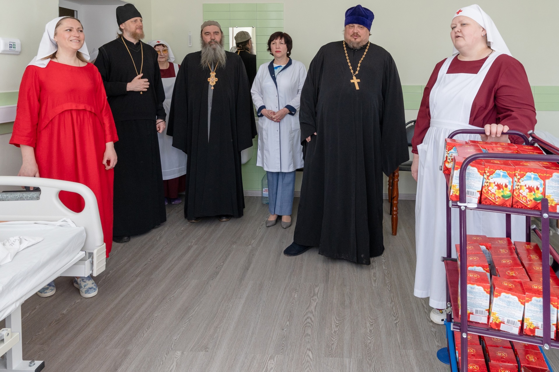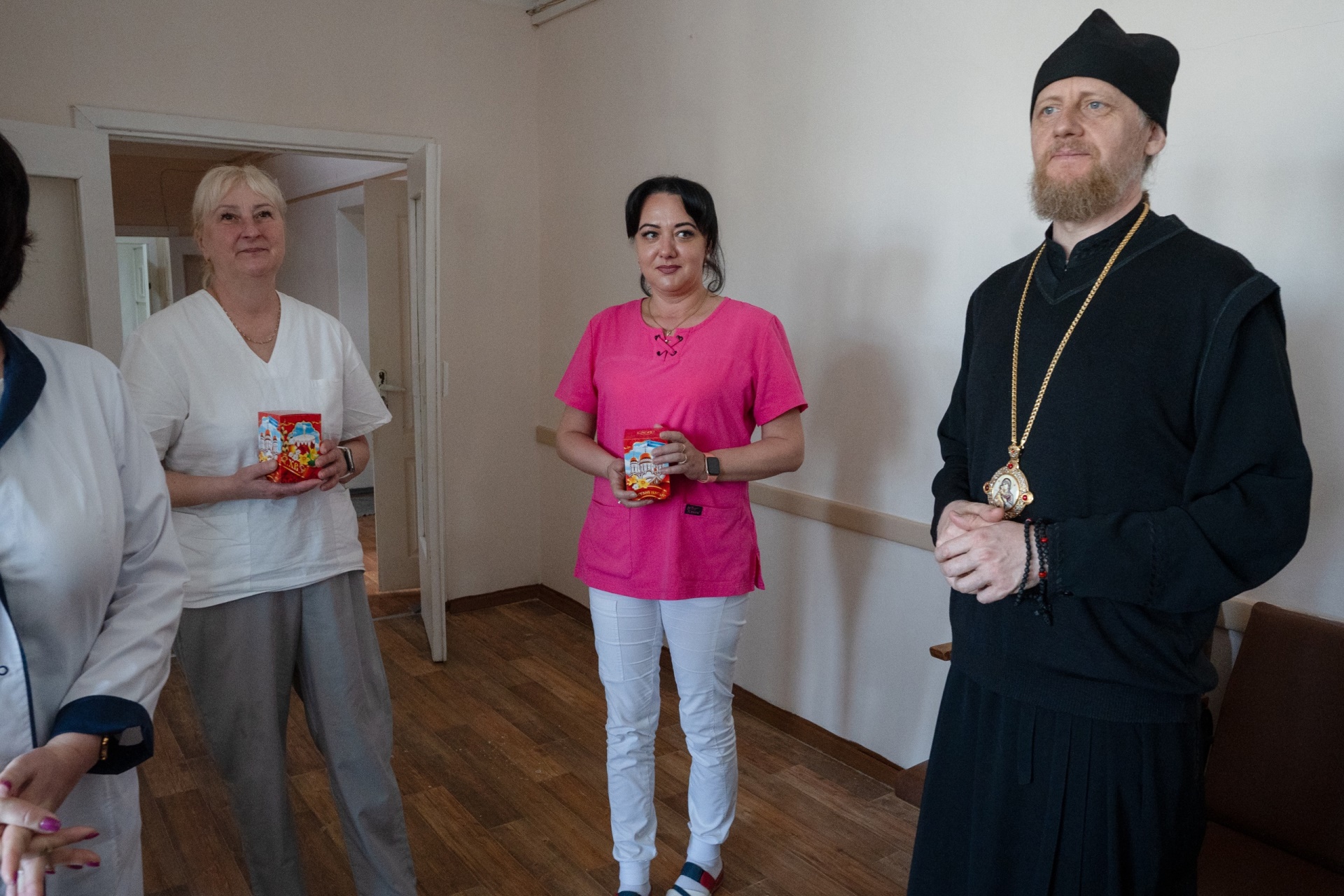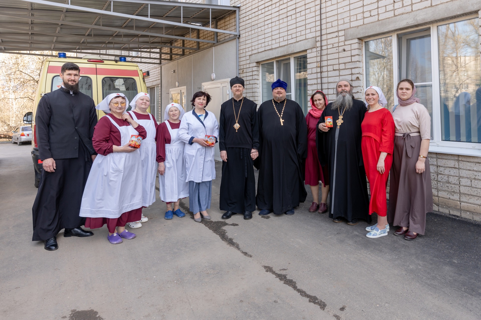 20 апреля 2025 года епископ Переславский и Угличский Феоктист, руководитель Отдела по церковной благотворительности и социальному служению Переславский епархии священник Игорь Залесский, духовник Переславского сестричества милосердия протоиерей Андрей Уфимцев и главная сестра сестричества милосердия Юлия Павловна Товстая с сёстрами поздравили пациентов и сотрудников Переславской центральной районной больницы с праздником Светлого Христова Воскресения.