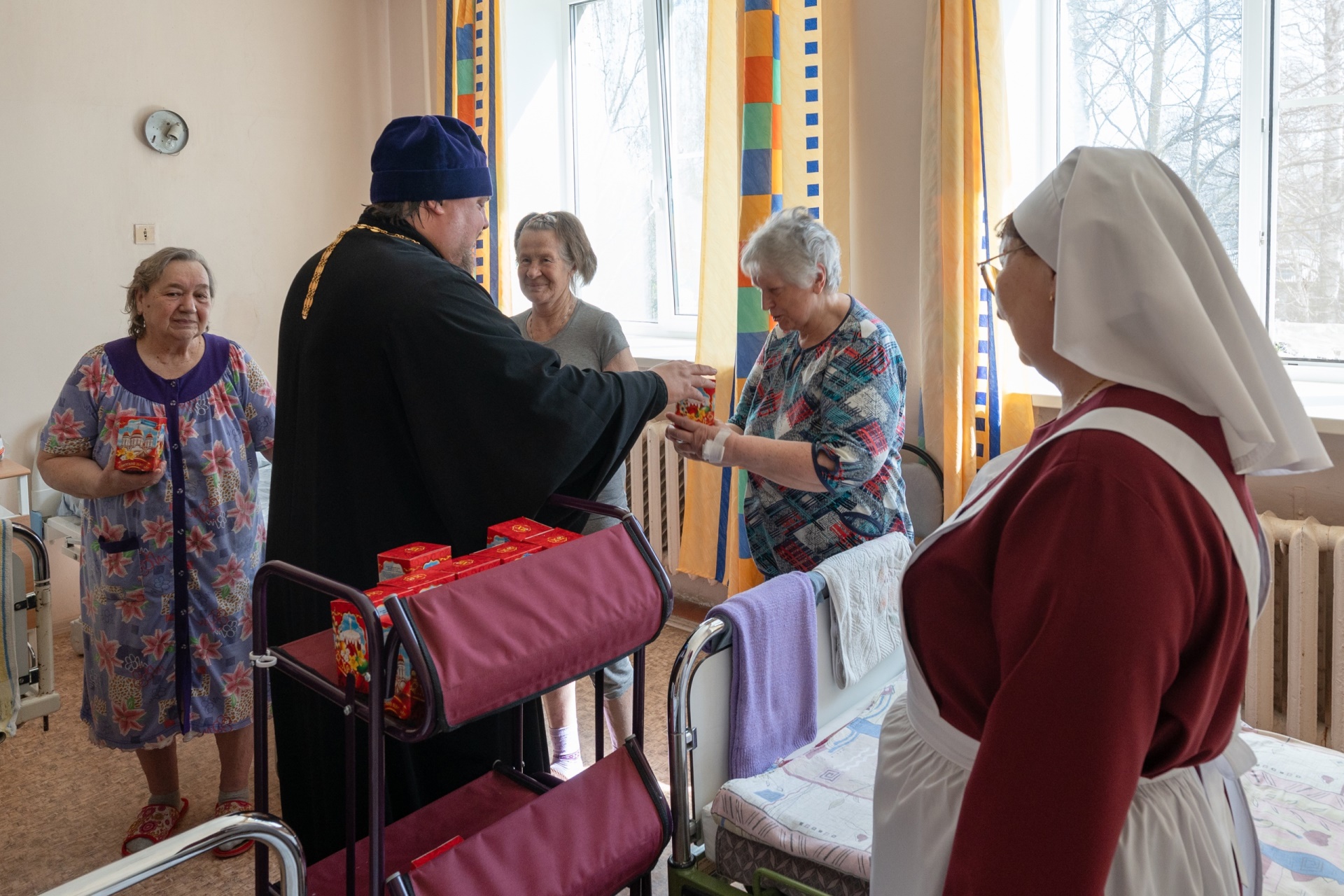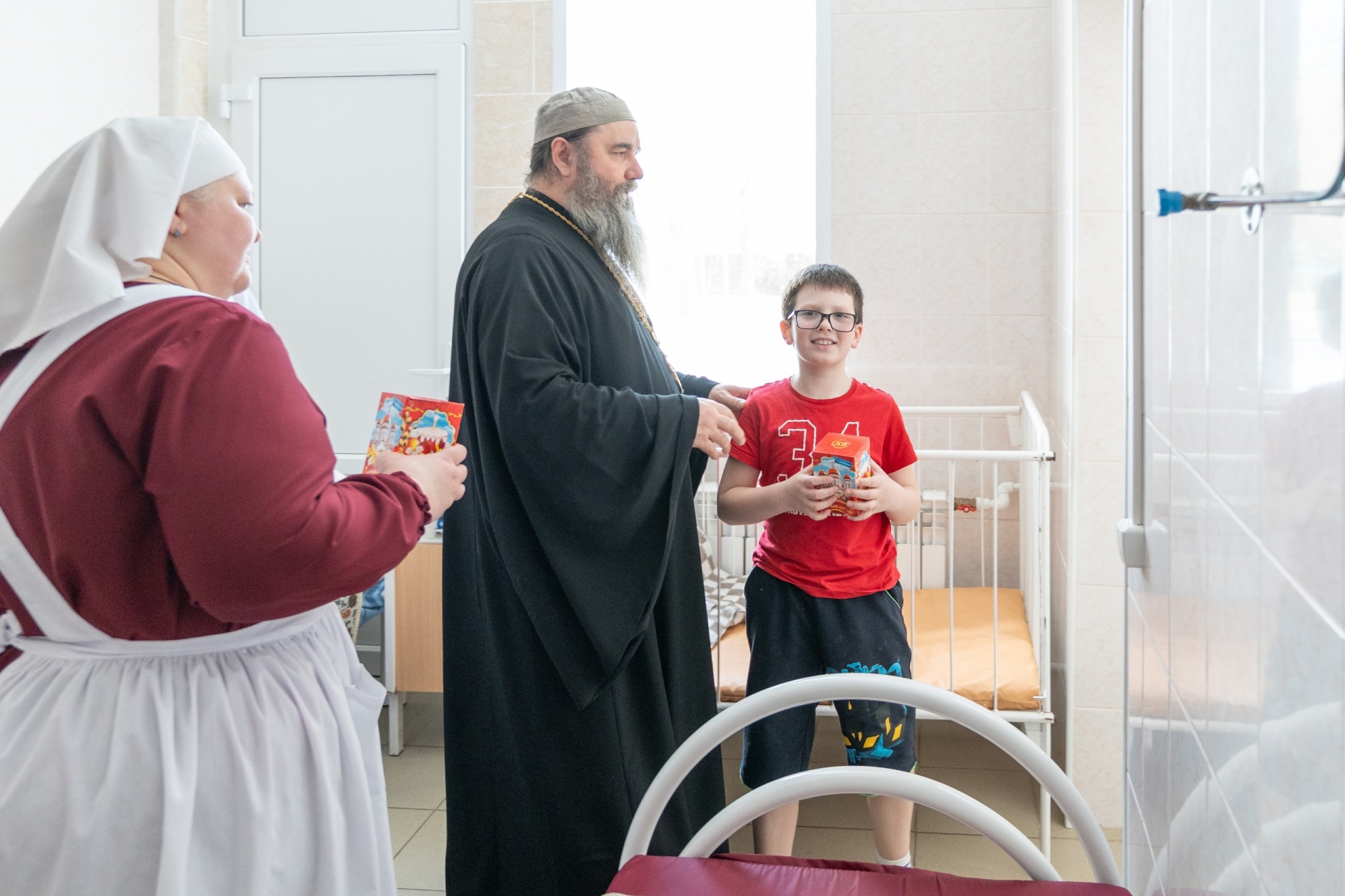 Всем пациентам, проходящим лечение в больнице, пожелали скорейшего выздоровления и вручили пасхальные подарки.