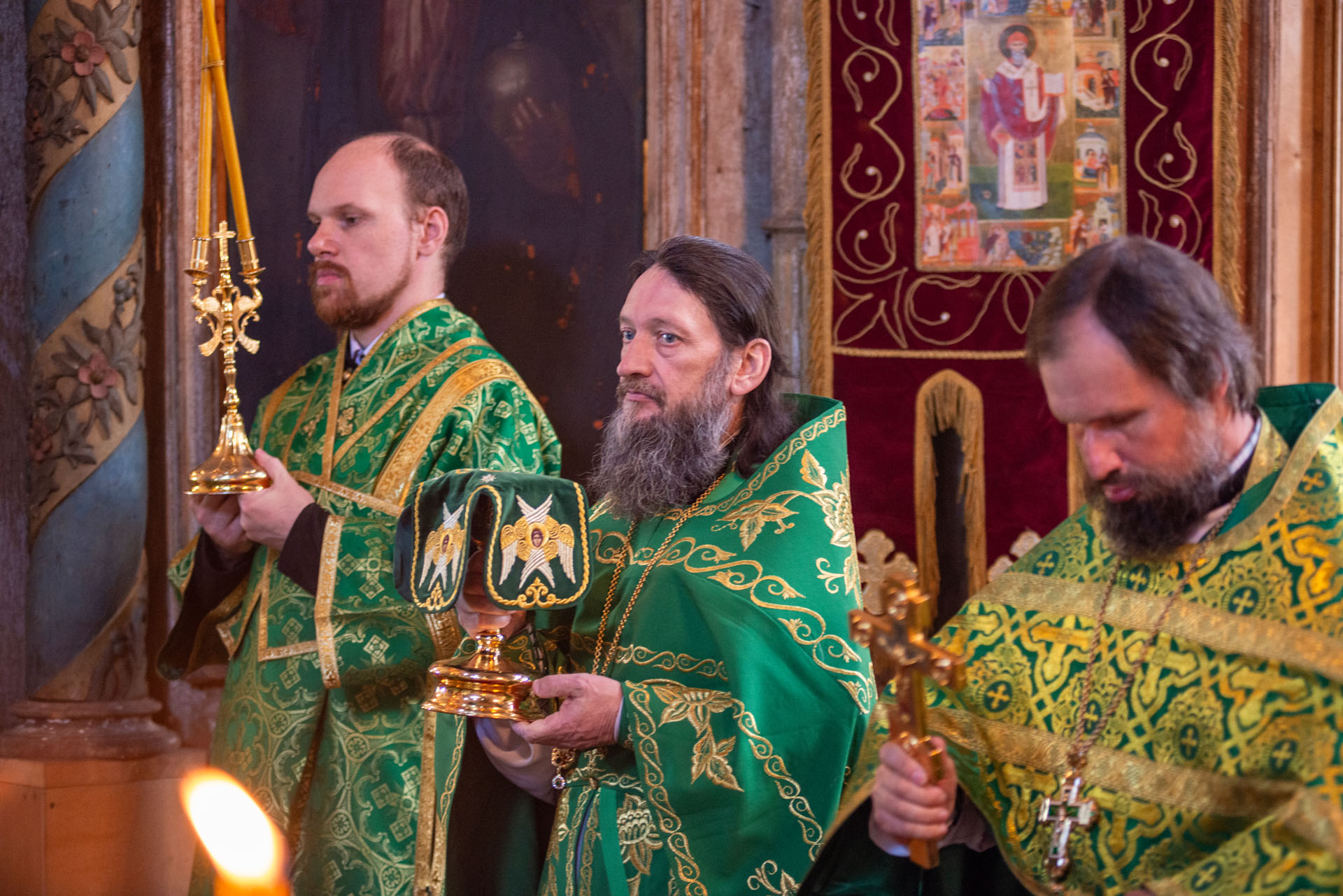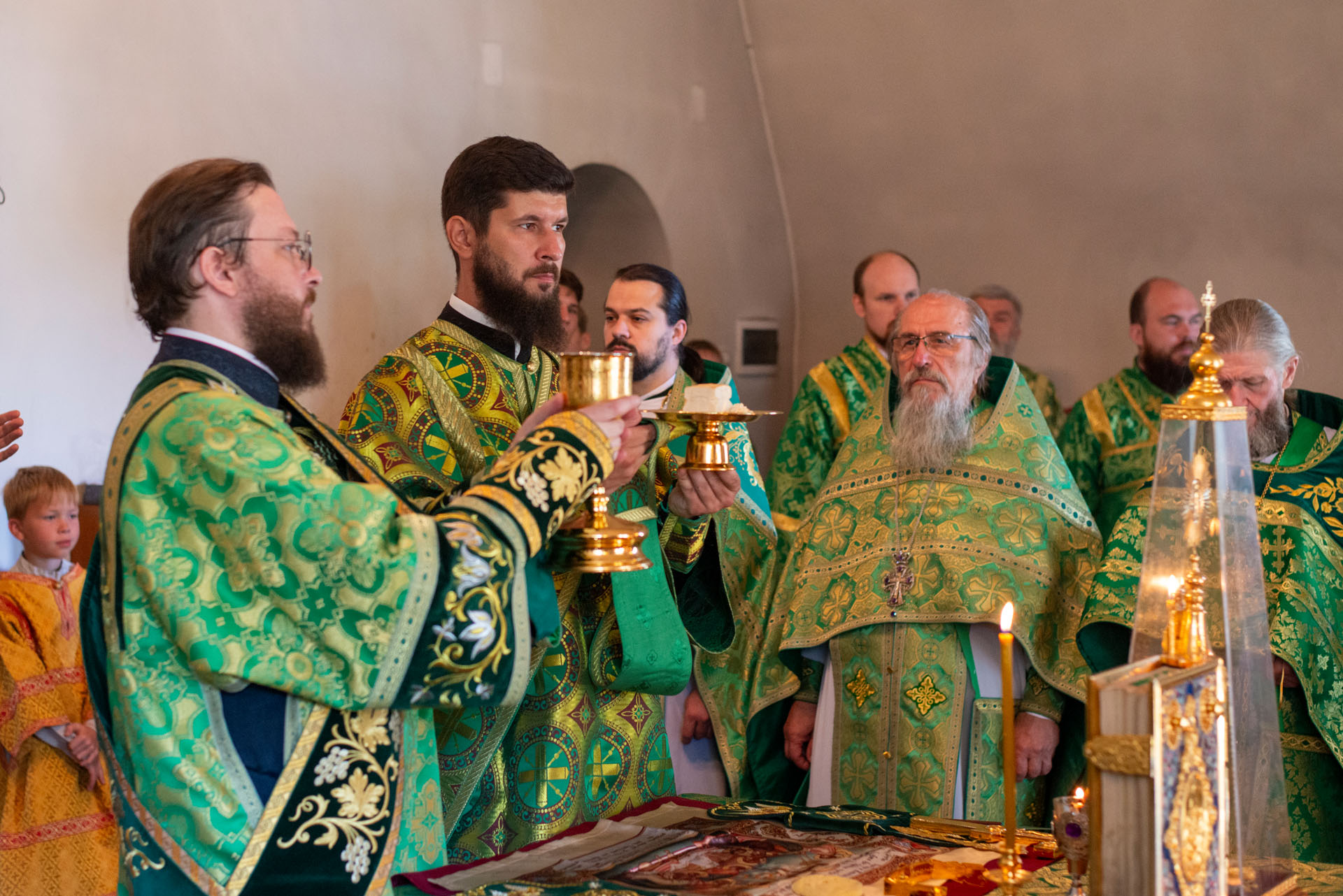 За богослужением правящему архиерею сослужили: секретарь Переславского епархиального управления протоиерей Александр Передернин, благочинный Плещеевского округа священник Илия Лунгу, настоятель храма протоиерей Димитрий Беляев, благочинный Мышкинского округа протоиерей Александр Иванов, протоиерей Борис Стародубов, протоиерей Владимир Усков, протоиерей Андрей Уфимцев, протоиерей Михаил Лазарев, иеромонах Глеб (Быкадоров), священник Владимир Мартышин, священник Тихон Беляев, священник Сергий Жданов, иеродиакон Герман (Евсеев), диакон Алексей Герасимов.