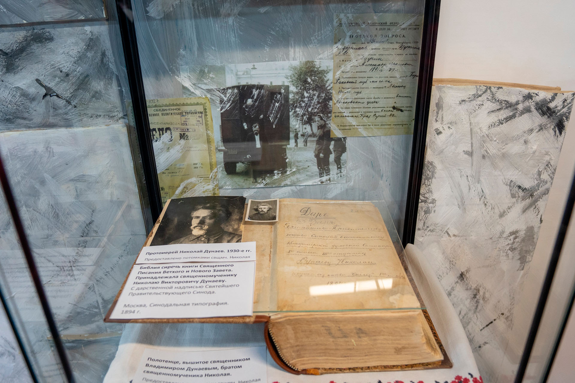 На выставке представлены материалы о священнике Константине Снятиновском, священнике Николае Дунаеве и священнике Евгении Елховском, расстрелянных в период гонений, а также о сельской учительнице Ираиде Тиховой, помогавшей сосланным архиереям.