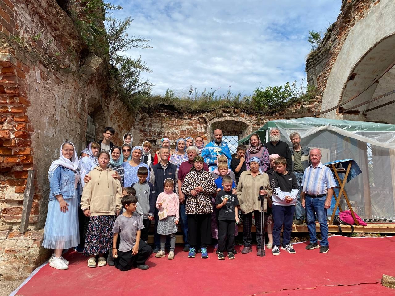 Несмотря на разрушенные стены, у входа в храм под открытым небом был сооружён деревянный настил, а для алтаря установлена походная палатка, в которой расположились престол и жертвенник.