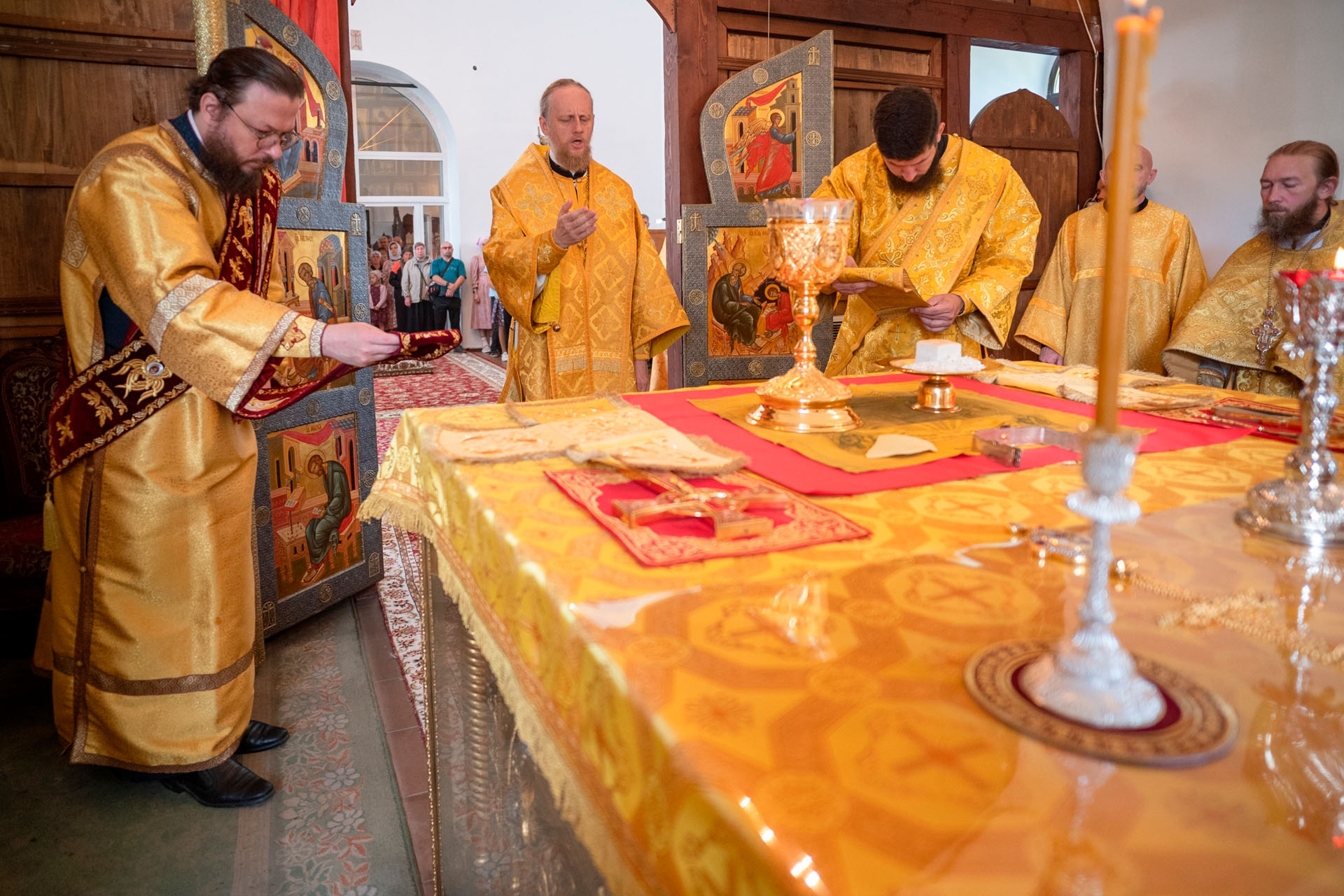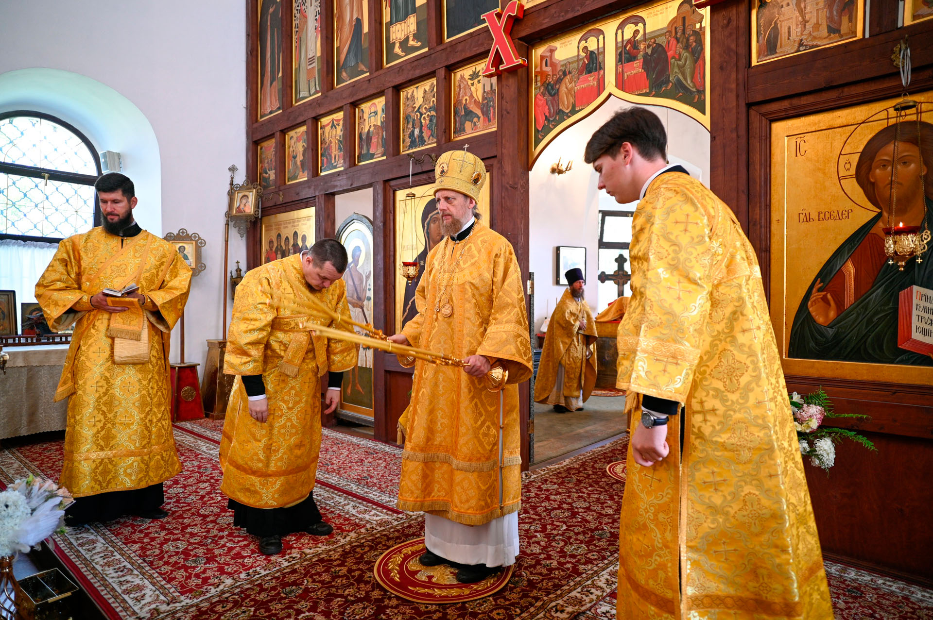 Его Преосвященству сослужили: благочинный Плещеевского округа священник Илия Лунгу, настоятель храма протоиерей Михаил Лазарев, иеродиакон Герман (Евсеев), диакон Алексей Герасимов.