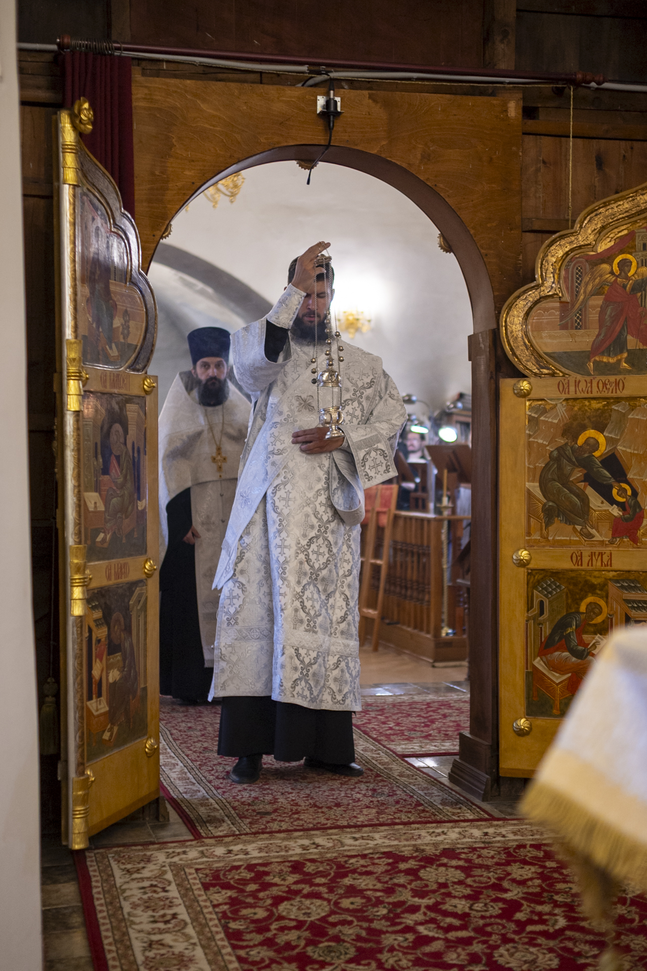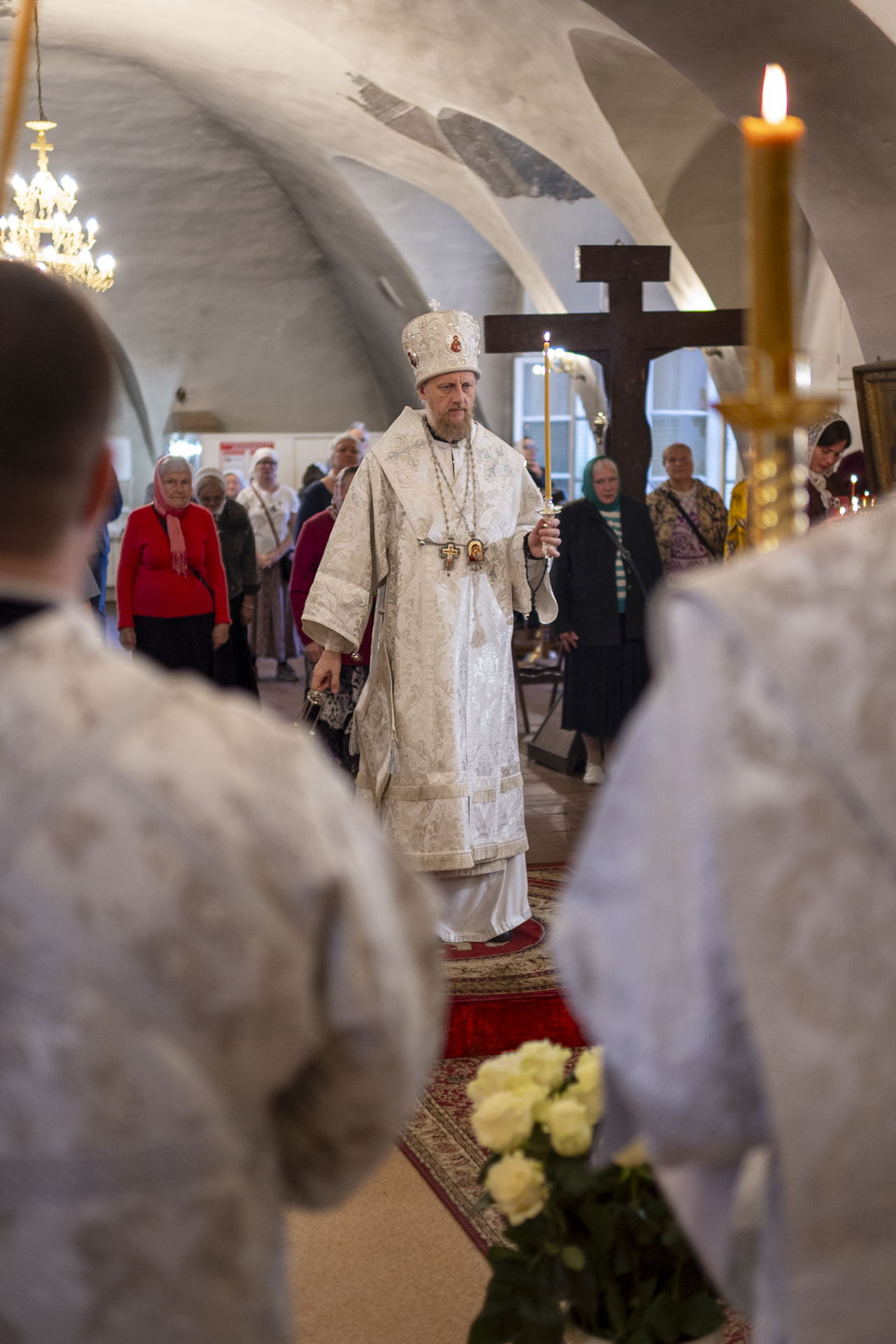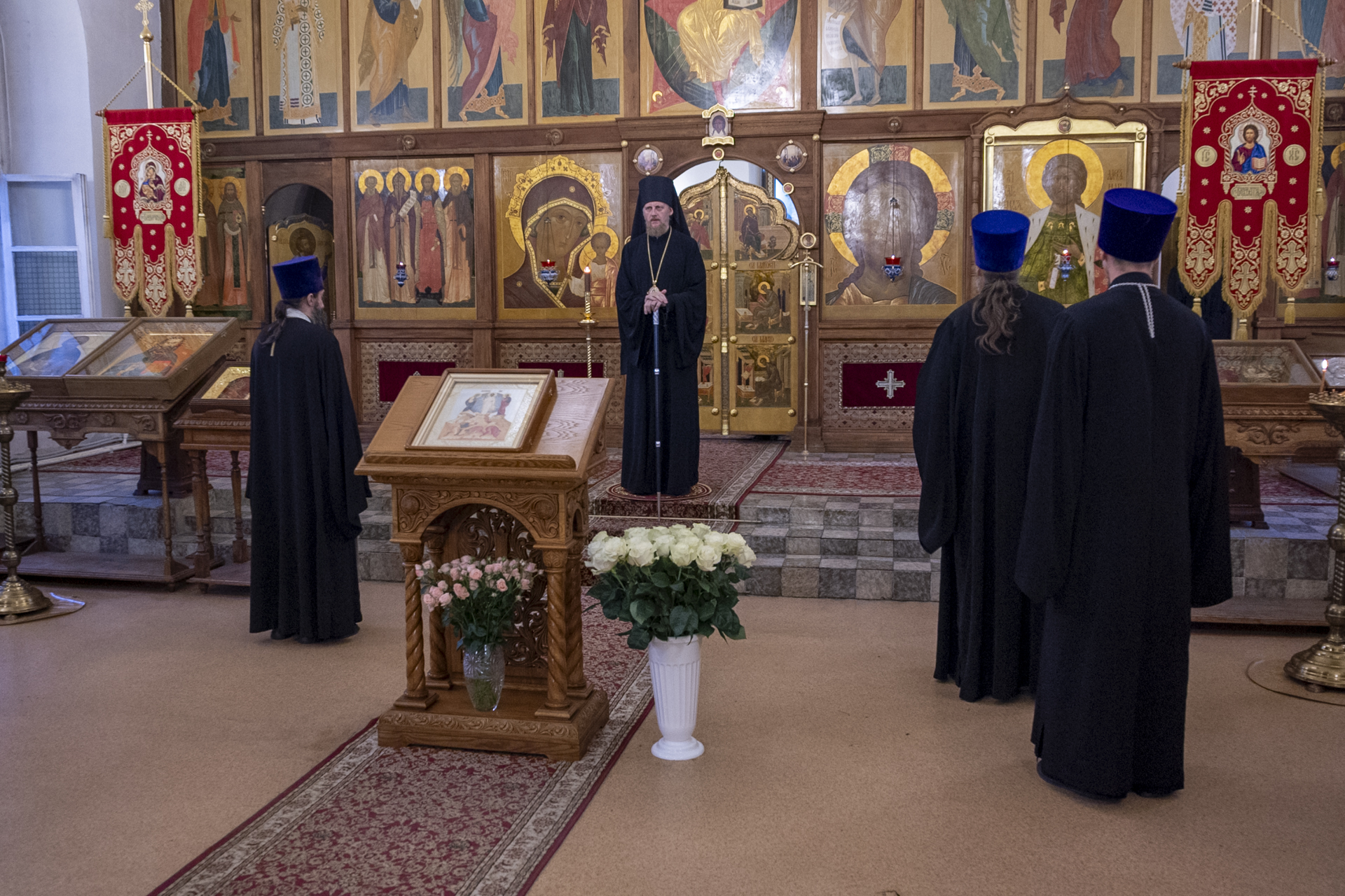 Его Преосвященству сослужили: почётный настоятель собора протоиерей Андрей Кульков, настоятель собора протоиерей Алексей Морозов, священник Алексей Талалаев, диакон Алексей Герасимов, диакон Сергий Танчинец.