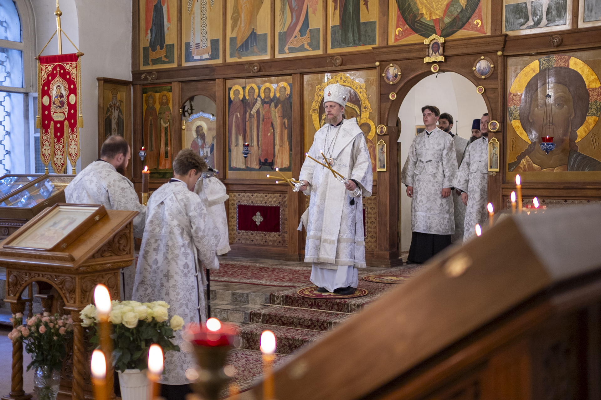 18 августа 2025 года, в канун праздника Преображения Господа Бога и Спаса нашего Иисуса Христа, епископ Переславский и Угличский Феоктист совершил всенощное бдение во Владимирском кафедральном соборе.