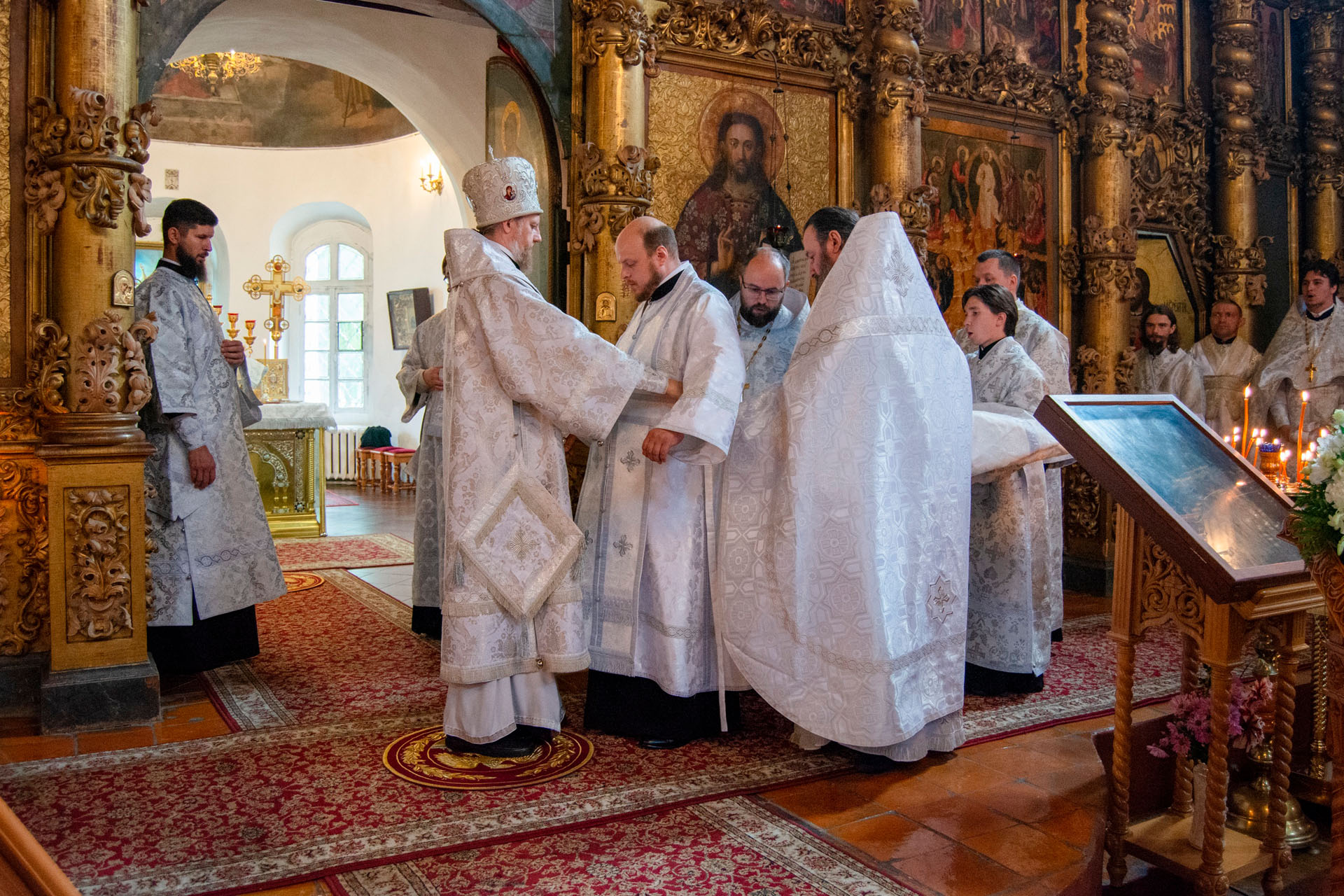 За богослужением была совершена священническая хиротония диакона Александра Чернышова и диаконская хиротония инока Леонида (Бояджи).