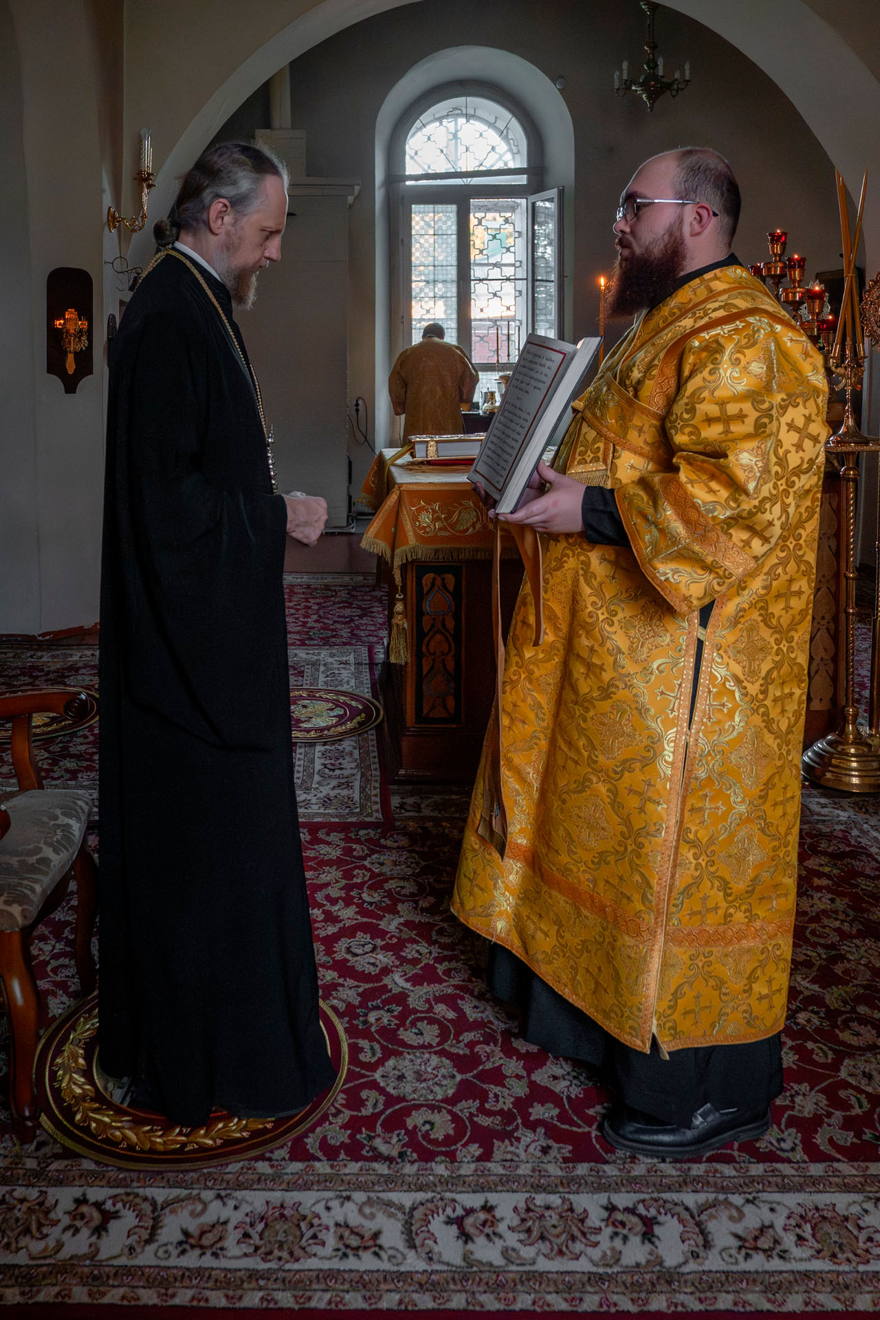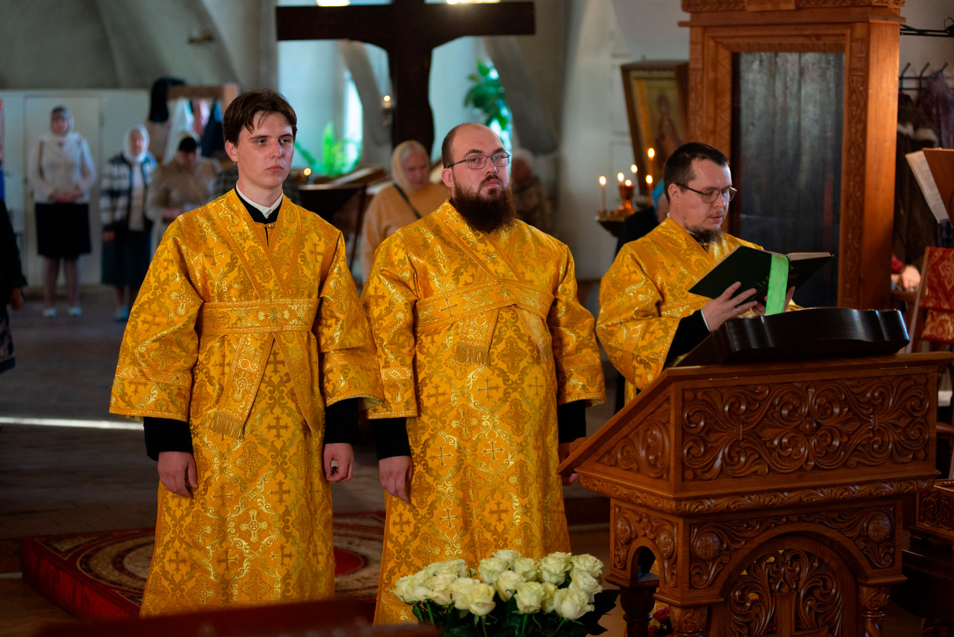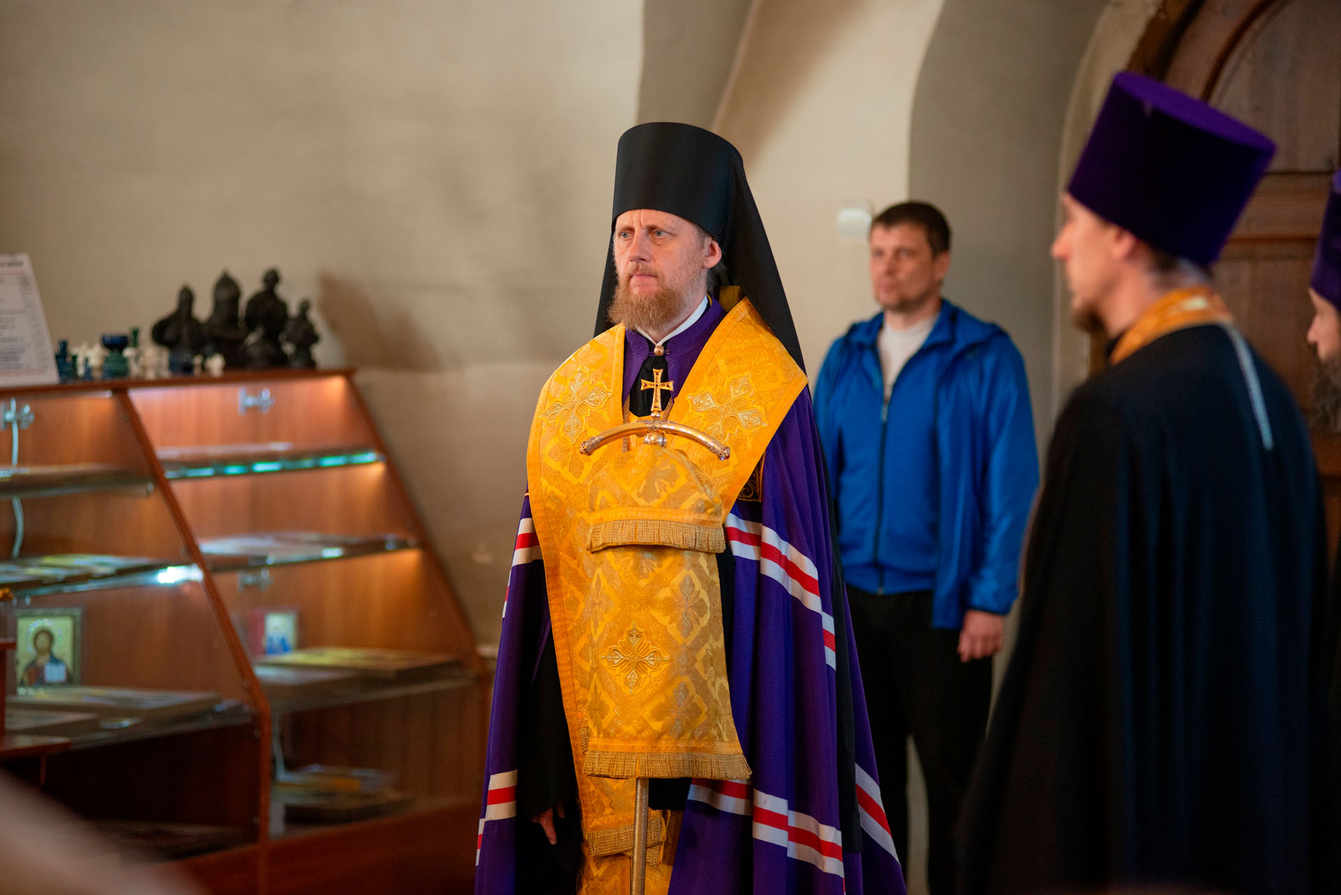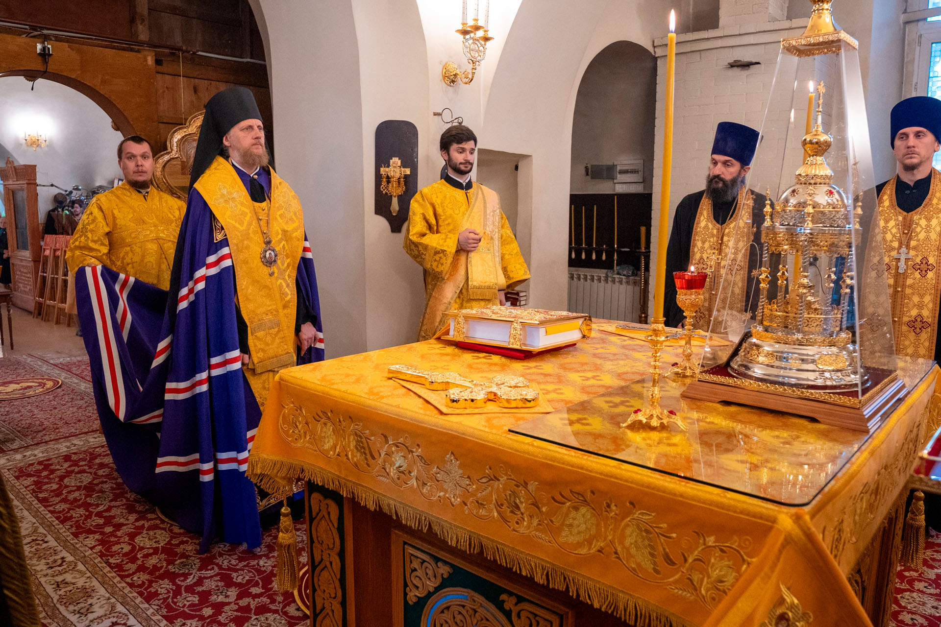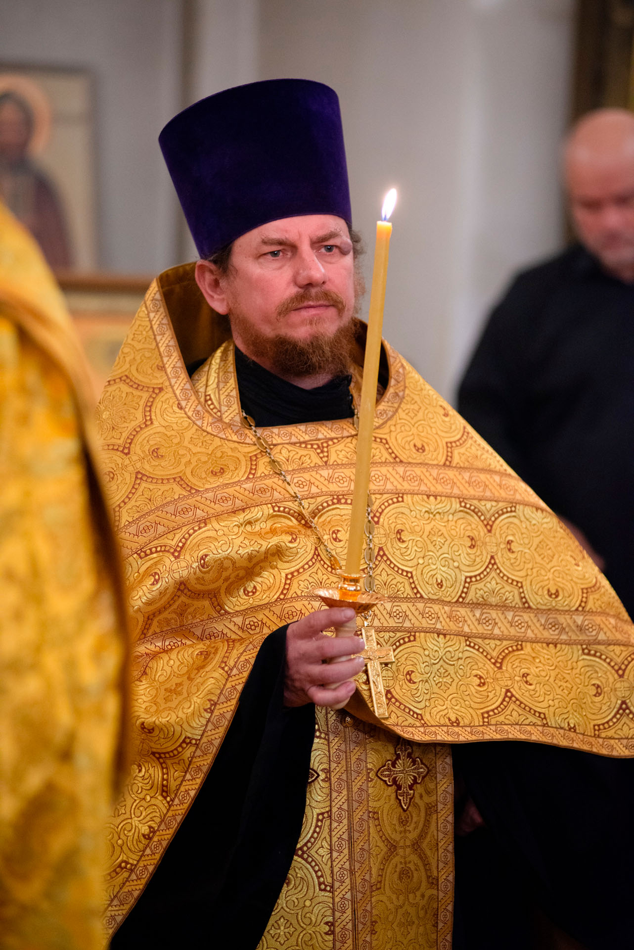 Его Преосвященству сослужили: почётный настоятель собора протоиерей Андрей Кульков, настоятель собора протоиерей Алексей Морозов, священник Василий Молоток, священник Алексей Талалаев, диакон Алексей Герасимов, диакон Сергий Танчинец.