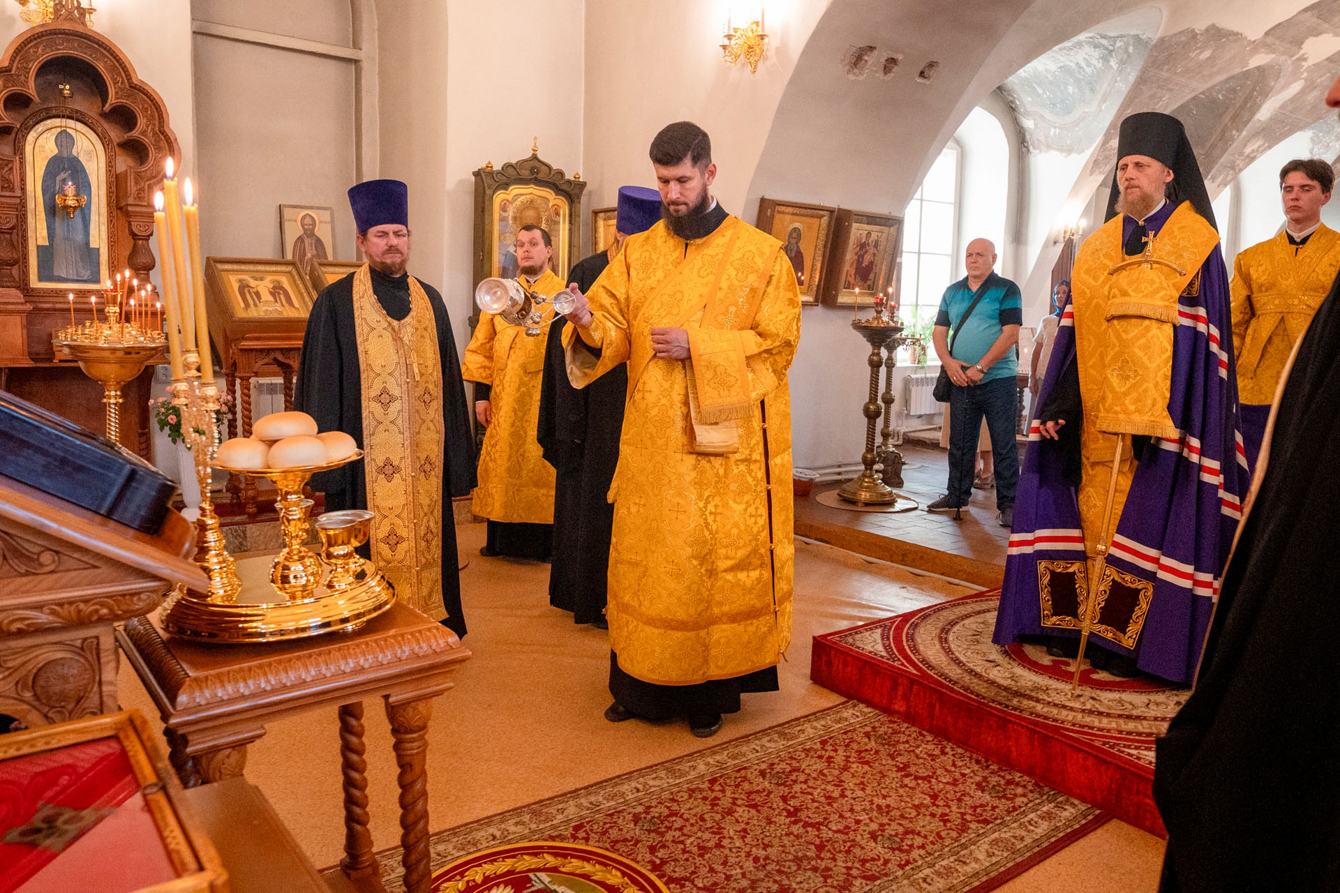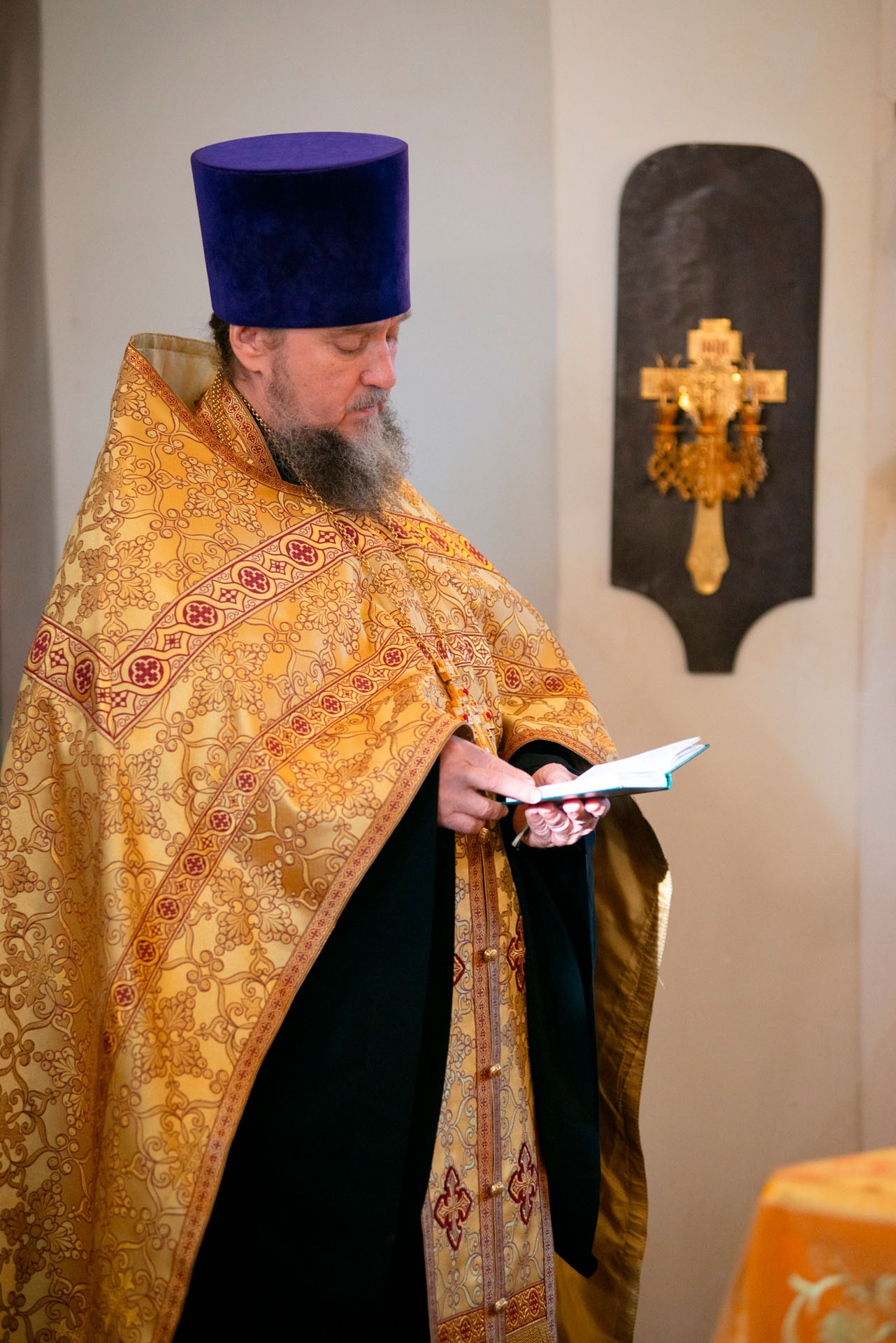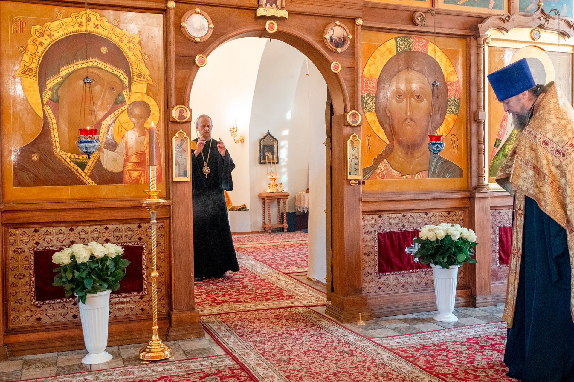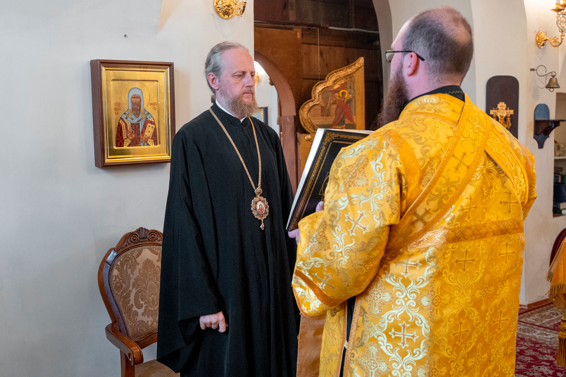 Его Преосвященству сослужили: почётный настоятель собора протоиерей Андрей Кульков, настоятель собора протоиерей Алексей Морозов, священник Василий Молоток, священник Алексей Талалаев, диакон Алексей Герасимов, диакон Сергий Танчинец.