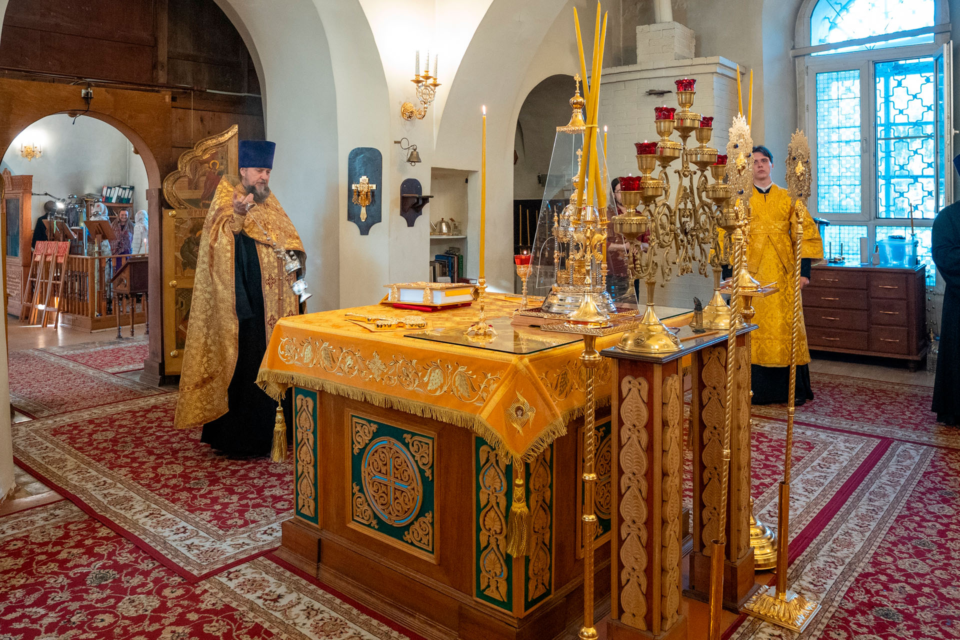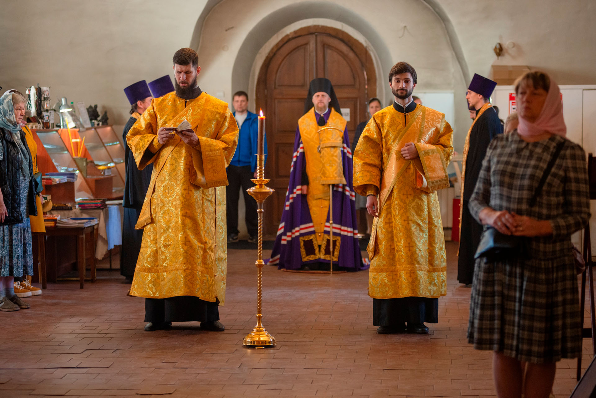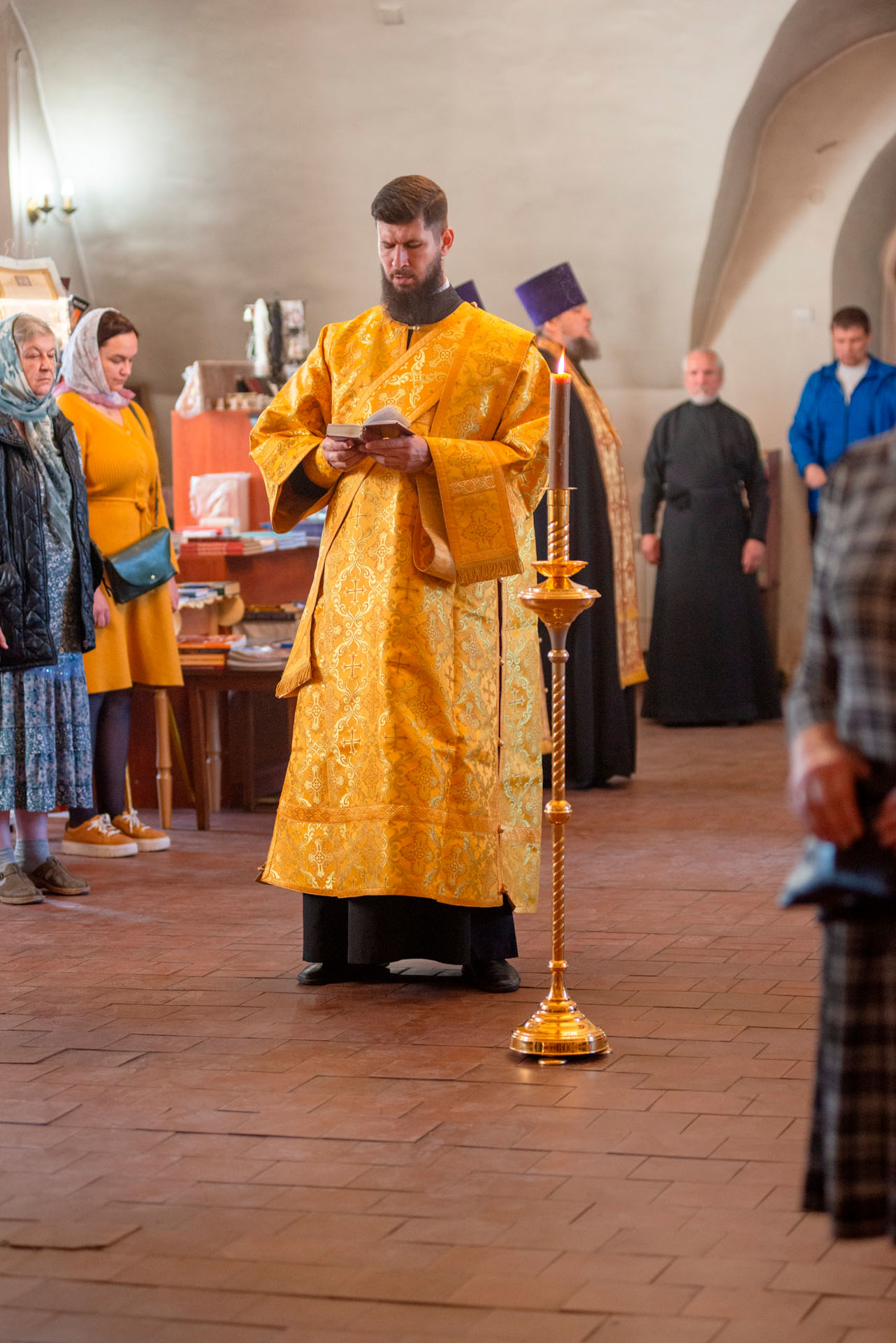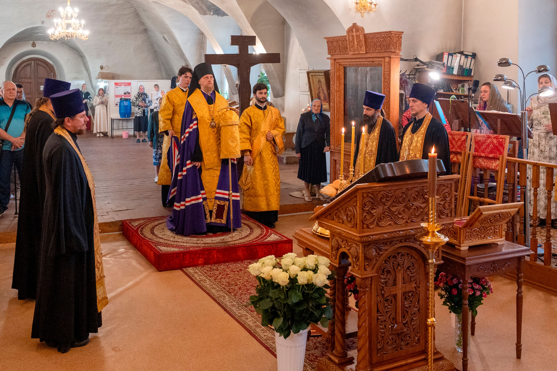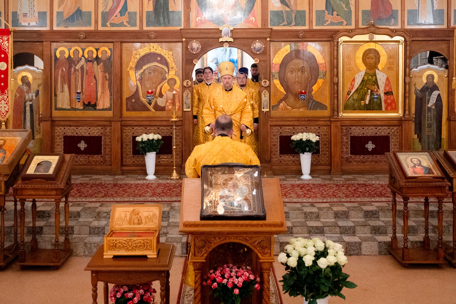 Его Преосвященству сослужили: почётный настоятель собора протоиерей Андрей Кульков, настоятель собора протоиерей Алексей Морозов, священник Василий Молоток, священник Алексей Талалаев, диакон Алексей Герасимов, диакон Сергий Танчинец.