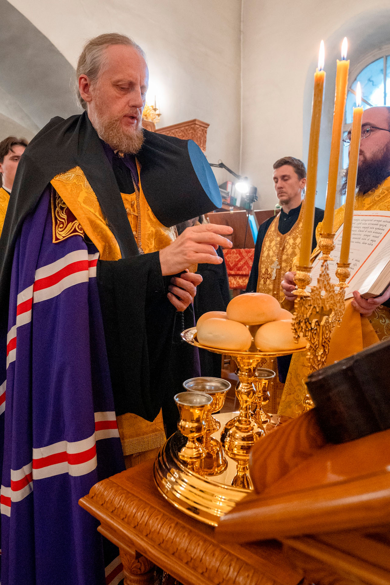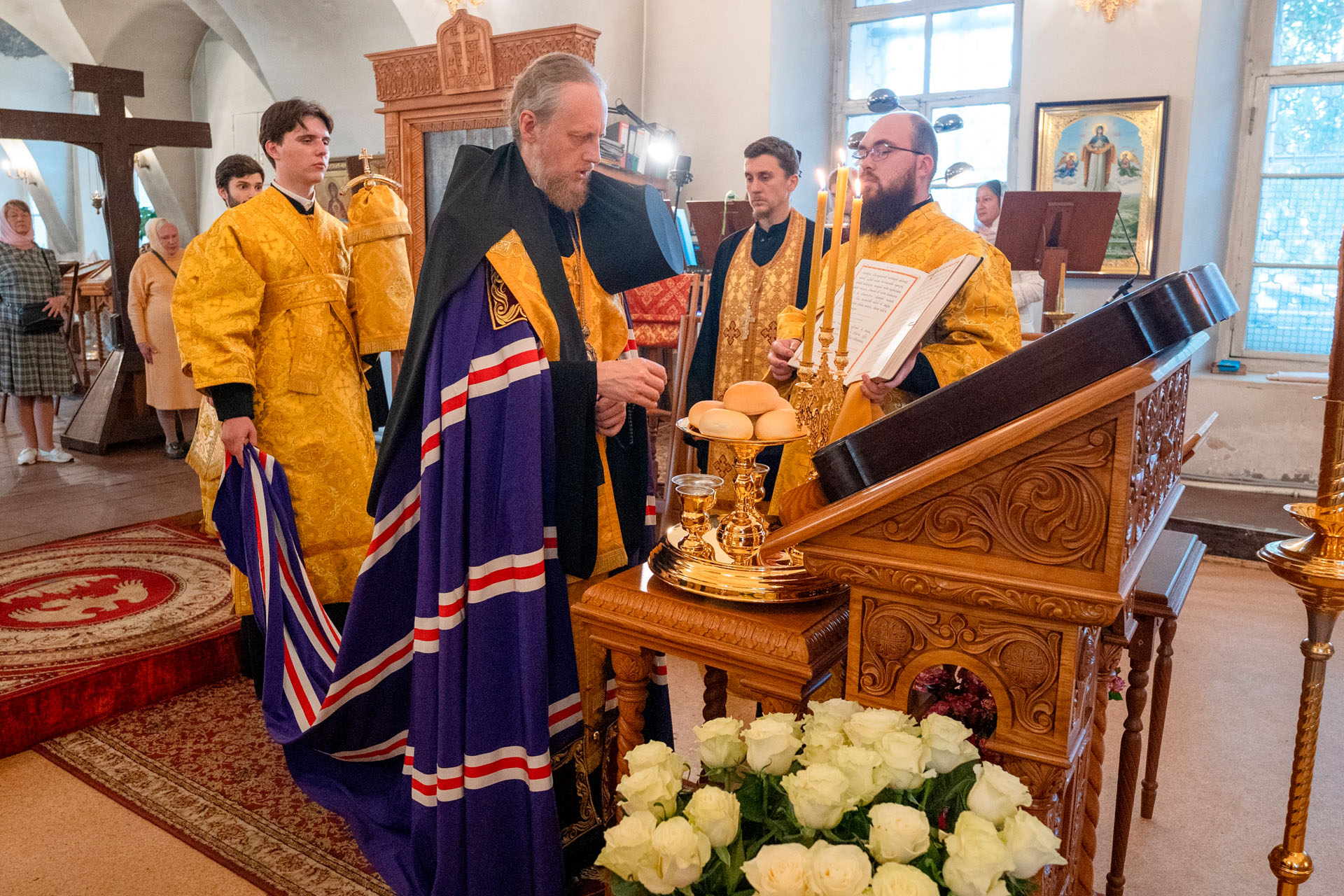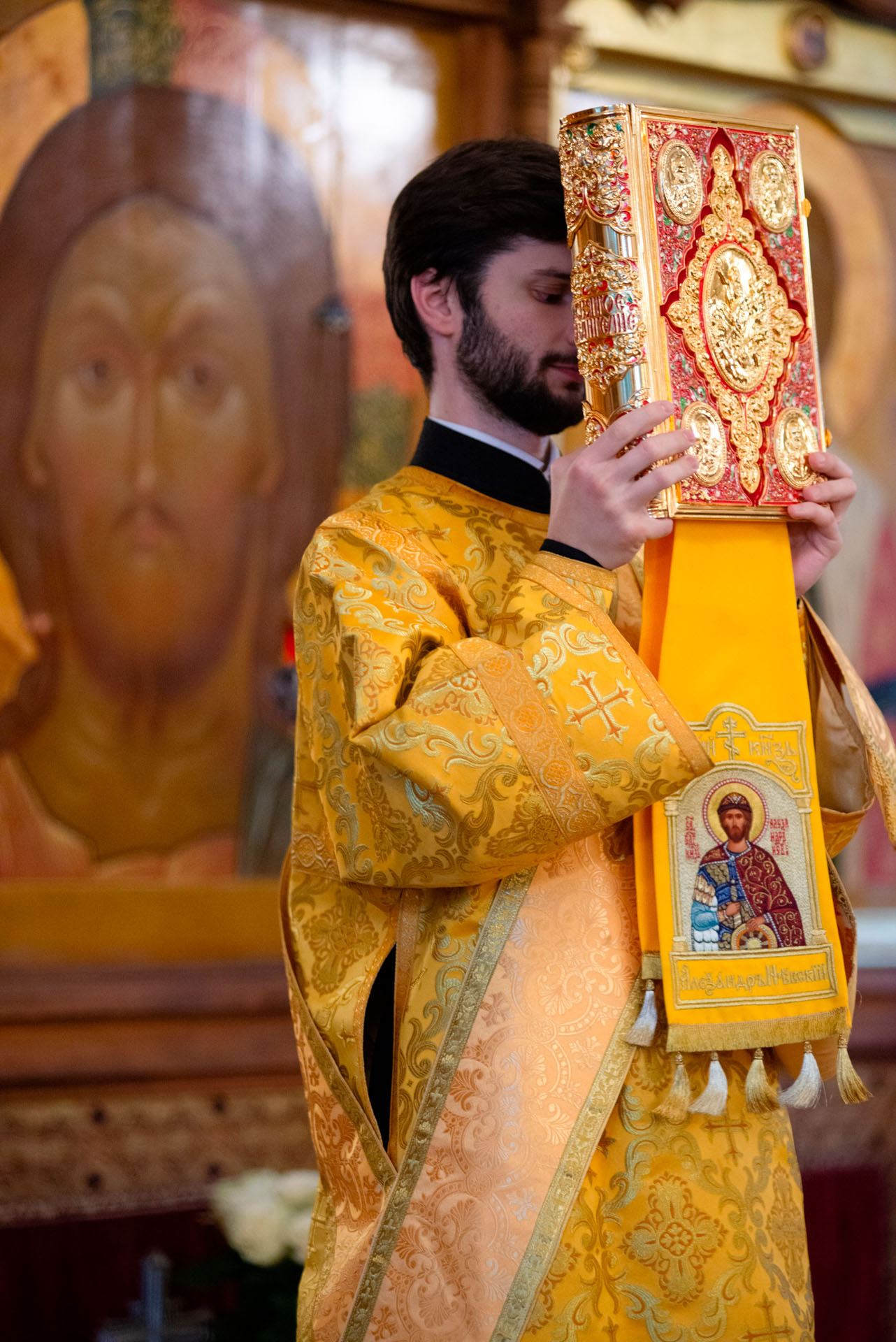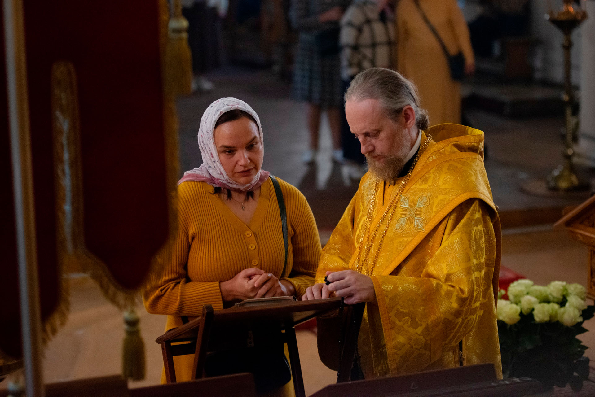 Его Преосвященству сослужили: почётный настоятель собора протоиерей Андрей Кульков, настоятель собора протоиерей Алексей Морозов, священник Василий Молоток, священник Алексей Талалаев, диакон Алексей Герасимов, диакон Сергий Танчинец.