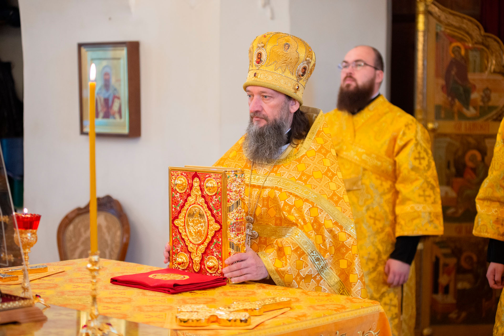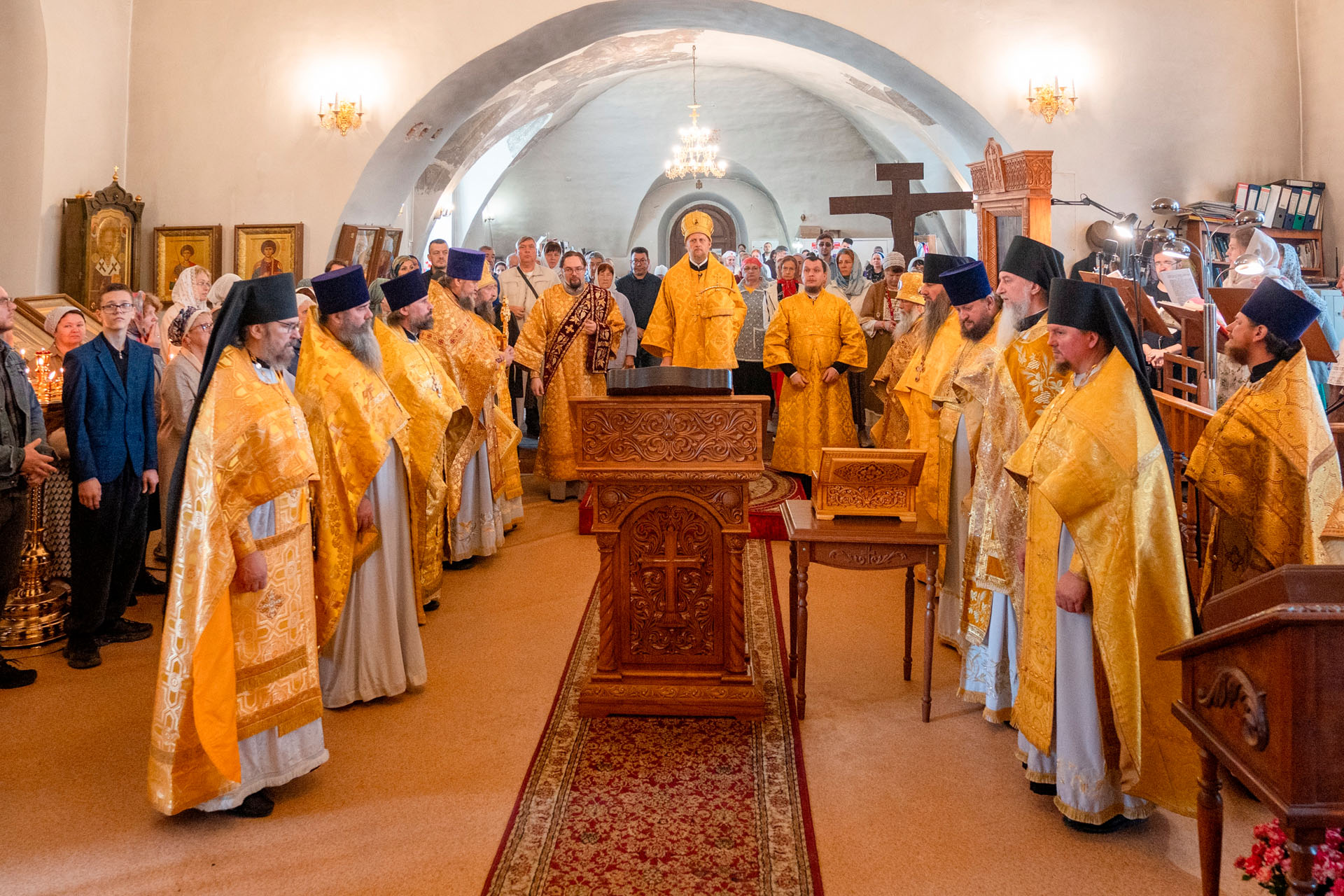 Его Преосвященству сослужили: секретарь Переславского епархиального управления протоиерей Александр Передернин, почётный настоятель собора протоиерей Андрей Кульков, настоятель собора протоиерей Алексей Морозов, духовенство Переславской епархии.