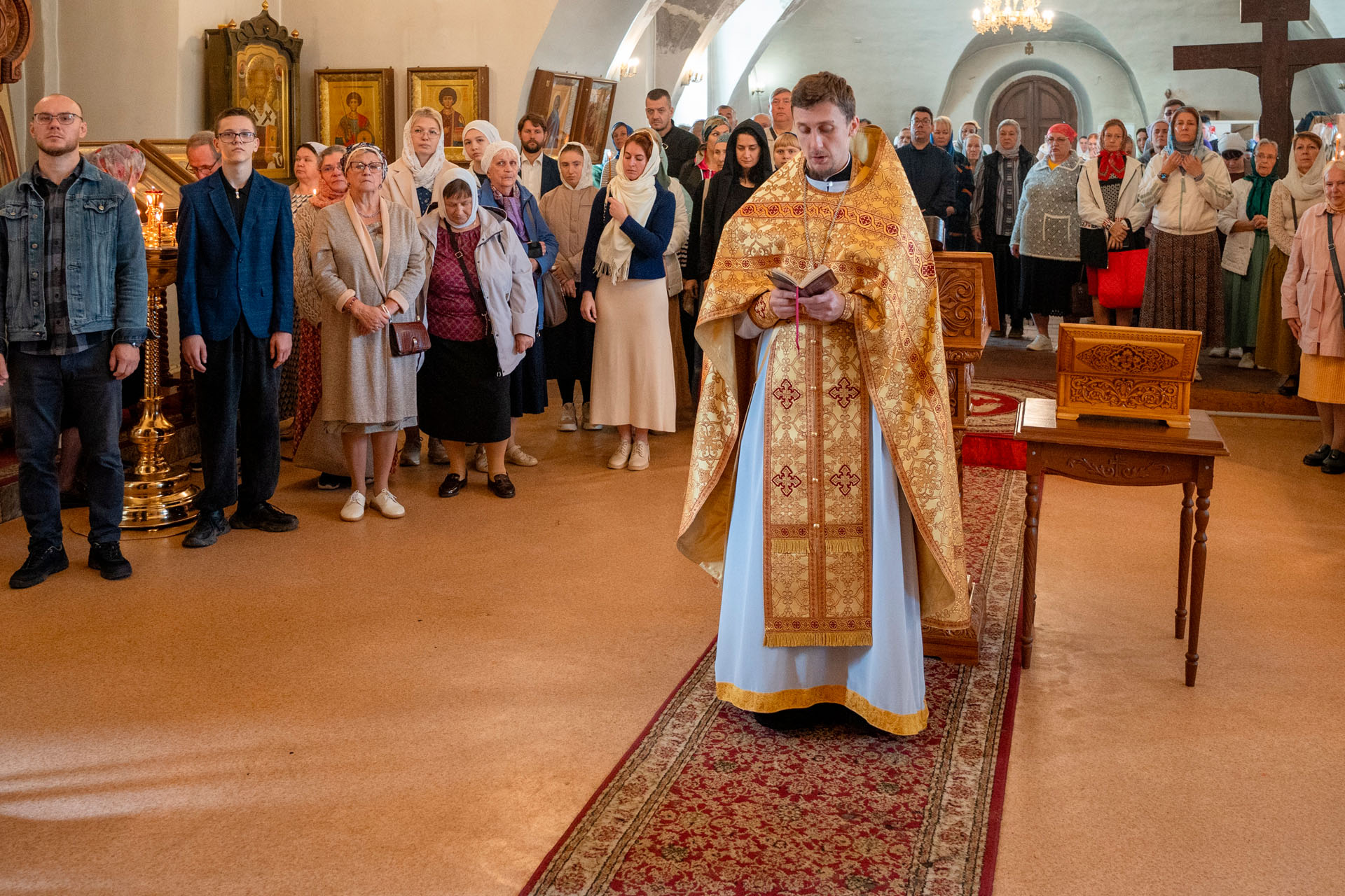 12 сентября 2025 года, в день празднования перенесения мощей святого благоверного князя Александра Невского, епископ Переславский и Угличский Феоктист совершил Литургию в Александро-Невском храме Владимирского кафедрального собора.