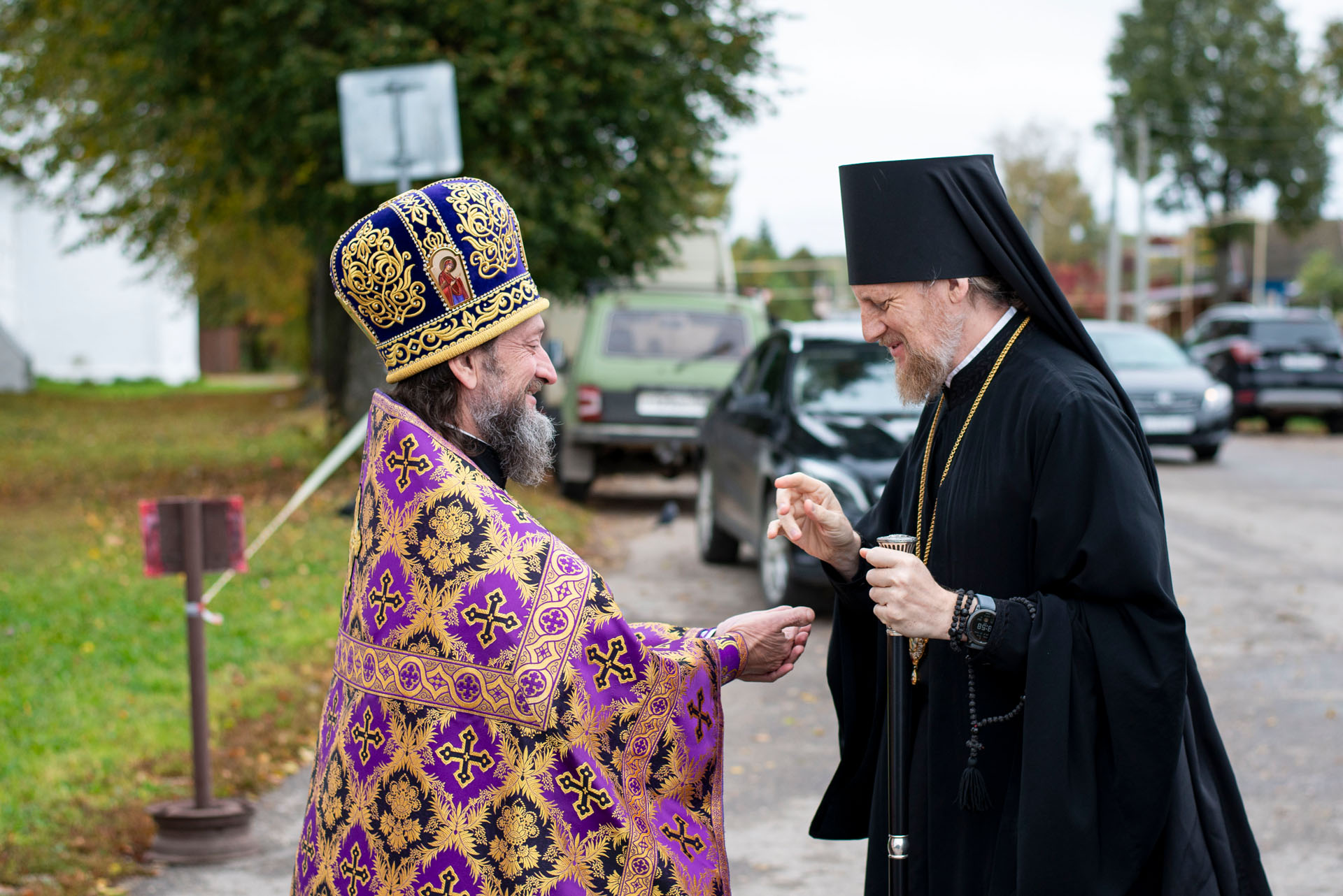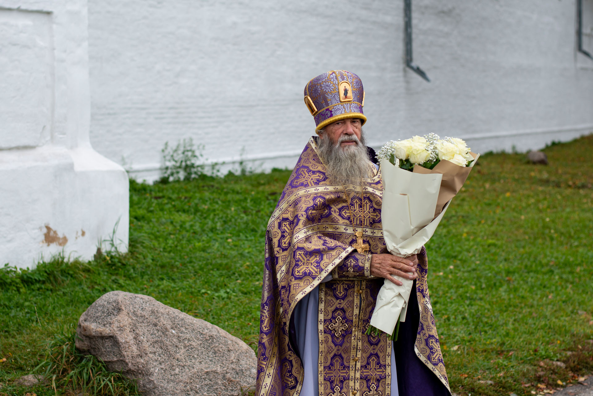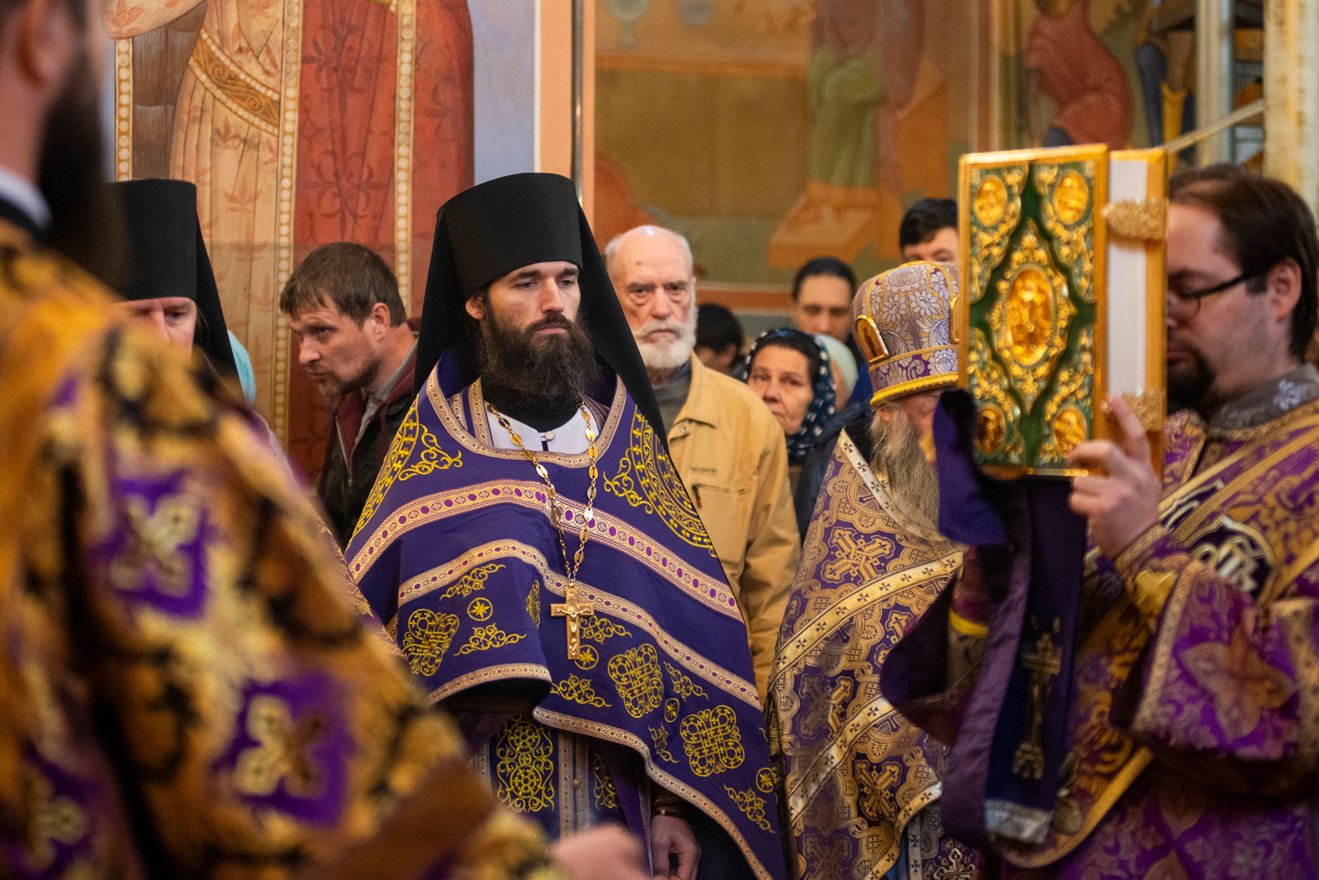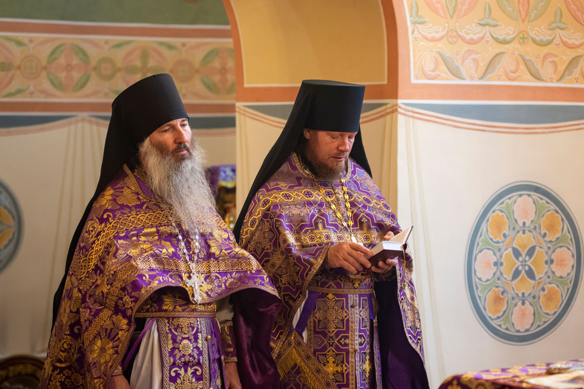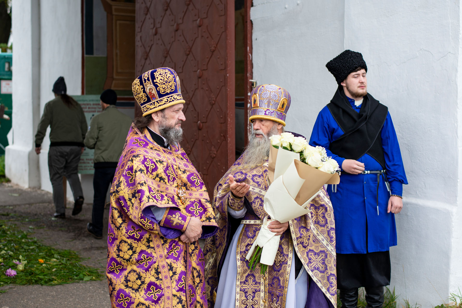 Его Преосвященству сослужили: настоятель монастыря архимандрит Димитрий (Храмцов), секретарь Переславского епархиального управления протоиерей Александр Передернин, благочинный монастырей епархии игумен Пантелеимон (Королёв), настоятель монастыря Животворящего Креста Господня с. Погост-Крест Шуйской епархии игумен Гавриил (Лысов), иеромонах Глеб (Быкадоров), иеромонах Евфимий (Куликов), иеромонах Алексей (Сорокин), диакон Владимир Принёв, диакон Алексей Герасимов, иеродиакон Никита (Зарубин).
