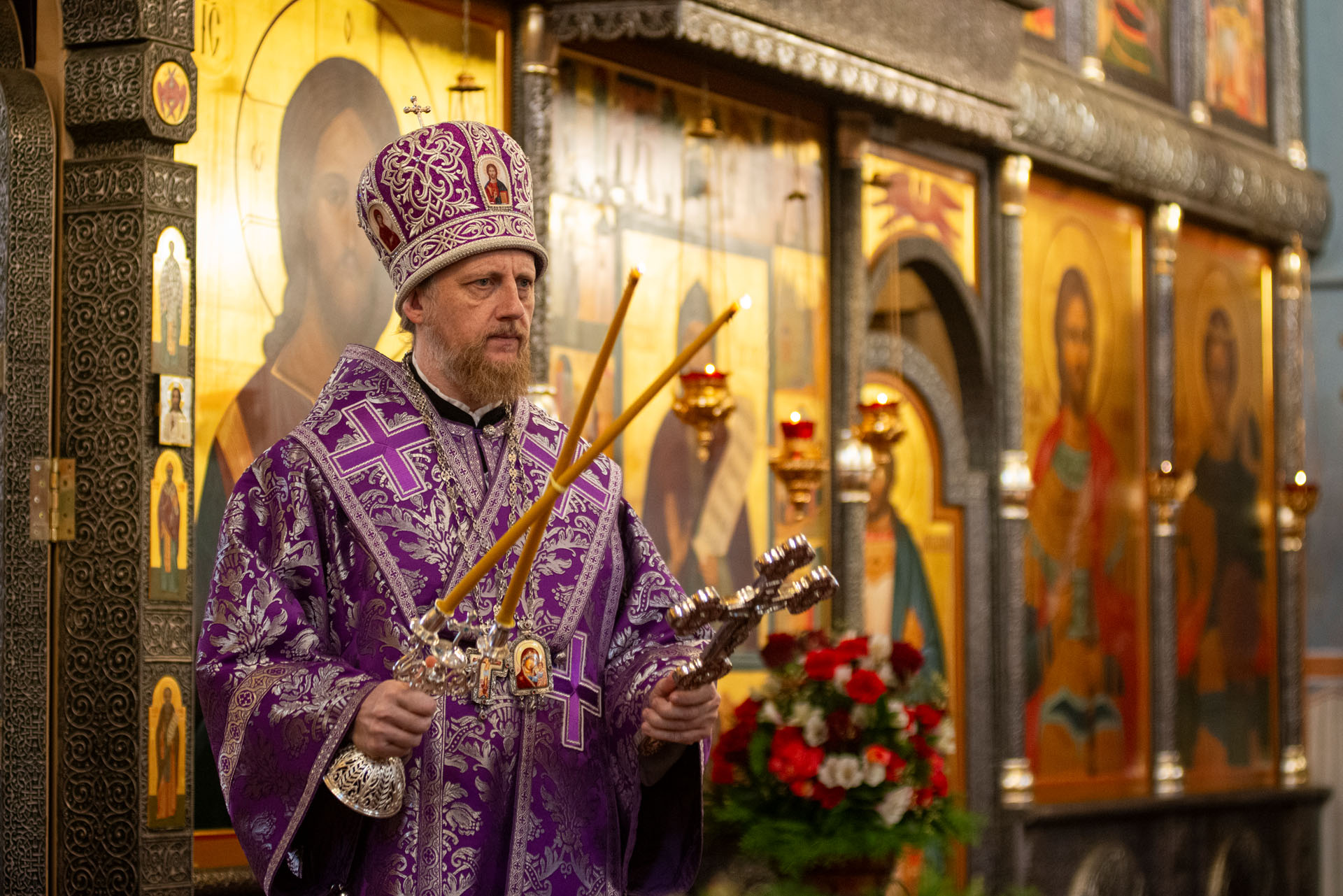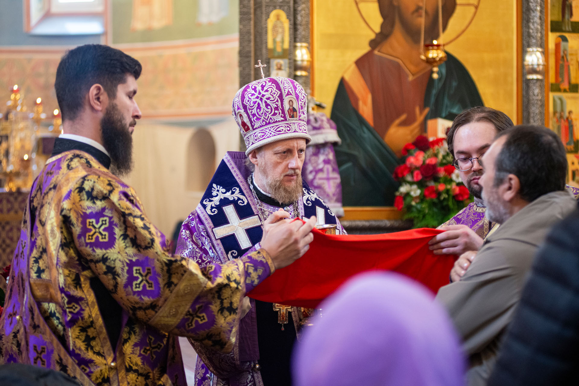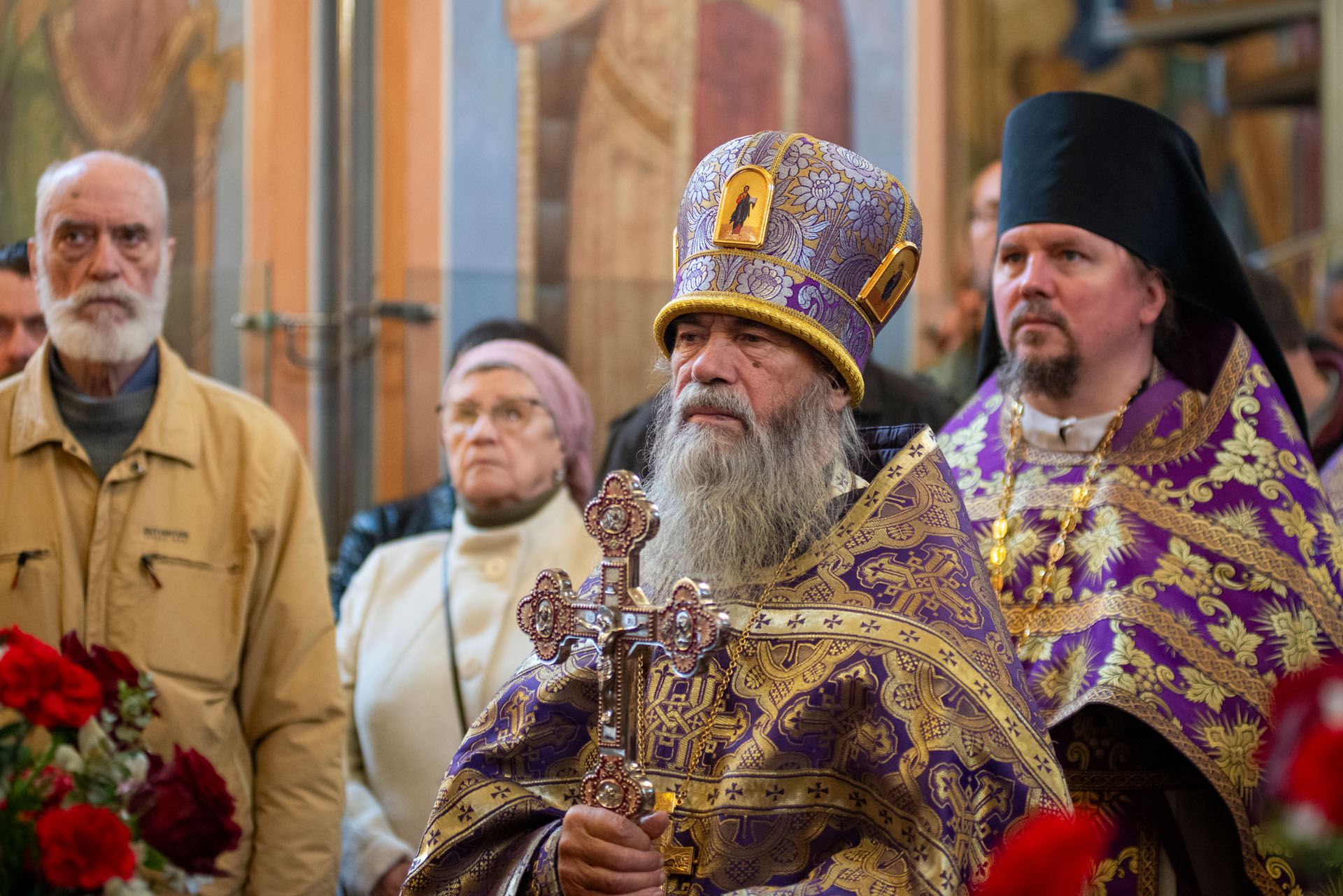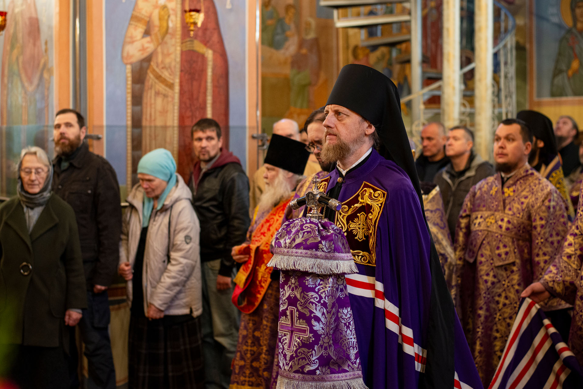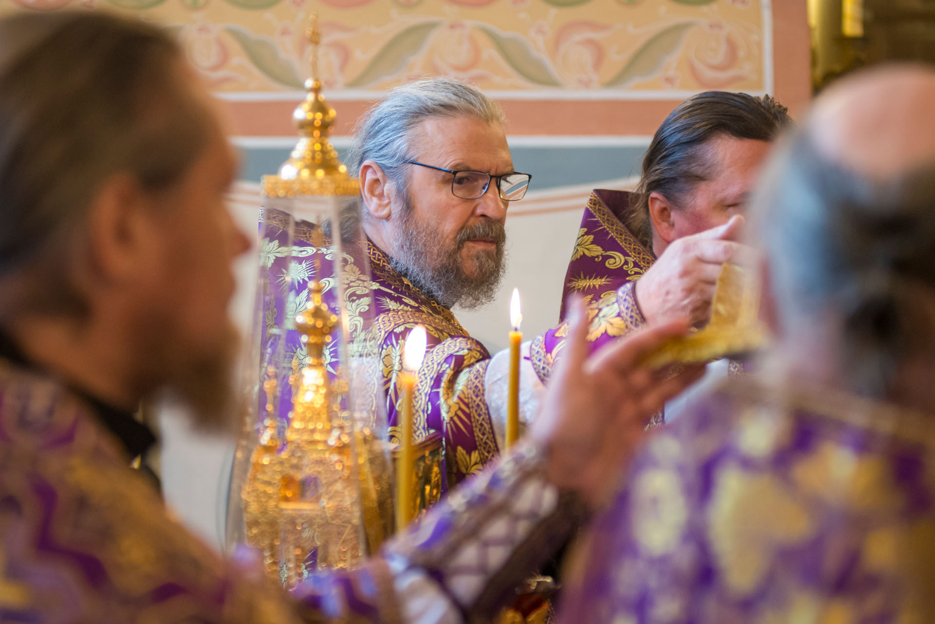 Его Преосвященству сослужили: настоятель монастыря архимандрит Димитрий (Храмцов), секретарь Переславского епархиального управления протоиерей Александр Передернин, благочинный монастырей епархии игумен Пантелеимон (Королёв), настоятель монастыря Животворящего Креста Господня с. Погост-Крест Шуйской епархии игумен Гавриил (Лысов), иеромонах Глеб (Быкадоров), иеромонах Евфимий (Куликов), иеромонах Алексей (Сорокин), диакон Владимир Принёв, диакон Алексей Герасимов, иеродиакон Никита (Зарубин).