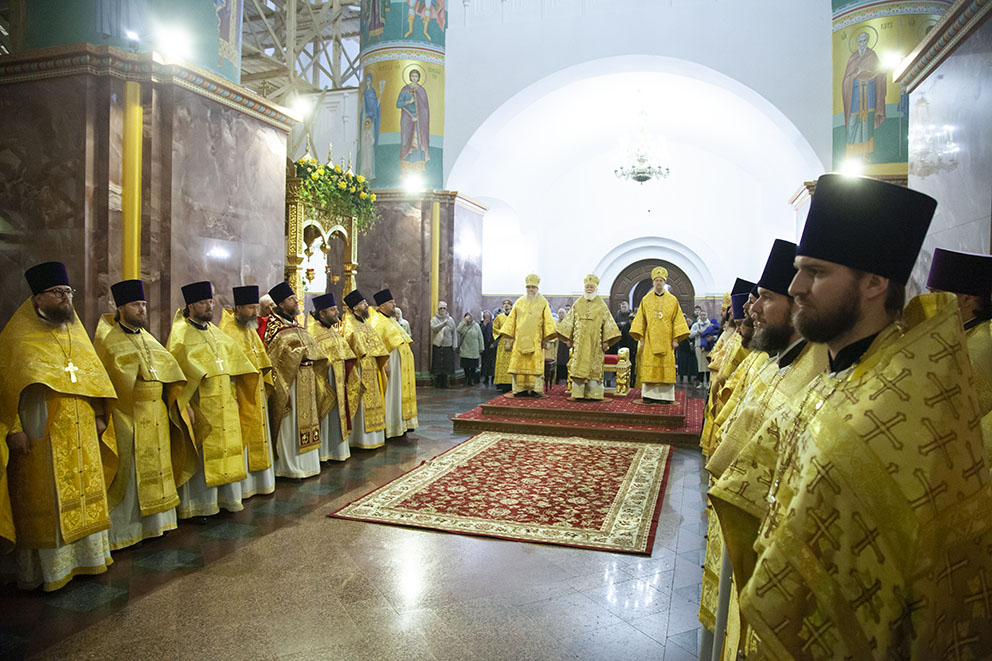 Служение Литургии в Успенском кафедральном соборе города Ярославля, где находятся мощи святых, возглавил митрополит Ярославский и Ростовский Вадим.