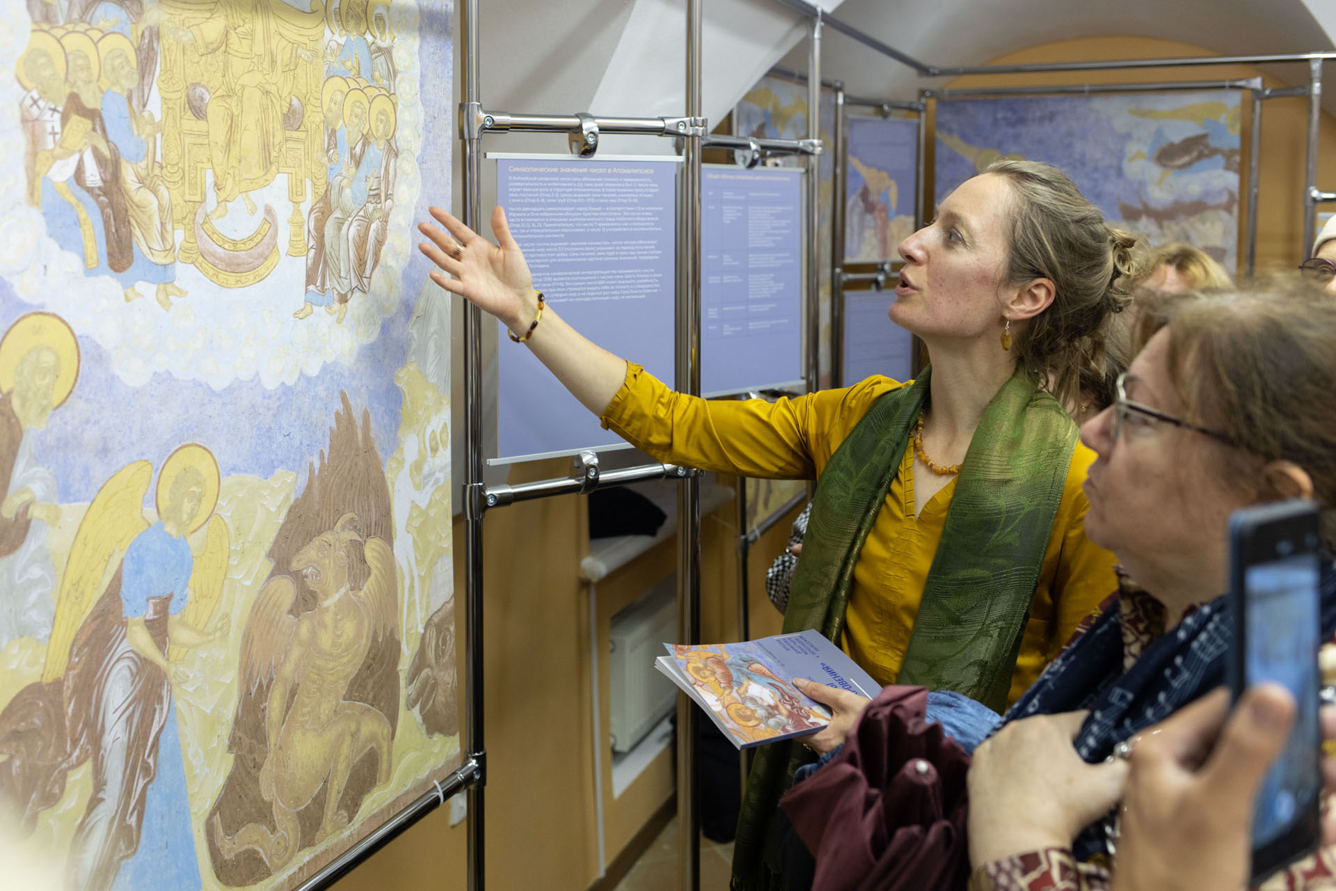 Также игумен Пантелеимон (Королёв) совместно с Вероникой Андросовой провели для гостей экскурсию, показали ключевые фрагменты росписи и объяснили сложные сюжеты книги Откровения апостола Иоанна Богослова.