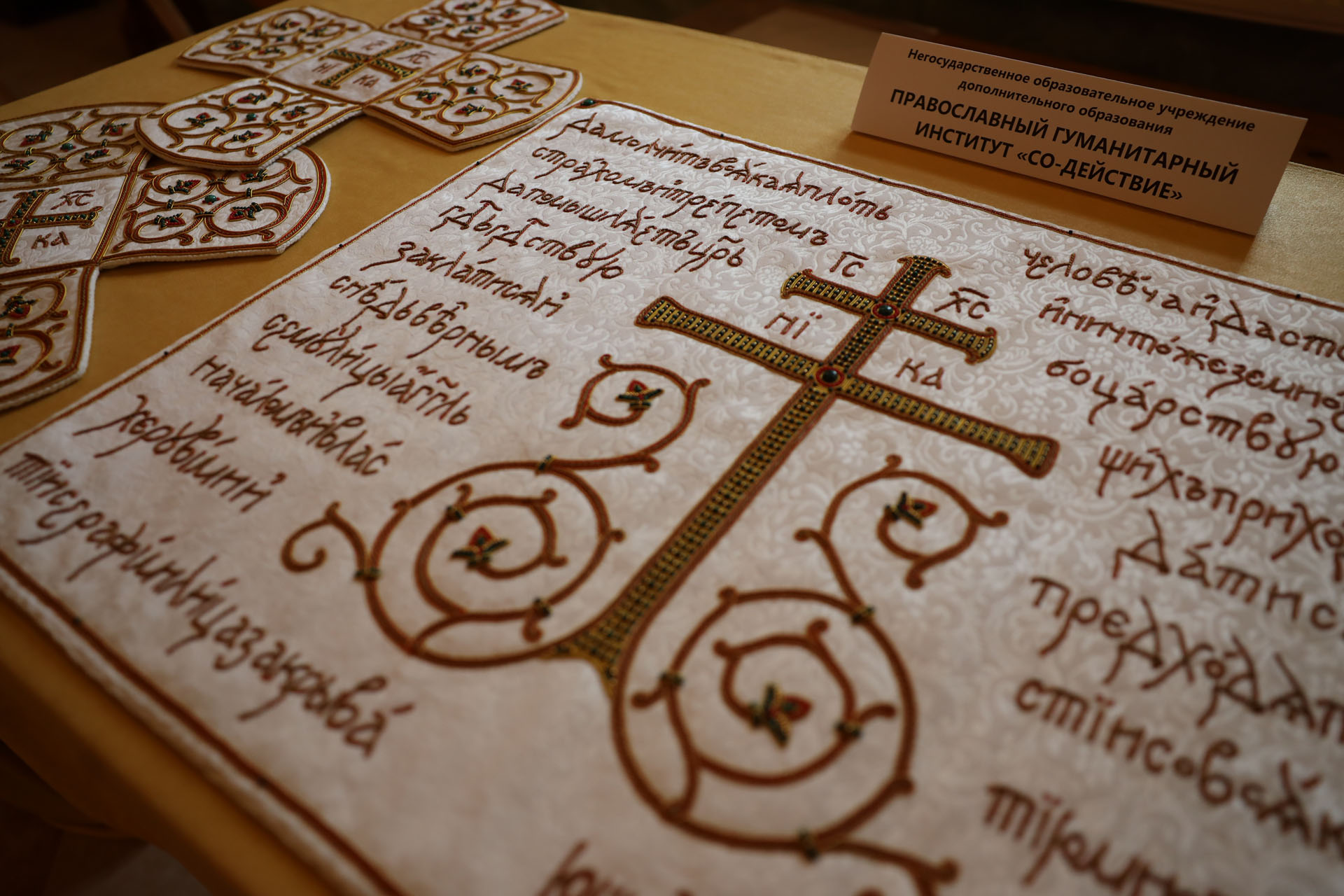 Куратором экспозиции выступила Вера Борисовна Казарина — специалист в области церковной вышивки, преподаватель данного направления студенткам Первого православного колледжа и руководитель мастерской «Покров» в Констанино-Еленинском женском монастыре в Выборгском районе Ленинградской области.