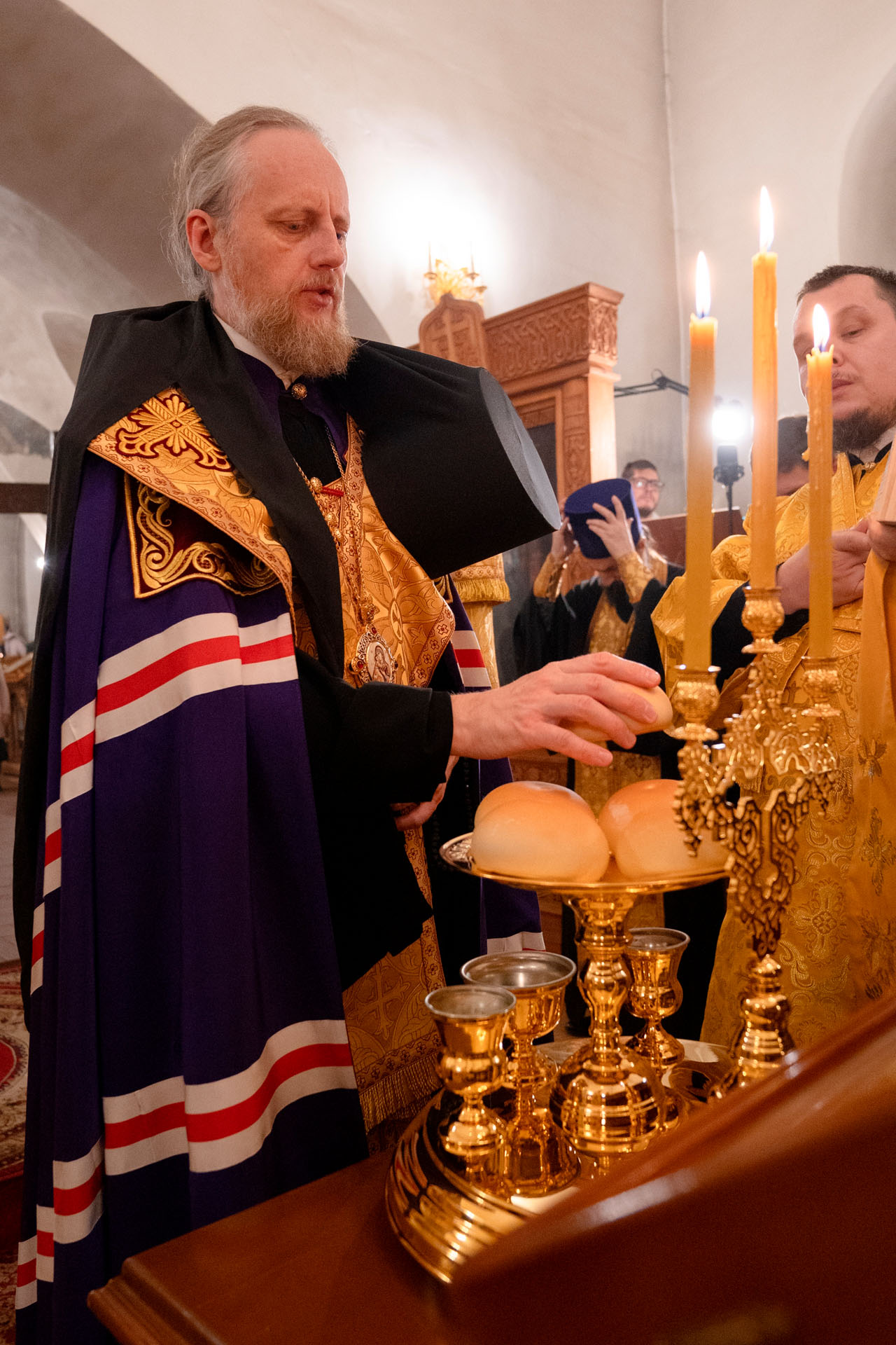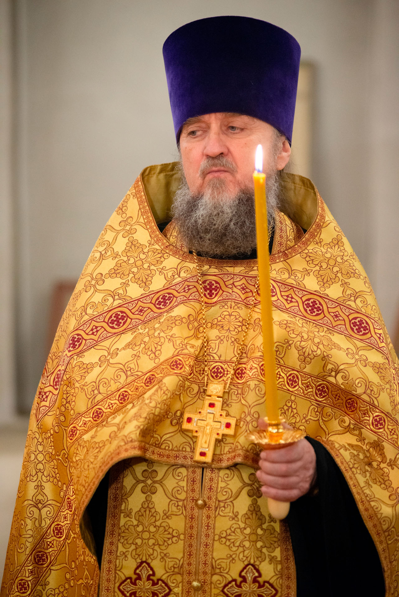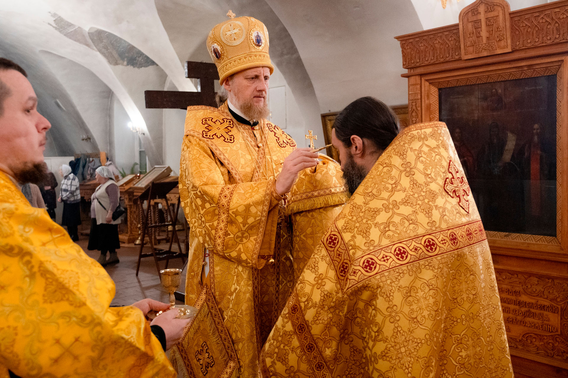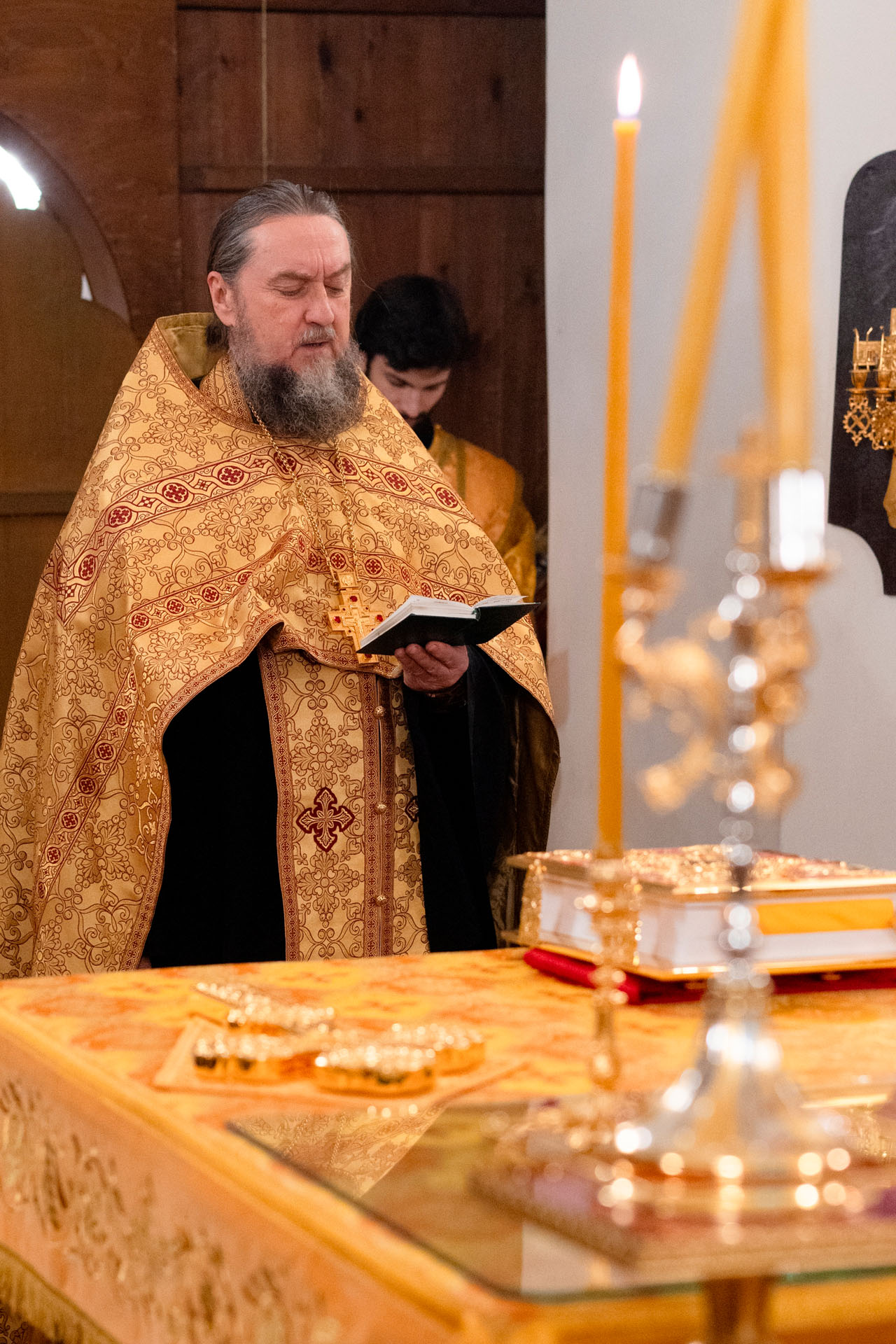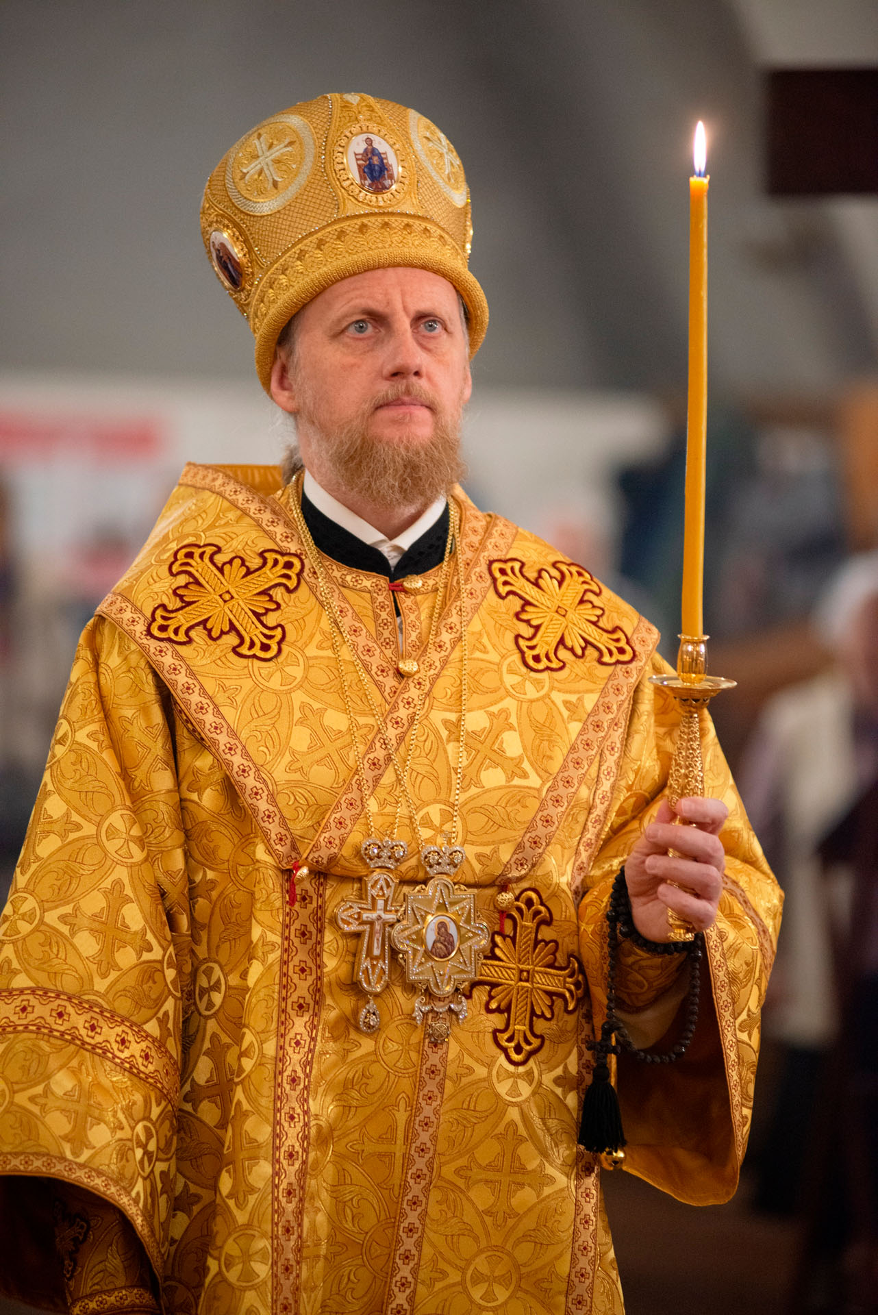 Его Преосвященству сослужили: почётный настоятель собора протоиерей Андрей Кульков, настоятель собора протоиерей Алексей Морозов, протоиерей Андрей Уфимцев, священник Алексей Талалаев, диакон Владимир Принёв, диакон Алексей Герасимов, диакон Сергий Танчинец.