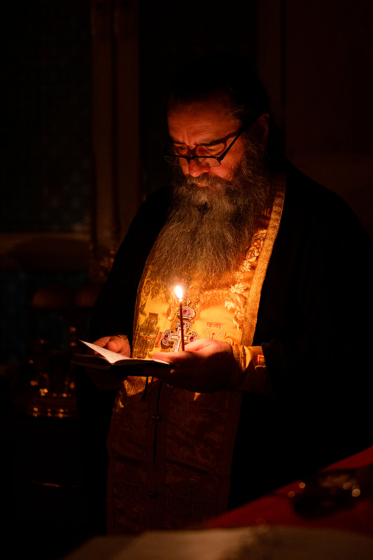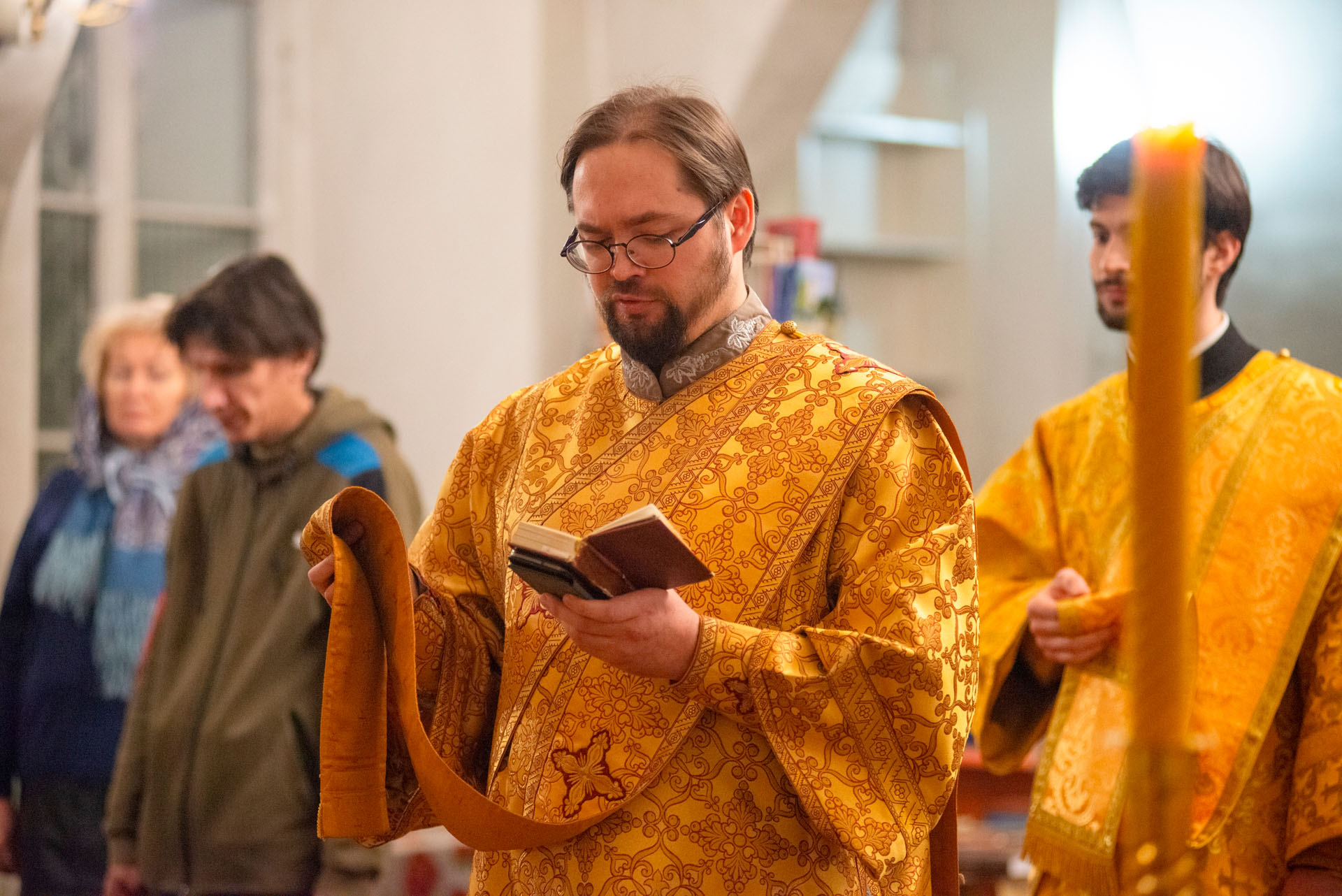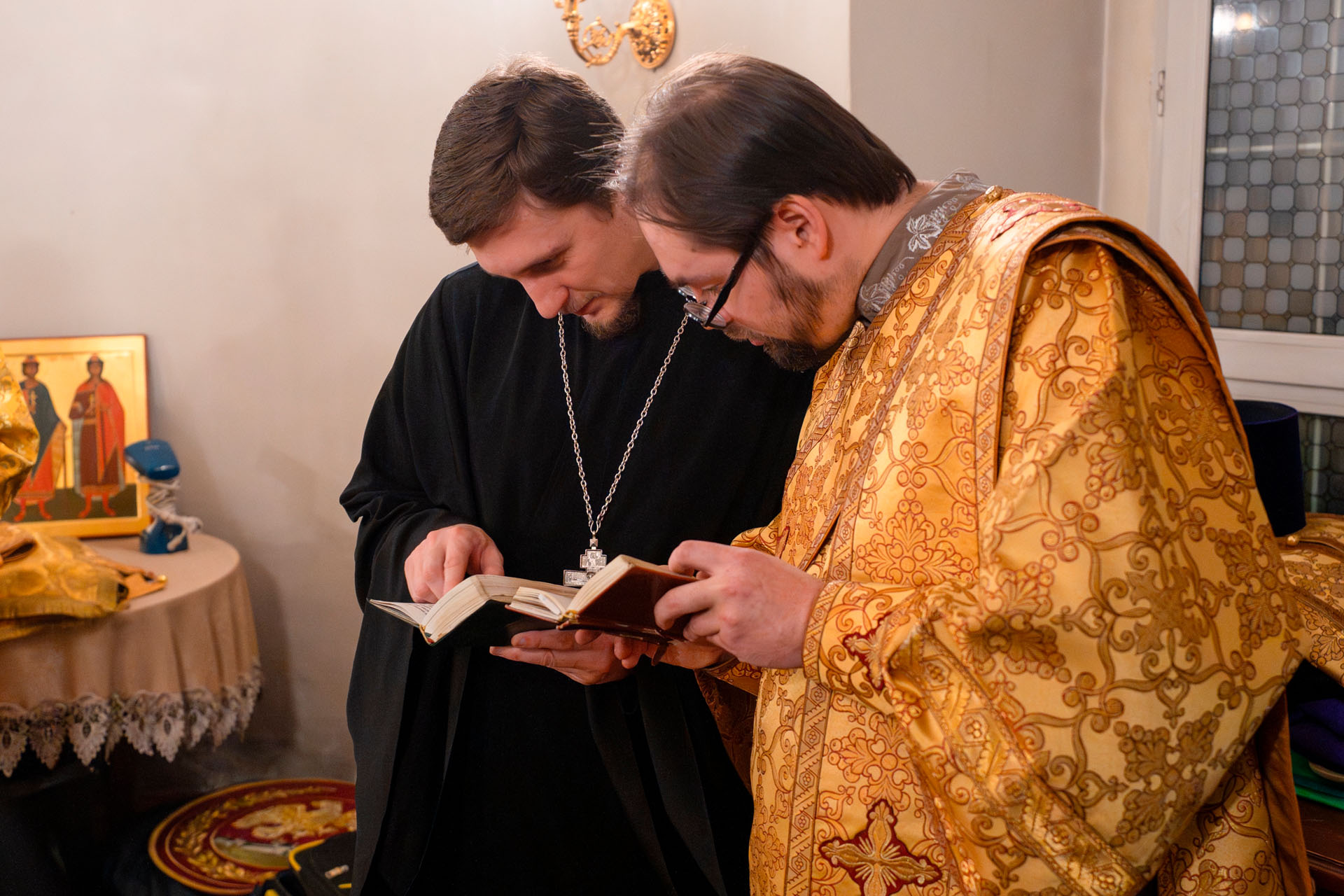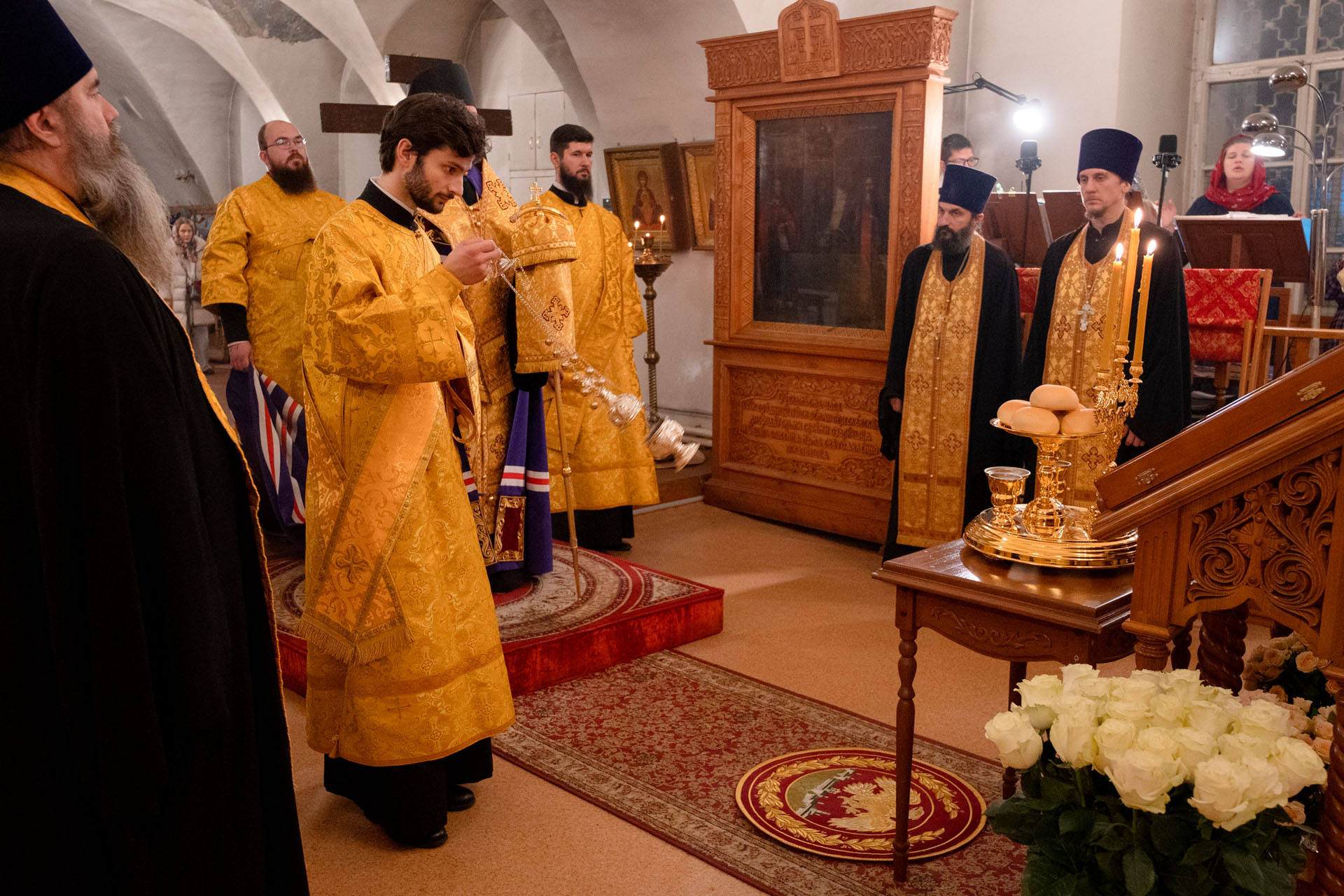 Его Преосвященству сослужили: почётный настоятель собора протоиерей Андрей Кульков, настоятель собора протоиерей Алексей Морозов, протоиерей Андрей Уфимцев, священник Алексей Талалаев, диакон Владимир Принёв, диакон Алексей Герасимов, диакон Сергий Танчинец.