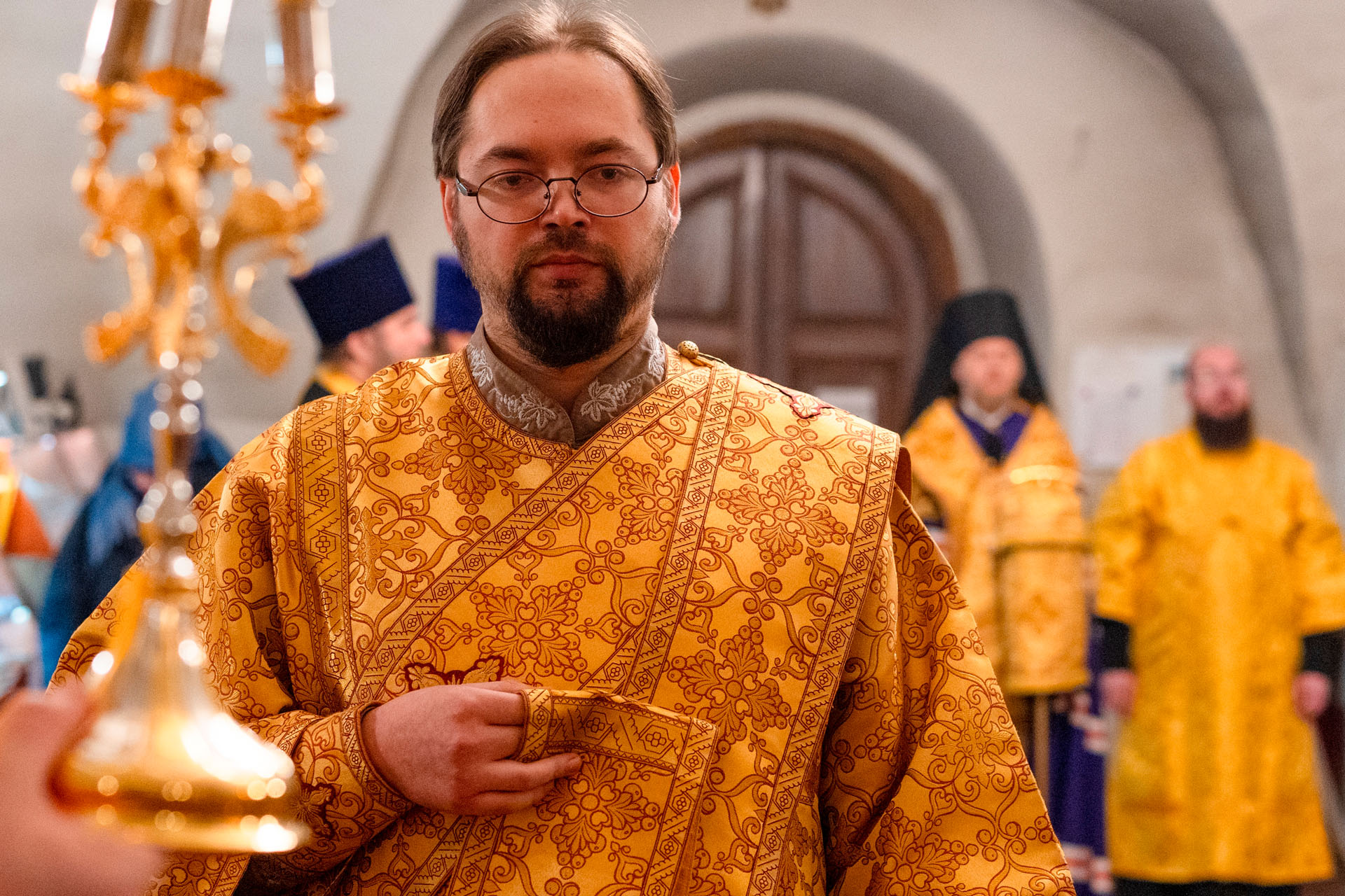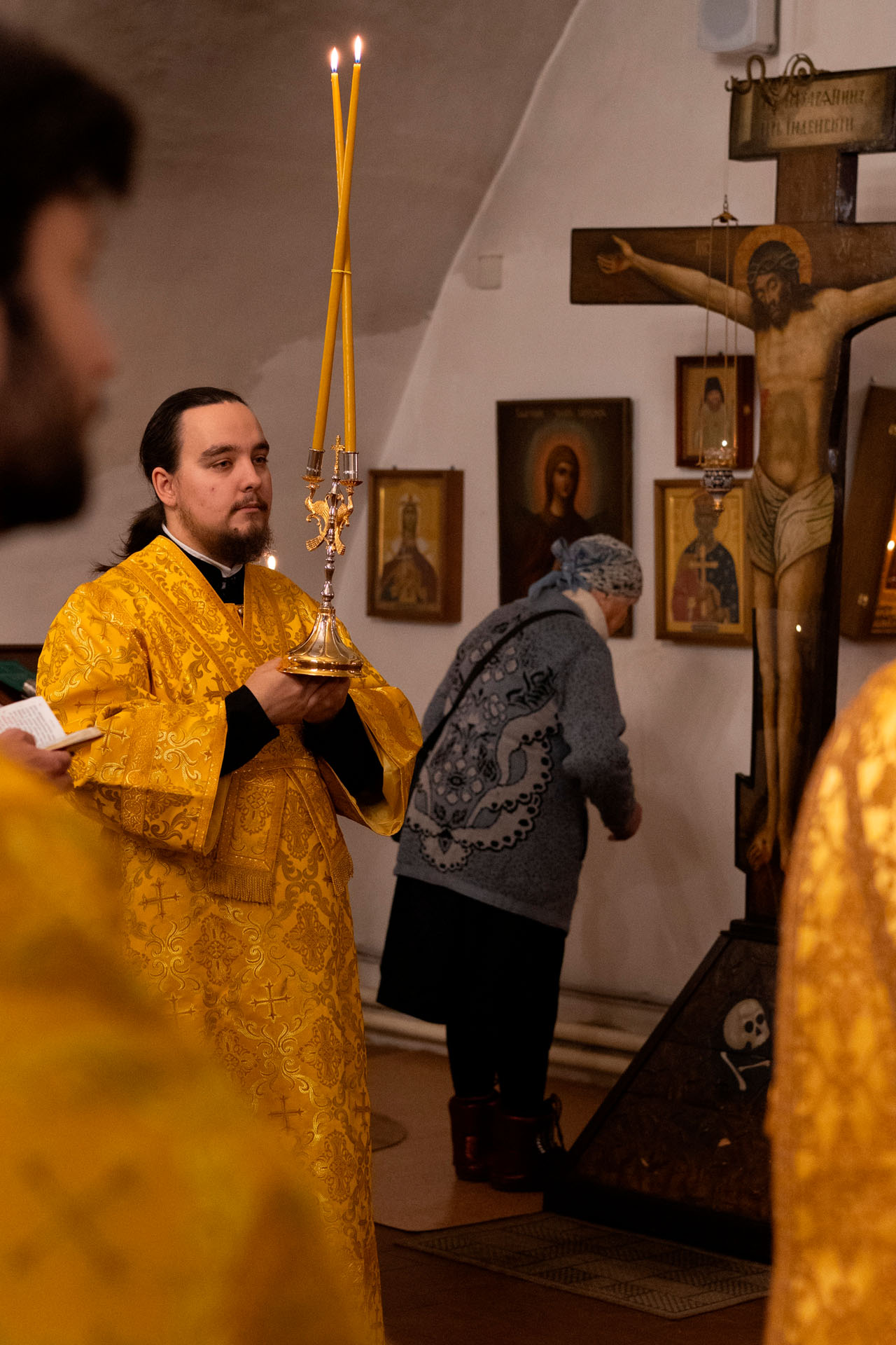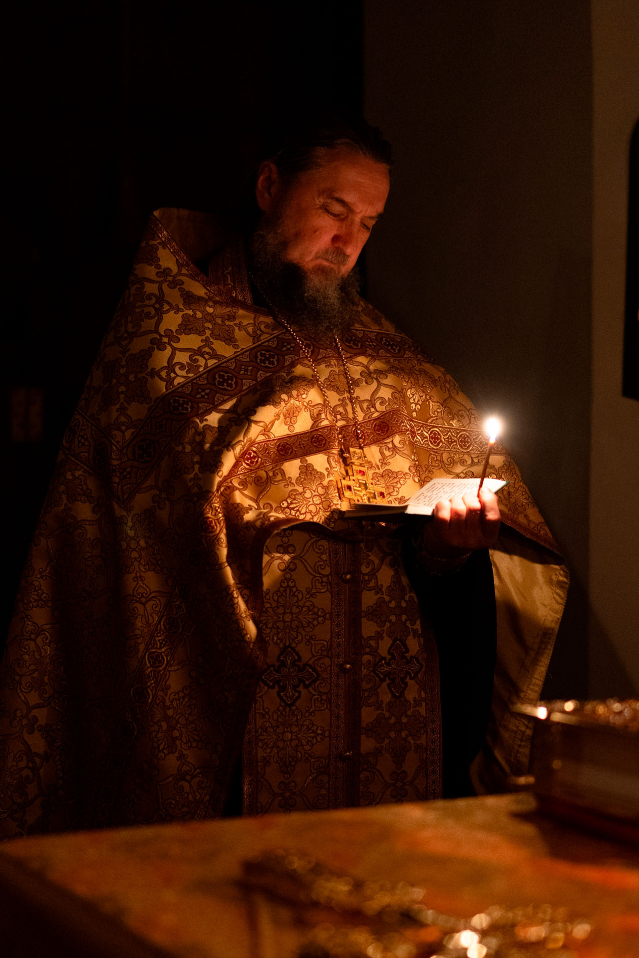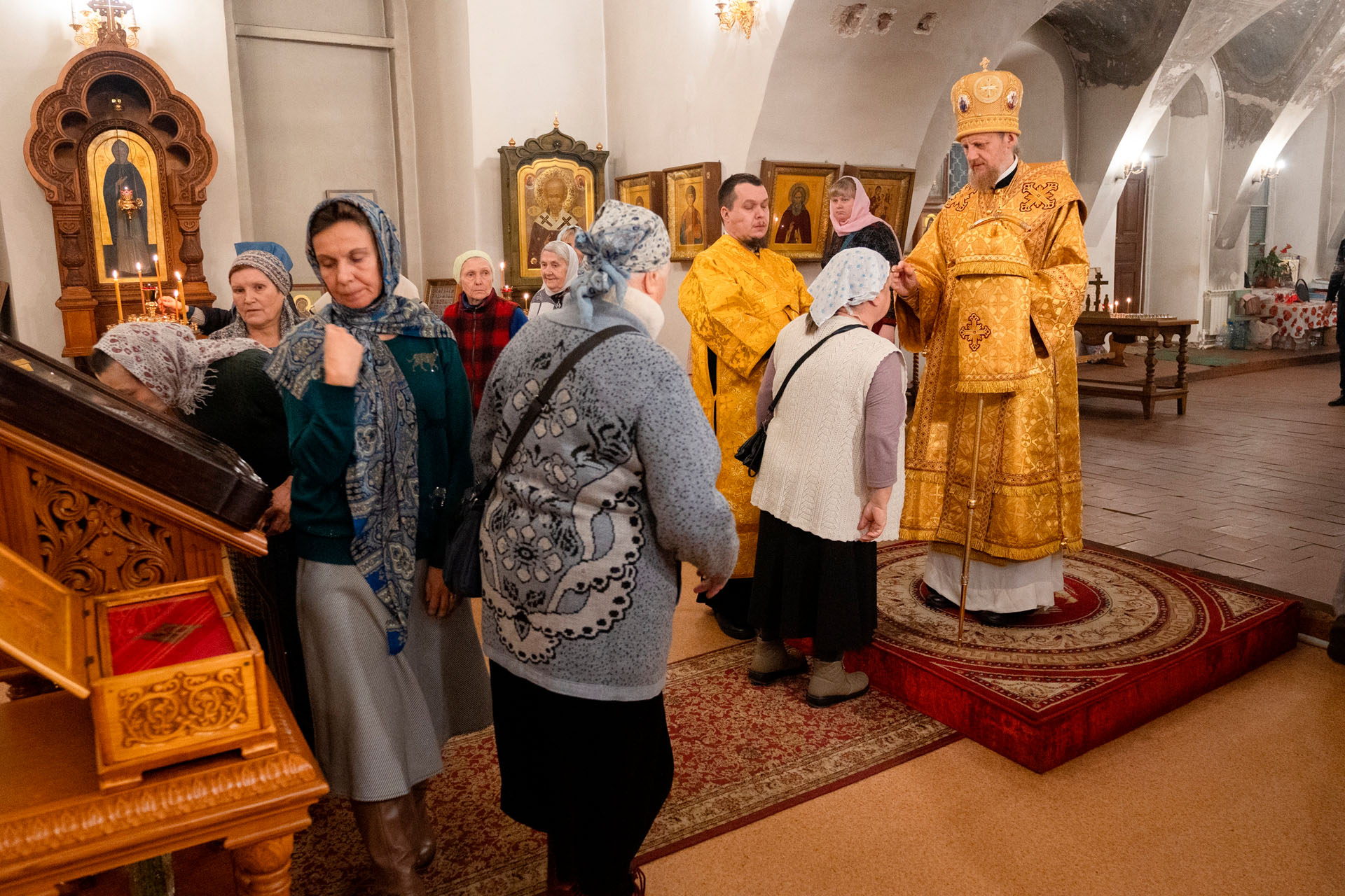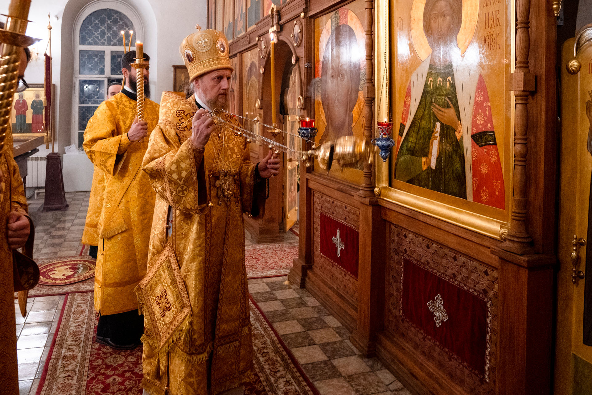 5 декабря 2025 года, в канун празднования дня памяти святого благоверного князя Александра Невского, епископ Переславский и Угличский Феоктист совершил всенощное бдение в Александро-Невском храме Владимирского кафедрального собора.