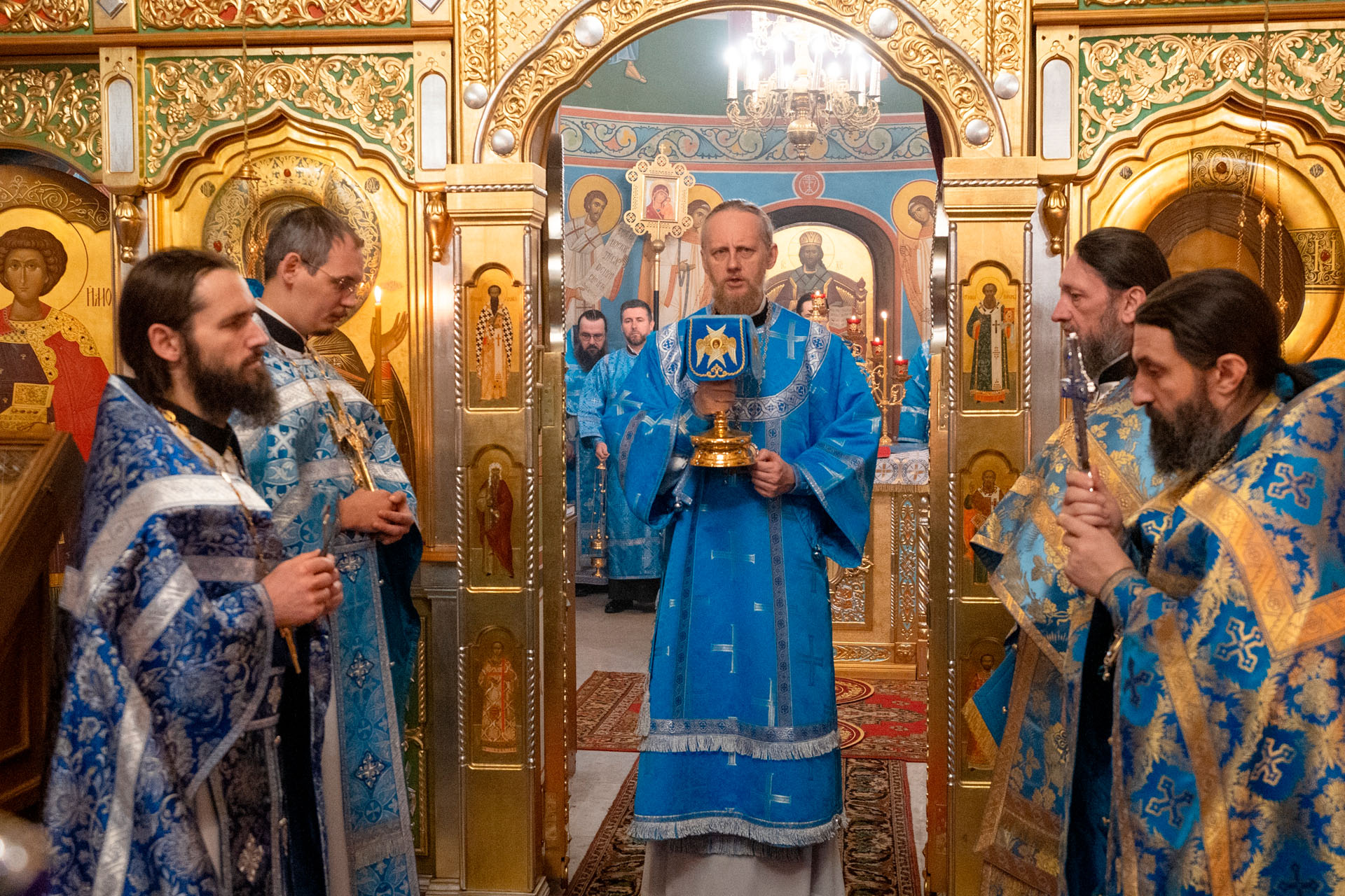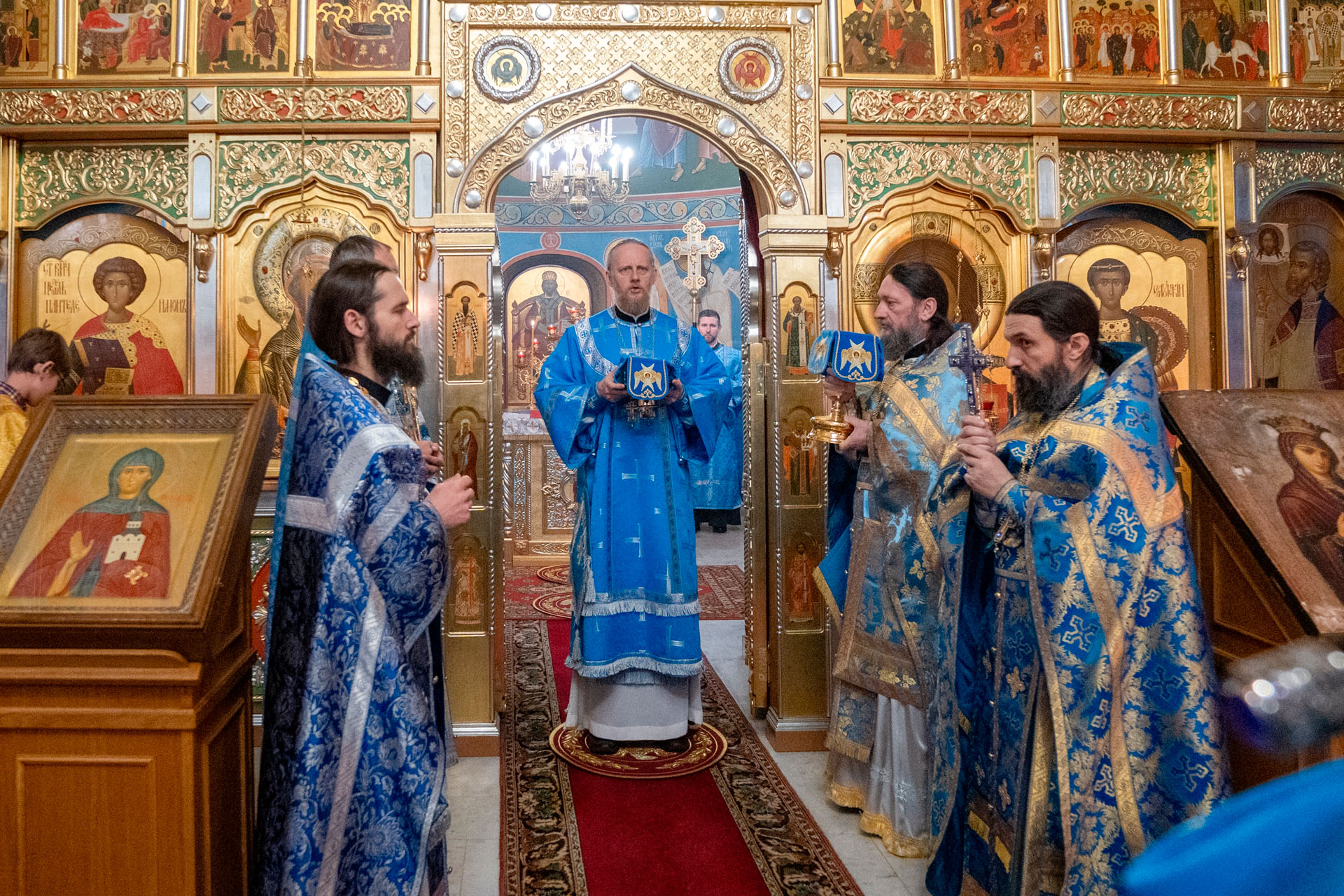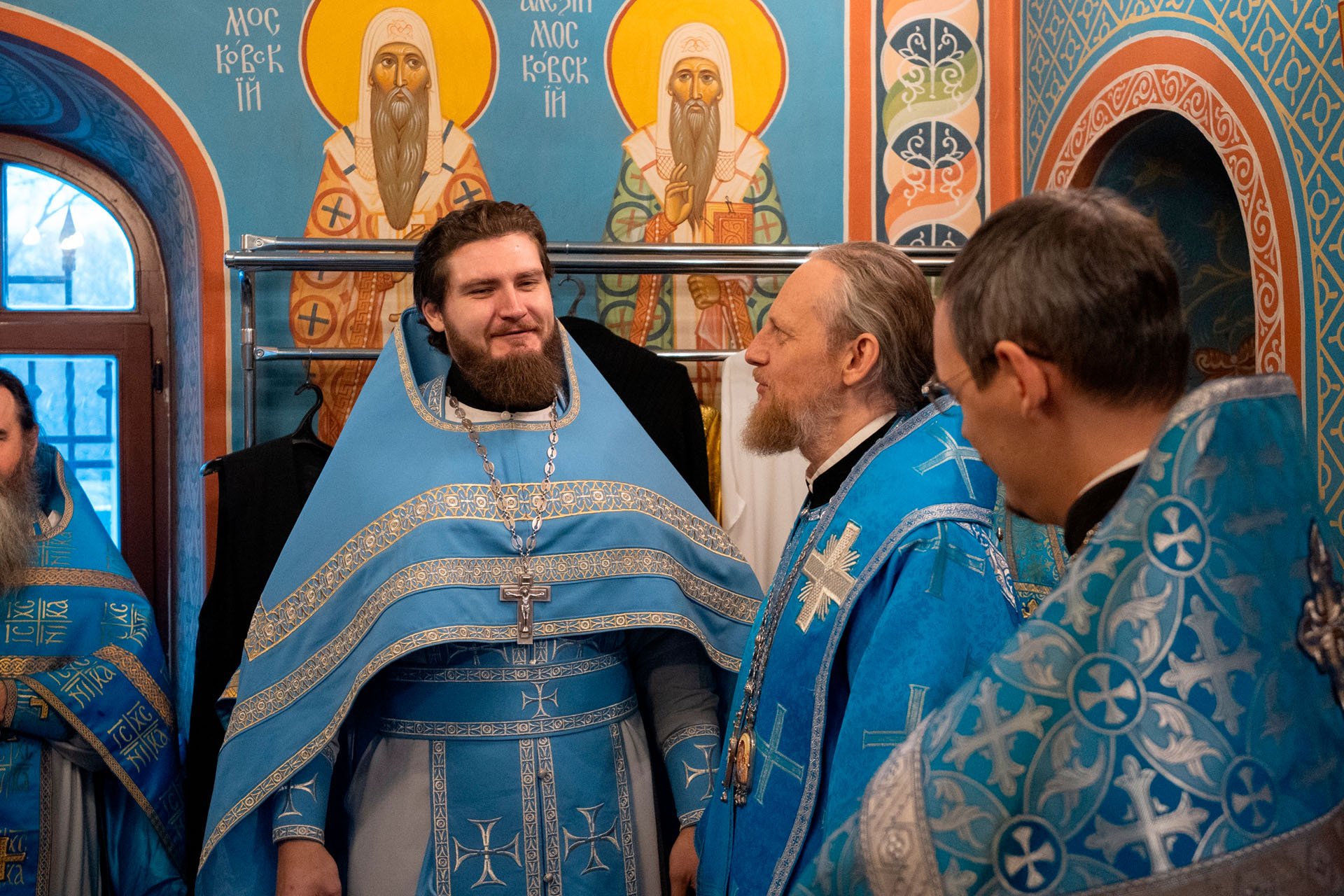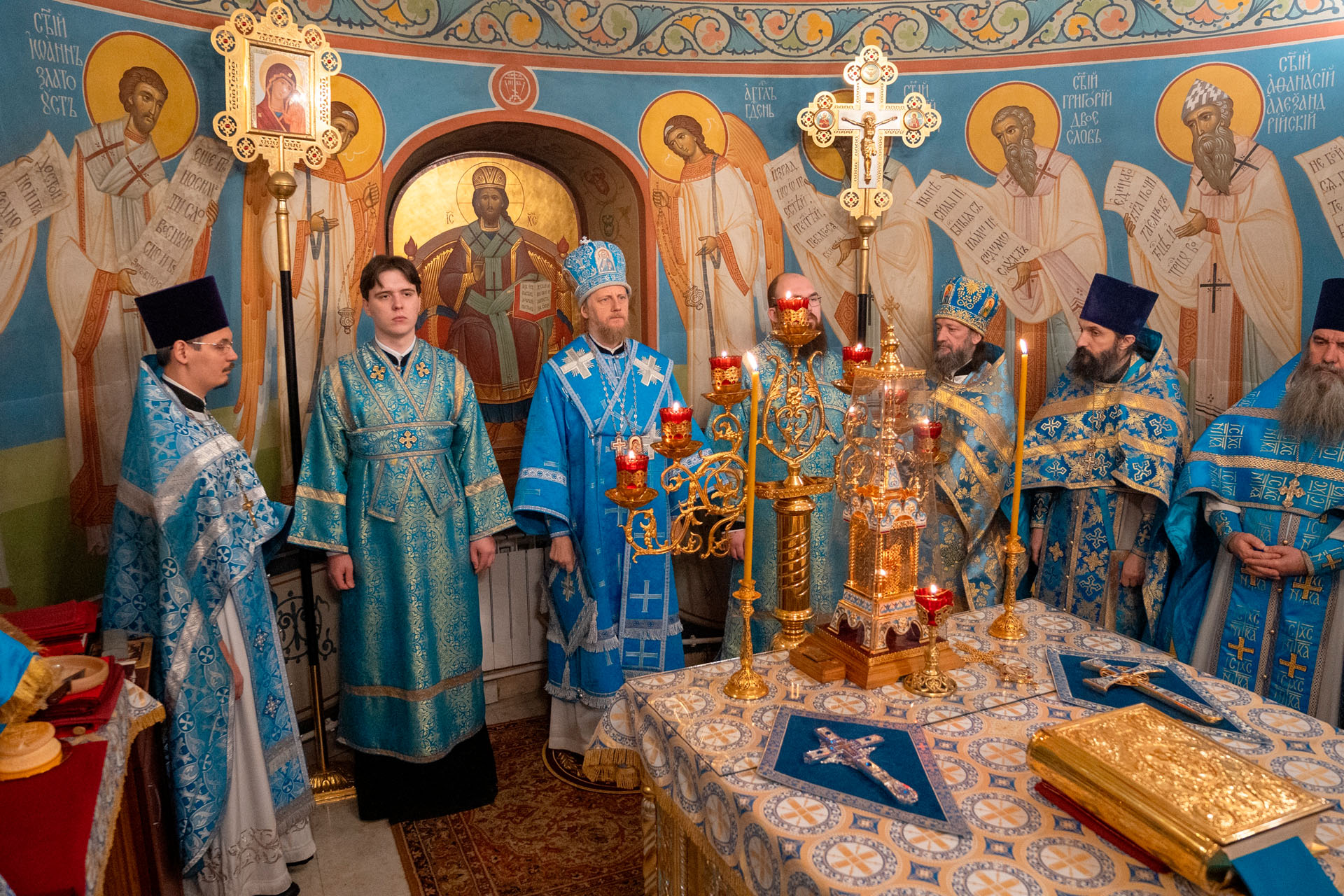 Его Преосвященству сослужили: секретарь епархиального управления протоиерей Александр Передернин, настоятель храма священник Сергий Савенков, протоиерей Алексей Морозов, протоиерей Андрей Уфимцев, иеромонах Илия (Кропанов), протоиерей Геннадий Никуленко, игумен Пантелеимон (Королёв), иеромонах Тихон (Батурин), священник Николай Бабкин, иеродиакон Герман (Евсеев), диакон Владимир Принёв, диакон Олег Юрков.