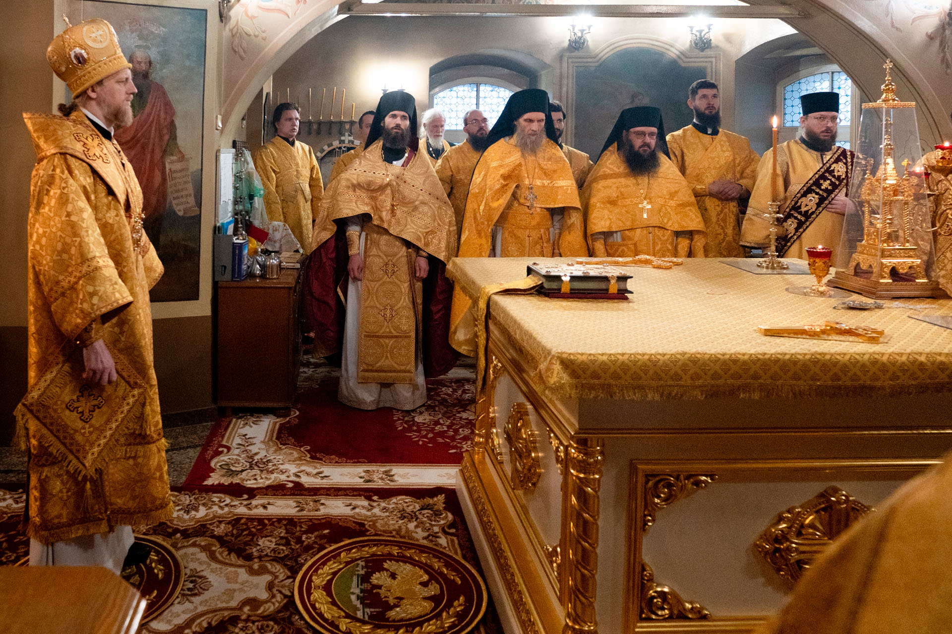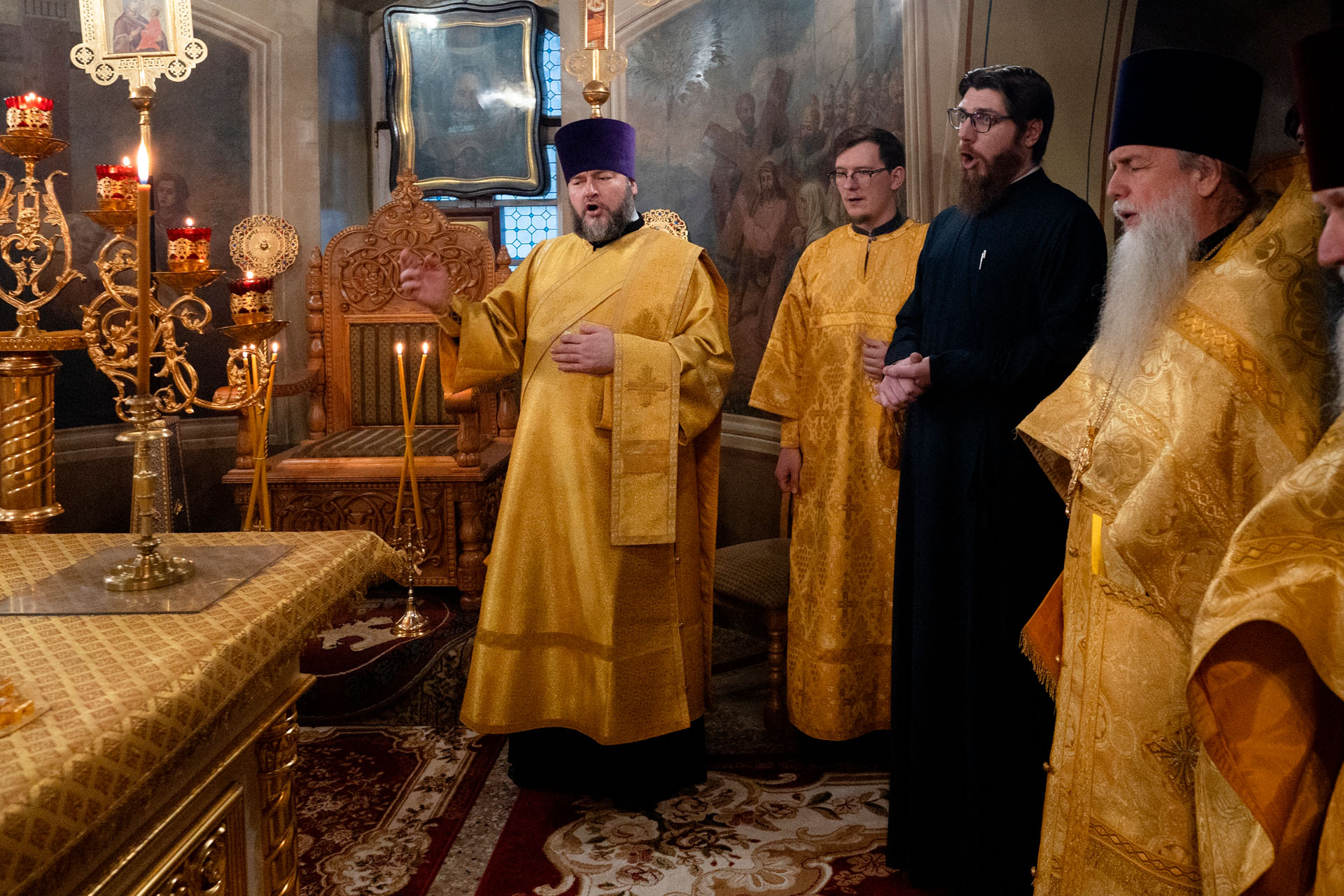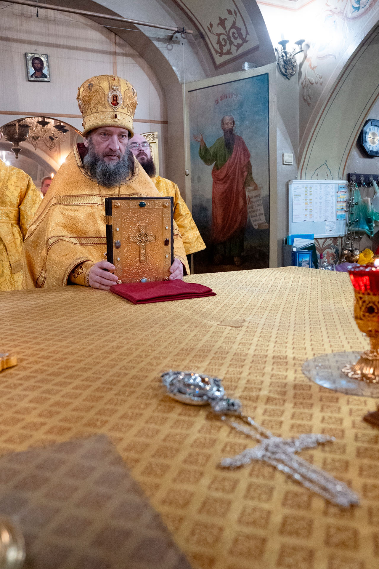 Его Преосвященству сослужили: секретарь Переславского епархиального управления протоиерей Александр Передернин, благочинный монастырей епархии игумен Пантелеимон (Королёв), протоиерей Александр Бочков, протоиерей Александр Смирнов, игумен Александр (Широких), иеромонах Тихон (Батурин), священник Дионисий Елистратов, протодиакон Николай Мальцев, иеродиакон Герман (Евсеев), диакон Владимир Принёв, диакон Алексей Герасимов, диакон Сергий Танчинец, диакон Димитрий Ухоботов.