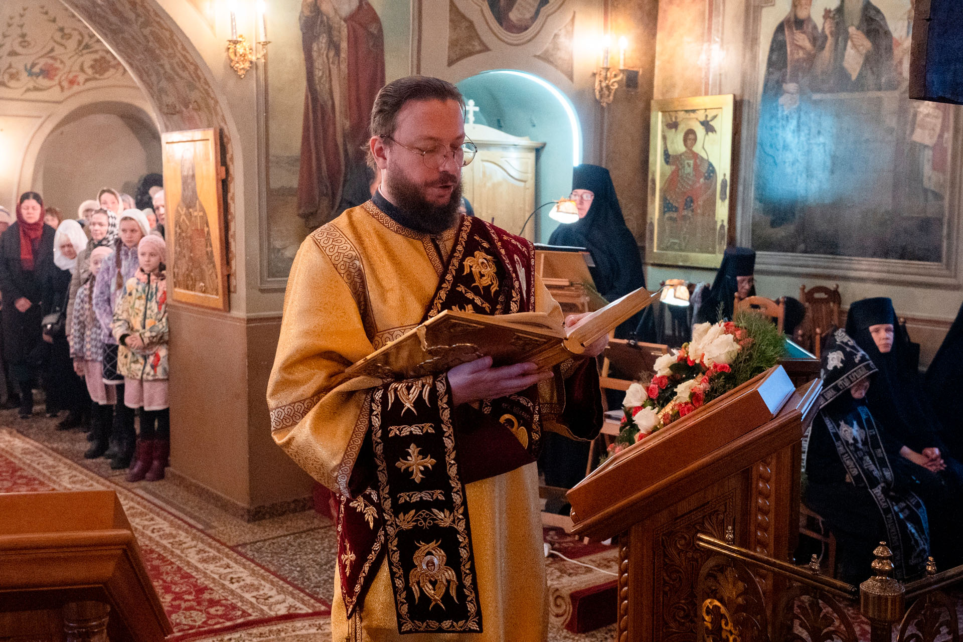 19 декабря 2025 года, в день памяти святителя Николая, архиепископа Мир Ликийских, чудотворца, епископ Переславский и Угличский Феоктист совершил Литургию в Никольском женском монастыре.