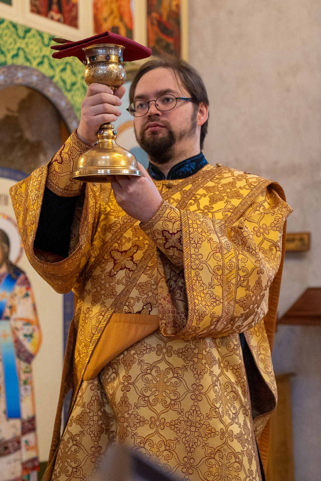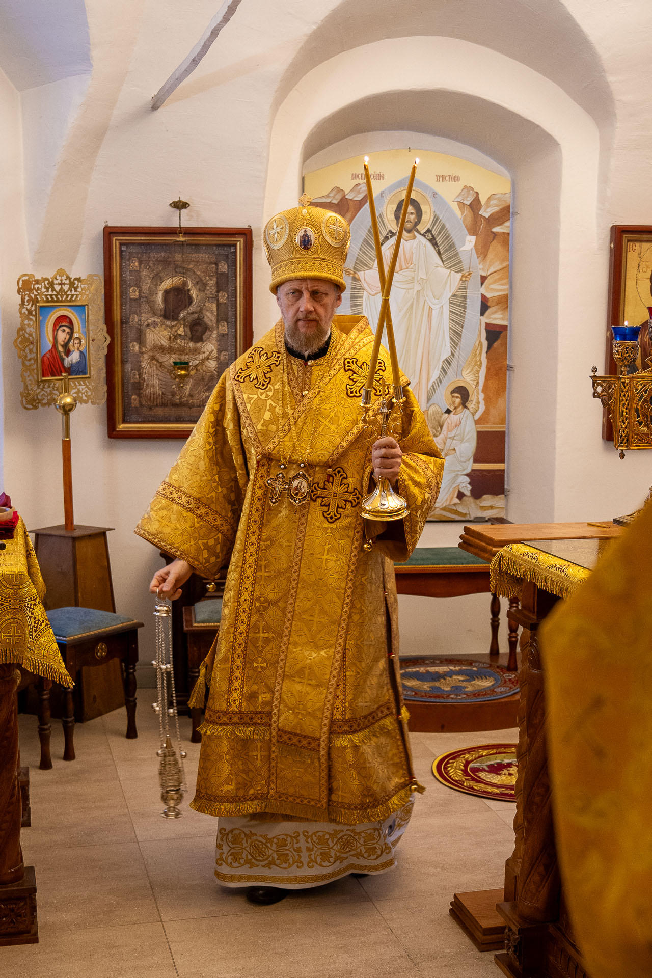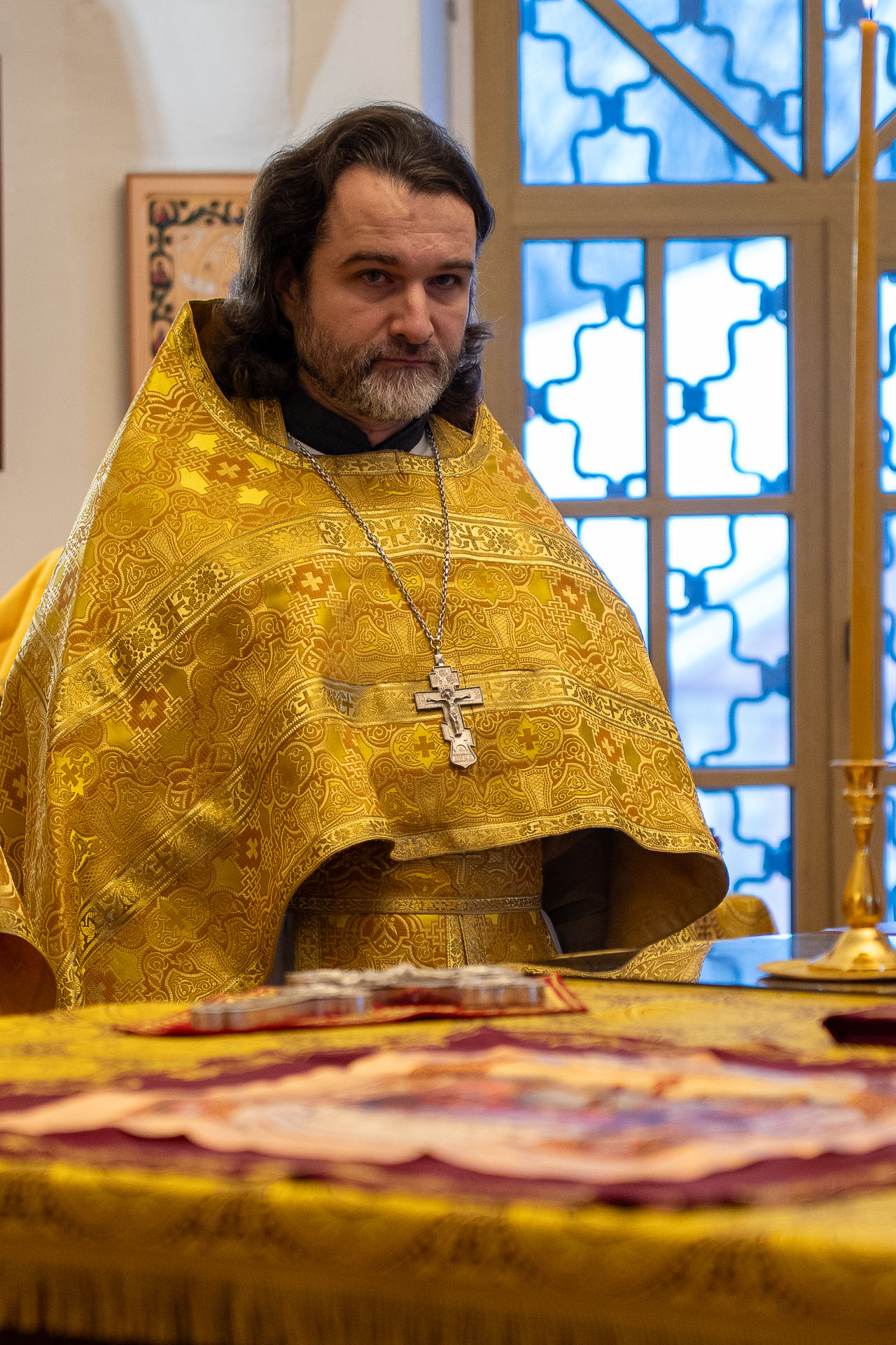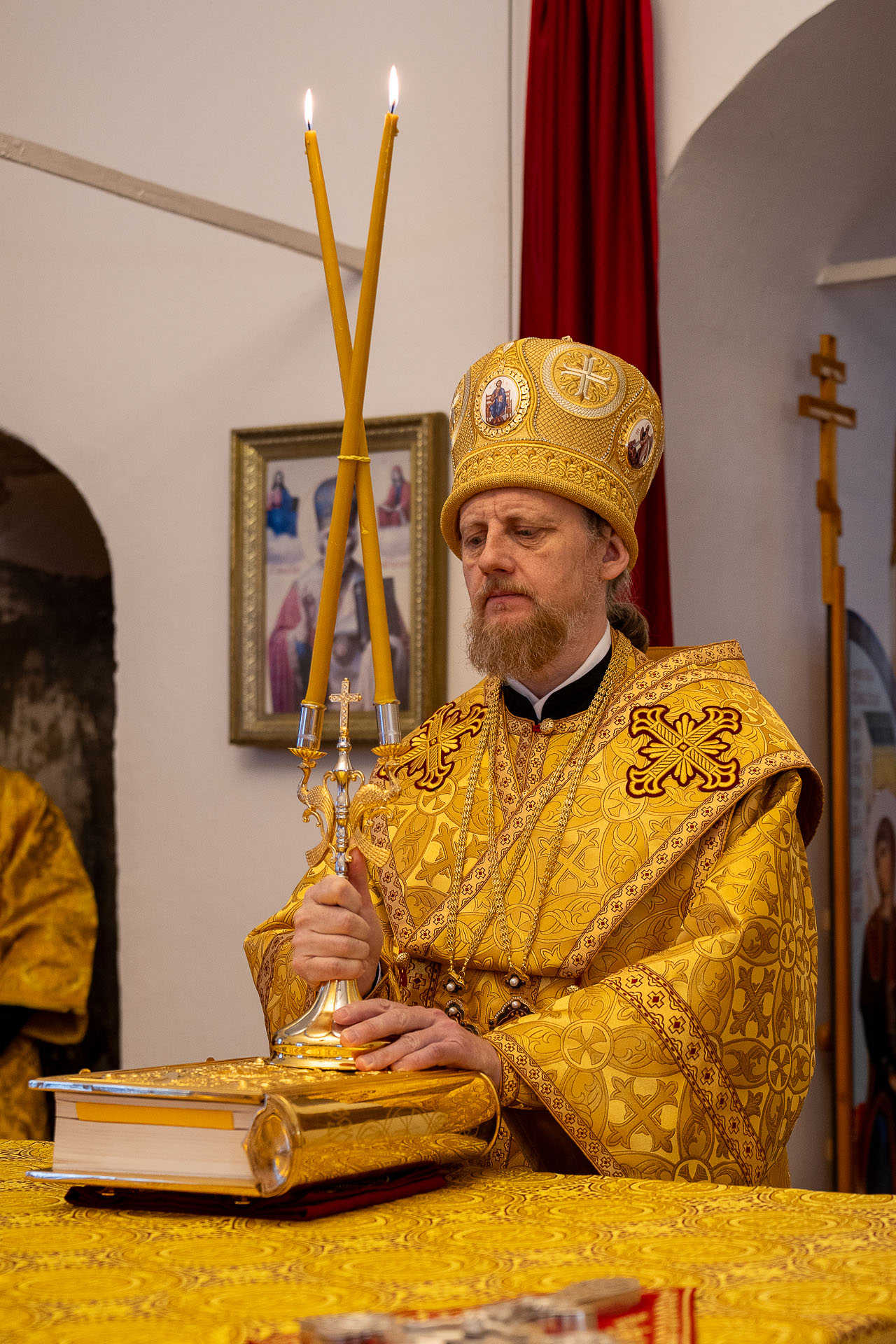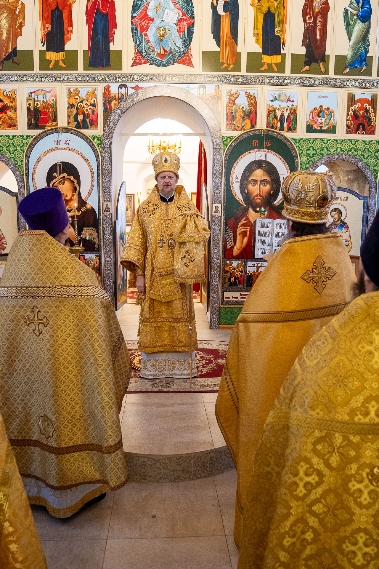 Его Преосвященству сослужили: секретарь Переславского епархиального управления протоиерей Александр Передернин, настоятель храма священник Виталий Сышев, протоиерей Михаил Лазарев, благочинный Плещеевского округа священник Олег Калинкин, священник Кирилл Филатов, священник Александр Востродымов, диакон Владимир Принёв, диакон Алексей Герасимов, диакон Димитрий Ухоботов.
