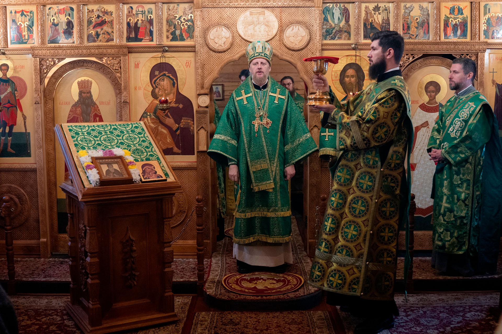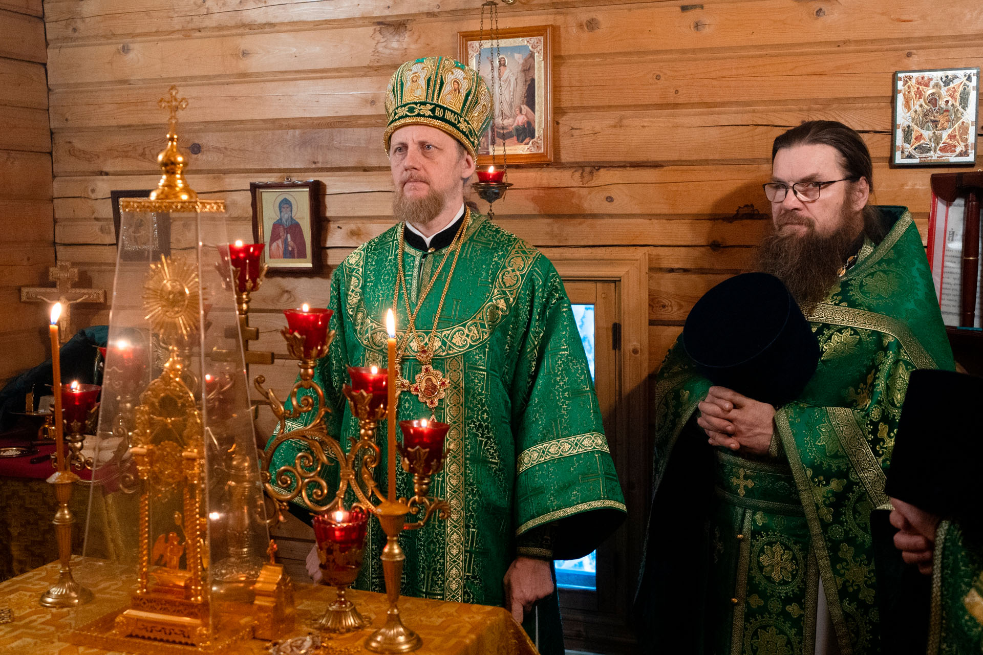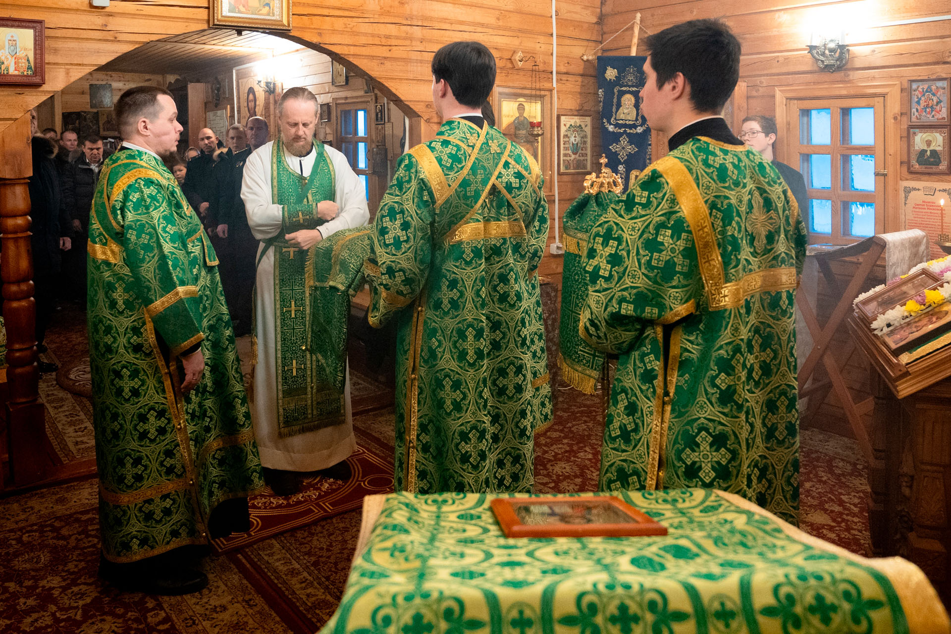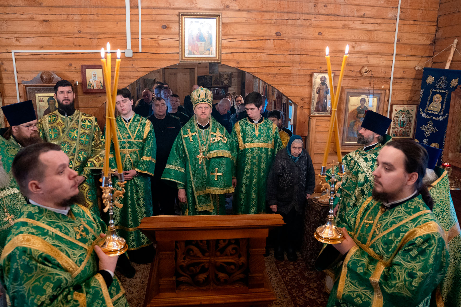 Его Преосвященству сослужили: благочинный Борисоглебского округа протоиерей Сергий Васильев, настоятель храма священник Терентий Стахович, протоиерей Борис Украинцев, священник Владимир Мартышин, священник Валерий Трякин, диакон Алексей Герасимов, диакон Олег Юрков.