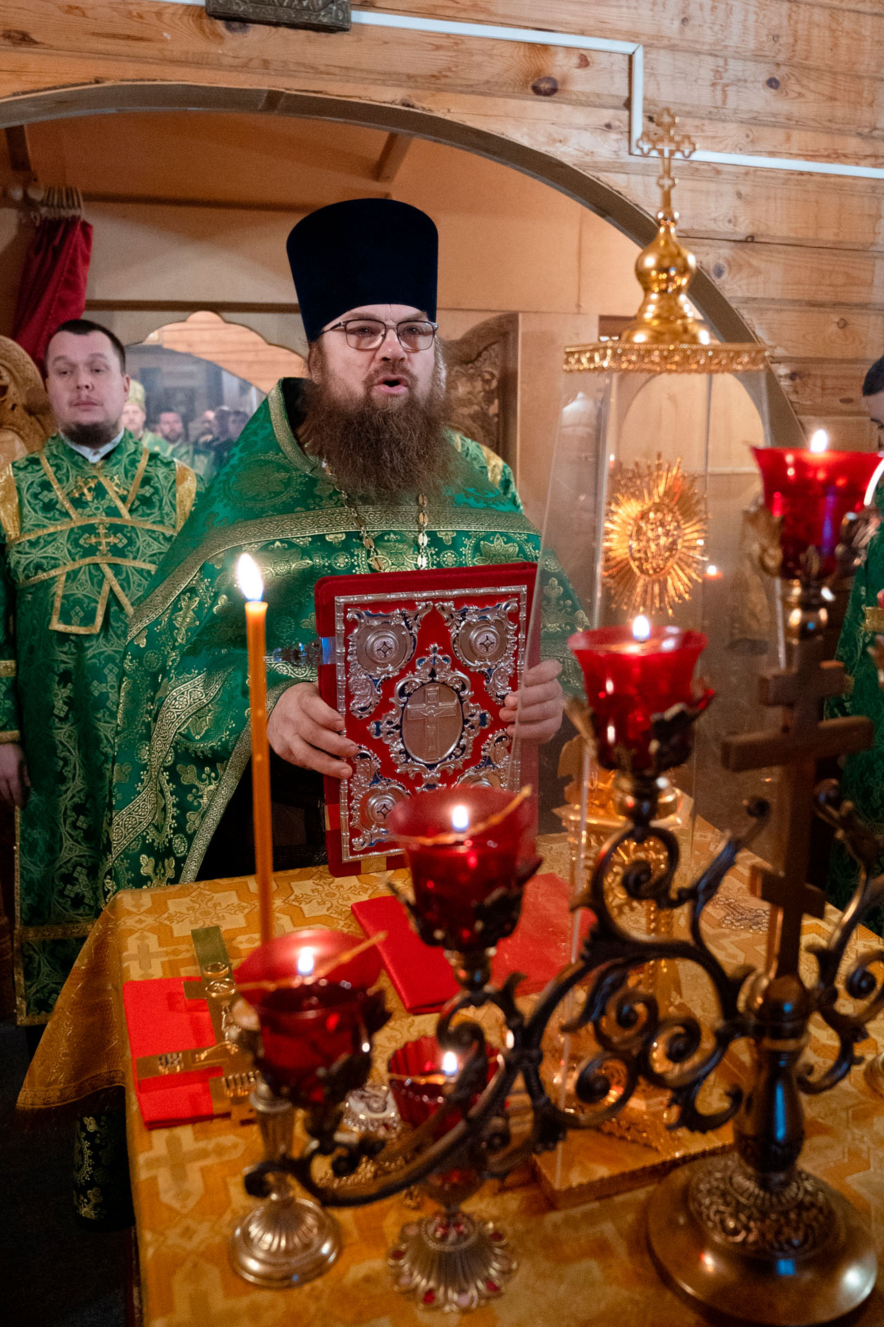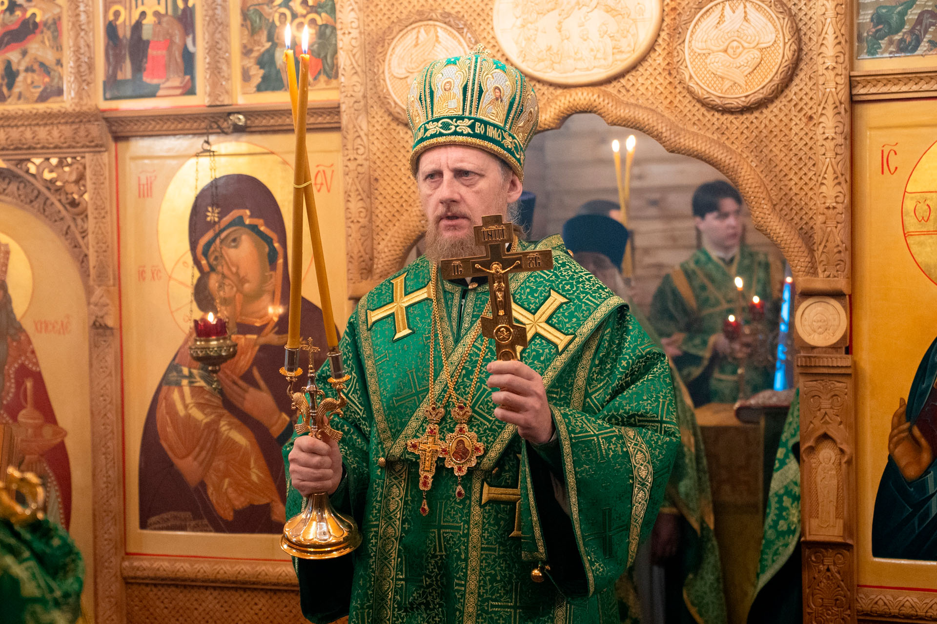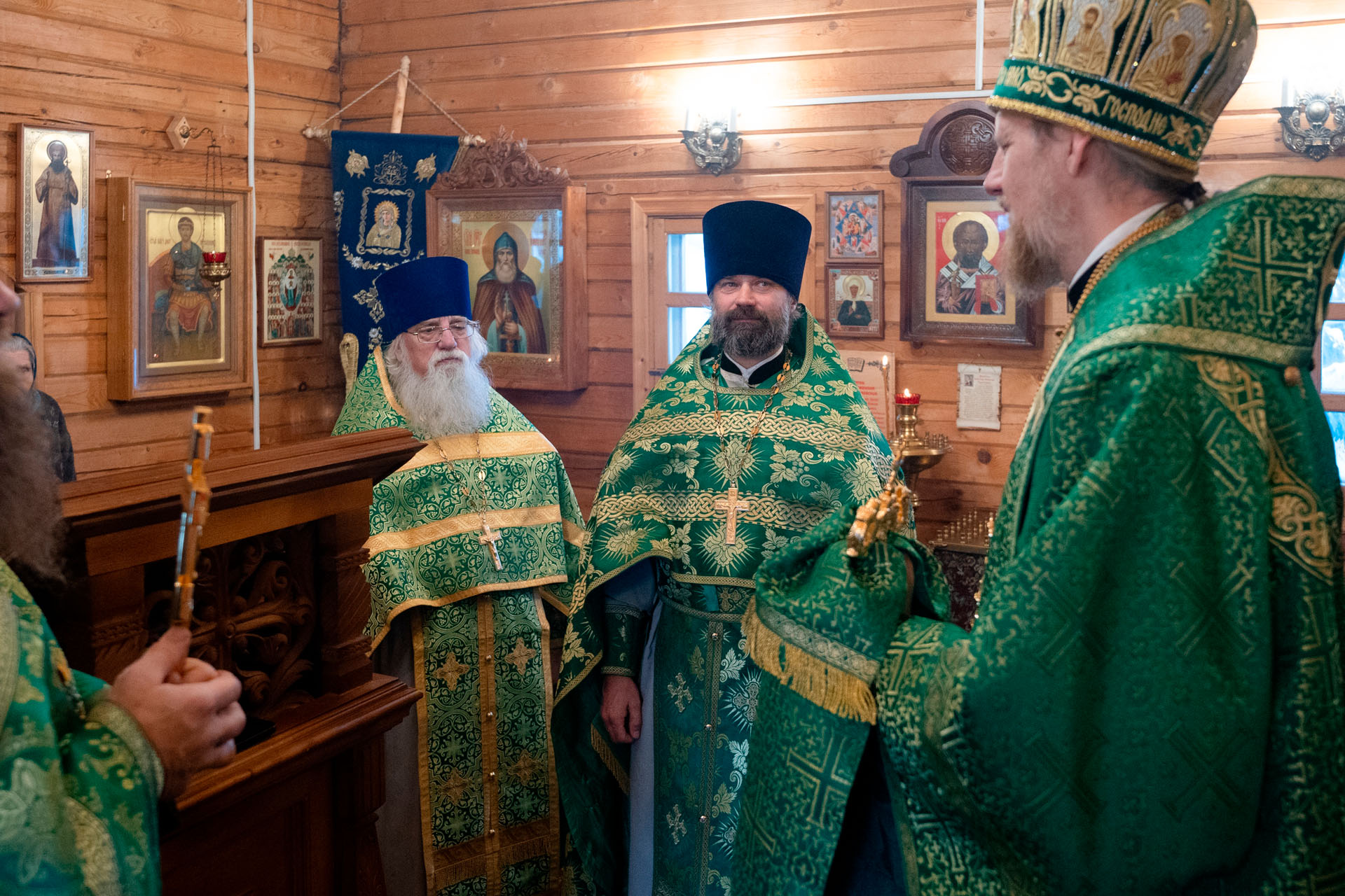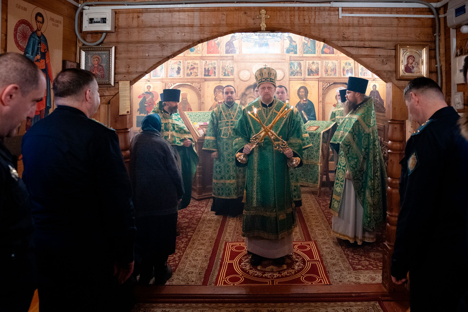 Его Преосвященству сослужили: благочинный Борисоглебского округа протоиерей Сергий Васильев, настоятель храма священник Терентий Стахович, протоиерей Борис Украинцев, священник Владимир Мартышин, священник Валерий Трякин, диакон Алексей Герасимов, диакон Олег Юрков.