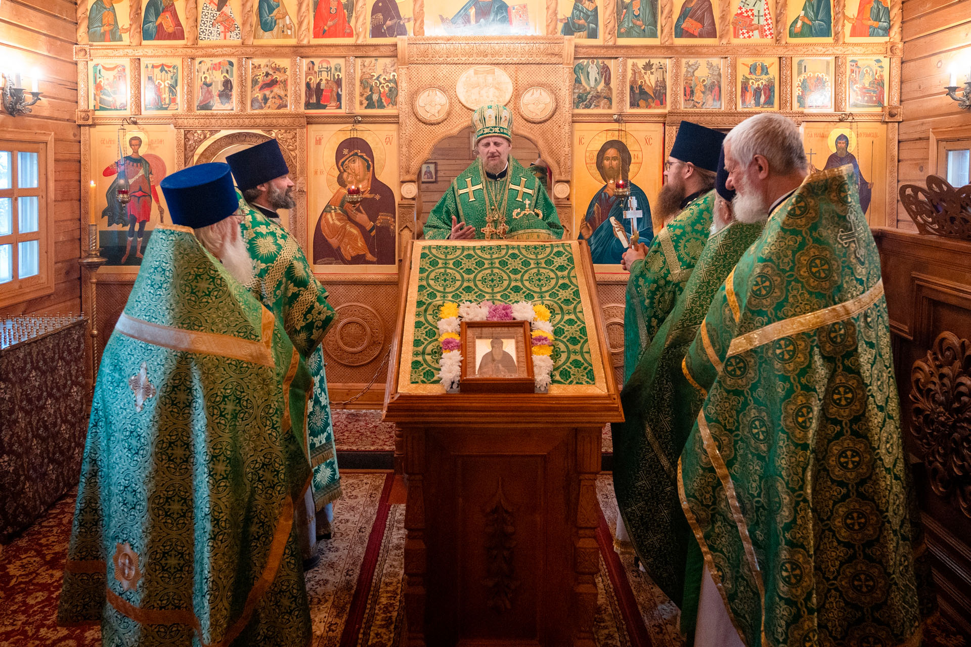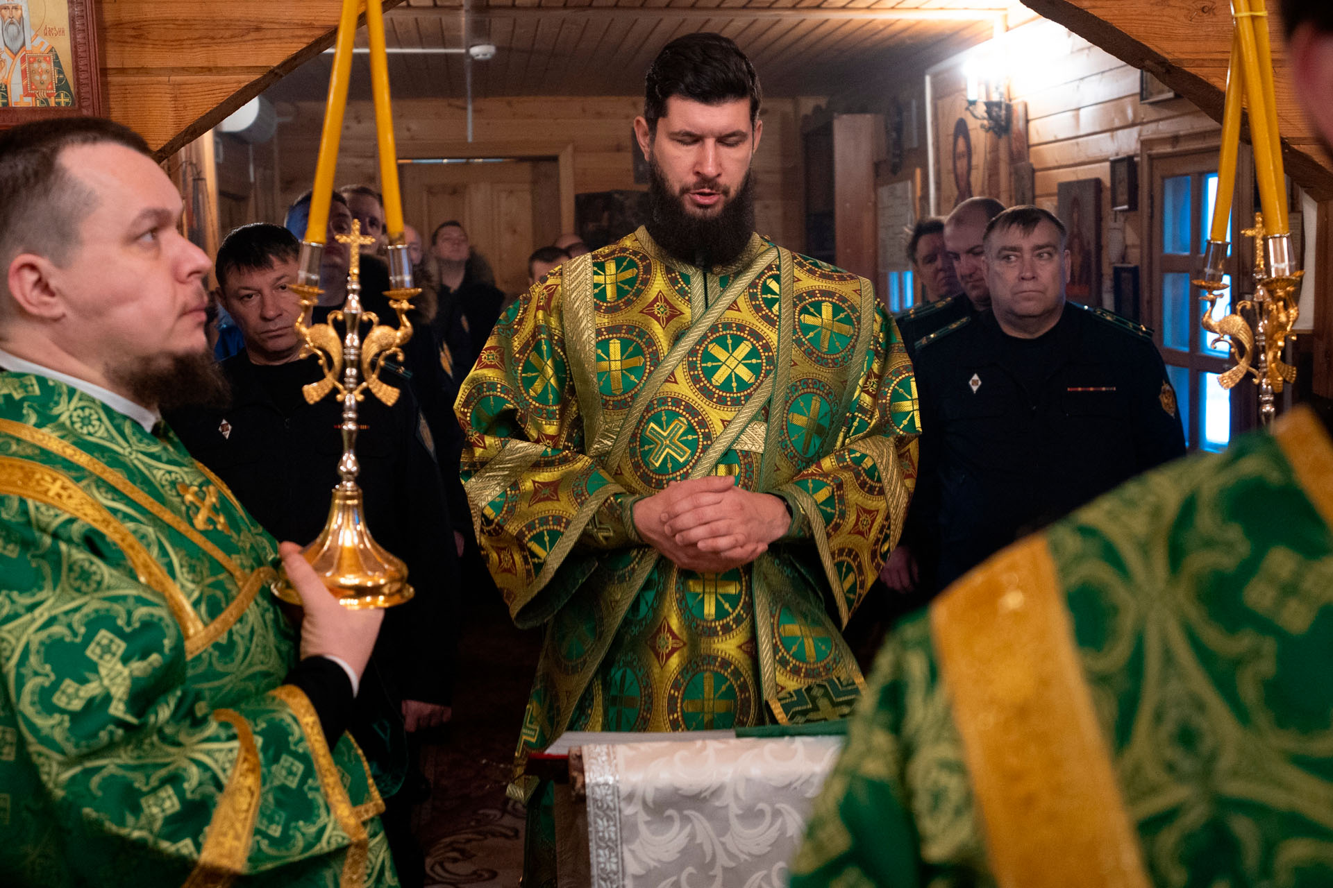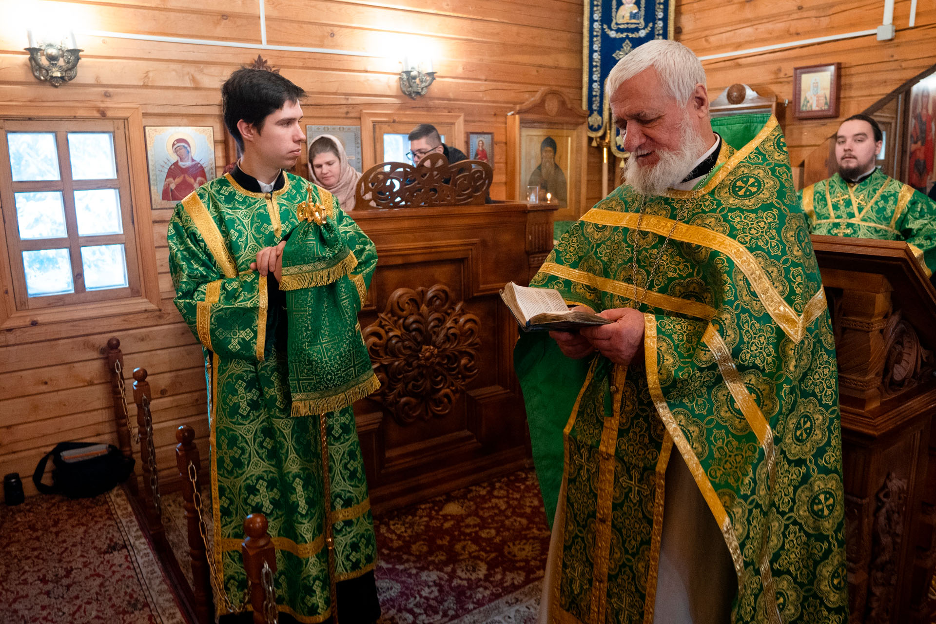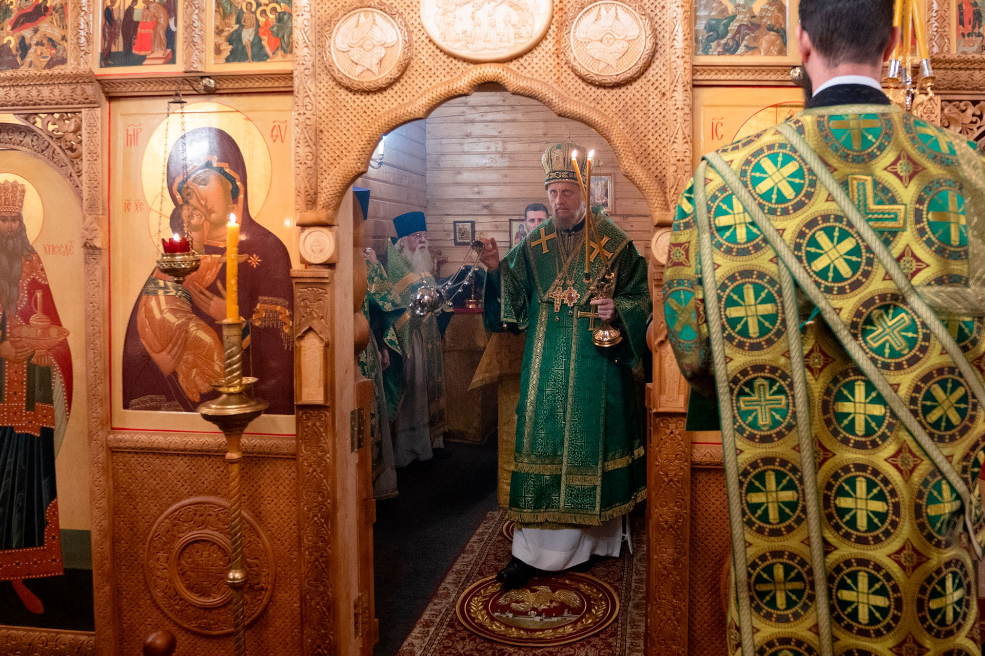 Его Преосвященству сослужили: благочинный Борисоглебского округа протоиерей Сергий Васильев, настоятель храма священник Терентий Стахович, протоиерей Борис Украинцев, священник Владимир Мартышин, священник Валерий Трякин, диакон Алексей Герасимов, диакон Олег Юрков.