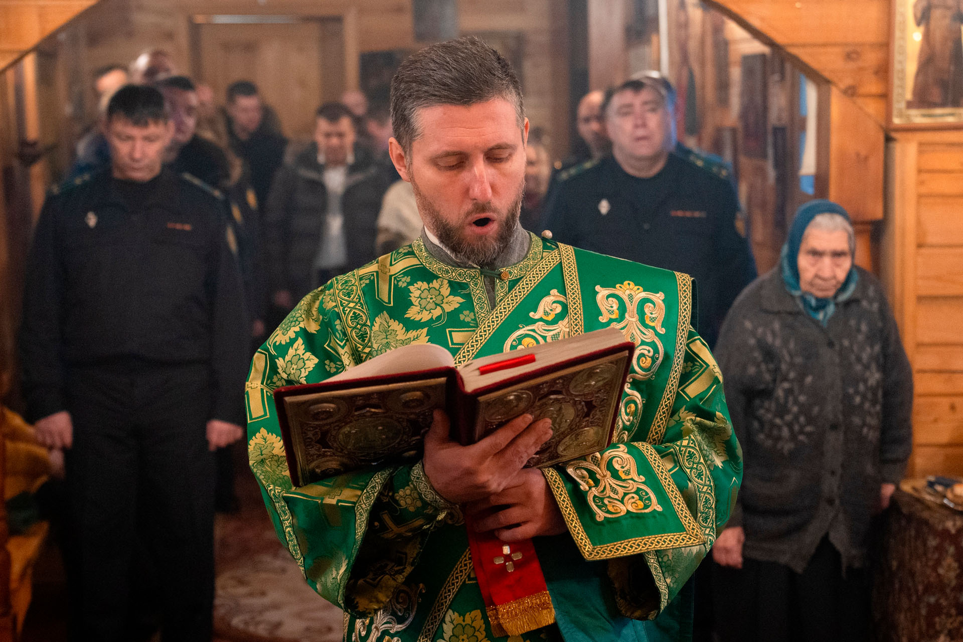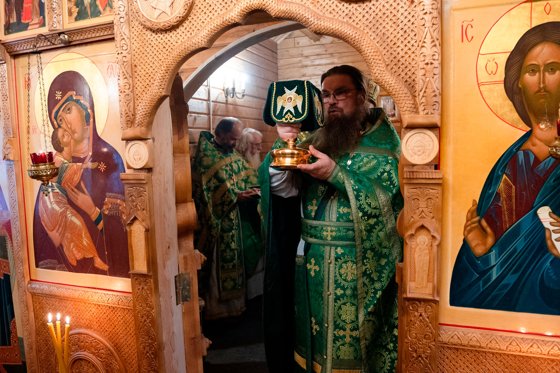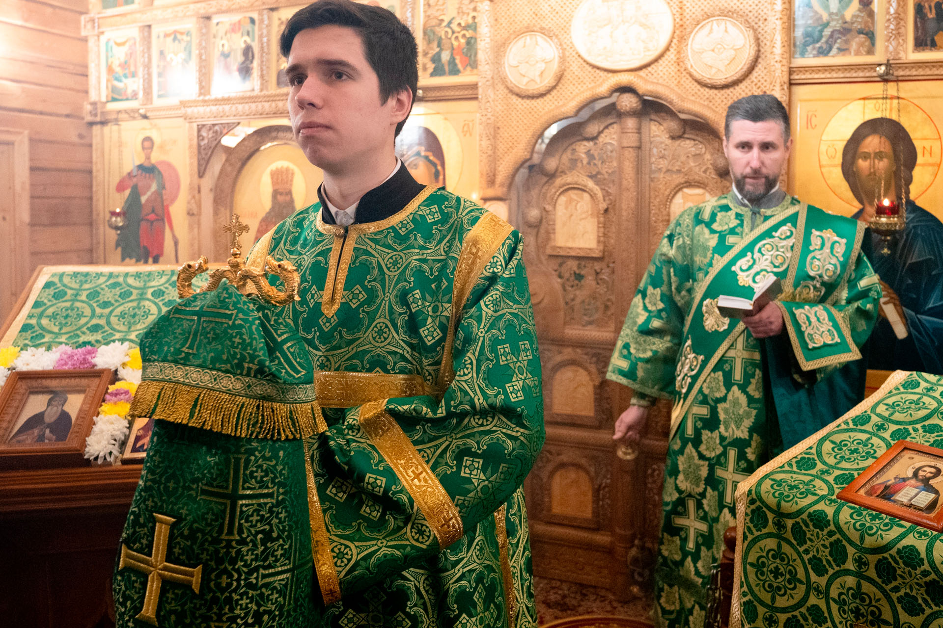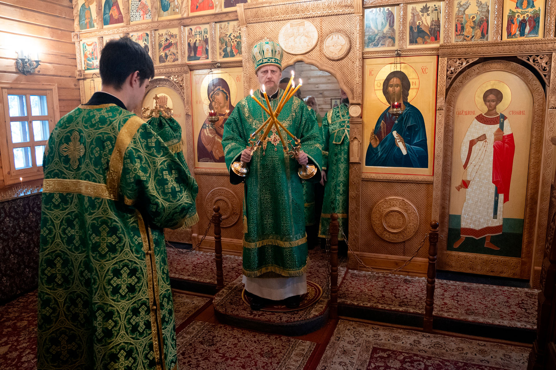 Его Преосвященству сослужили: благочинный Борисоглебского округа протоиерей Сергий Васильев, настоятель храма священник Терентий Стахович, протоиерей Борис Украинцев, священник Владимир Мартышин, священник Валерий Трякин, диакон Алексей Герасимов, диакон Олег Юрков.