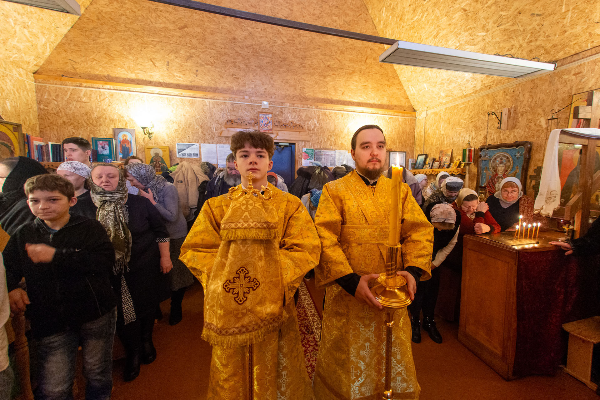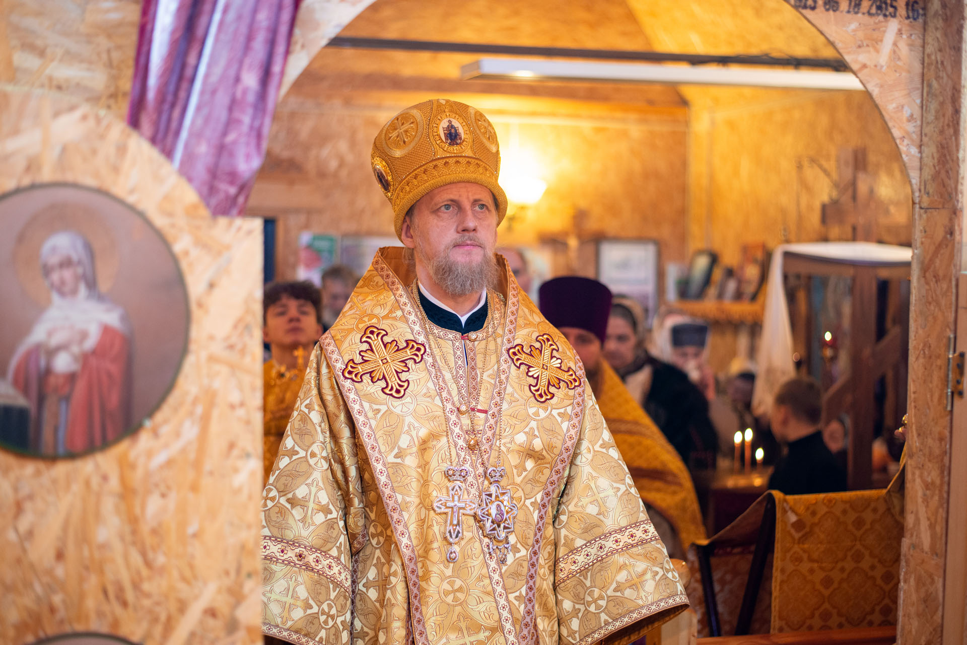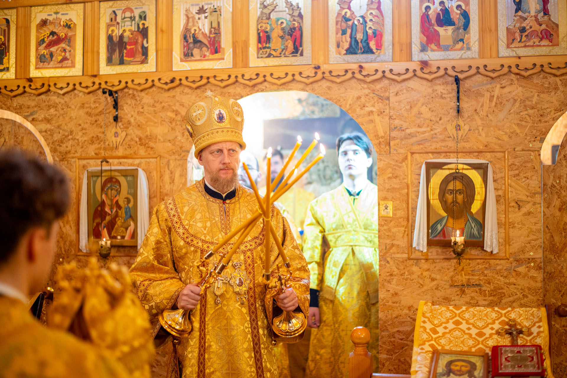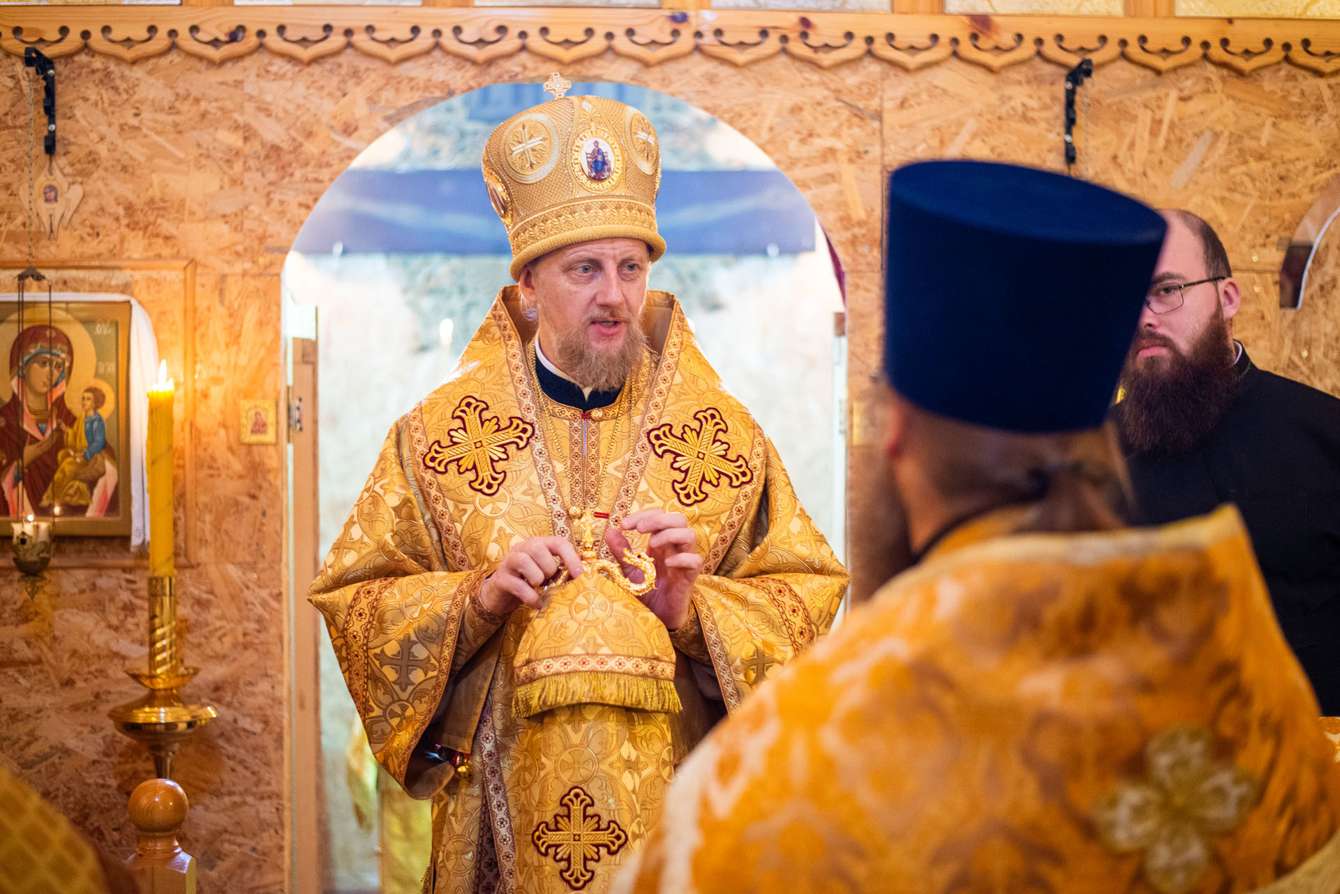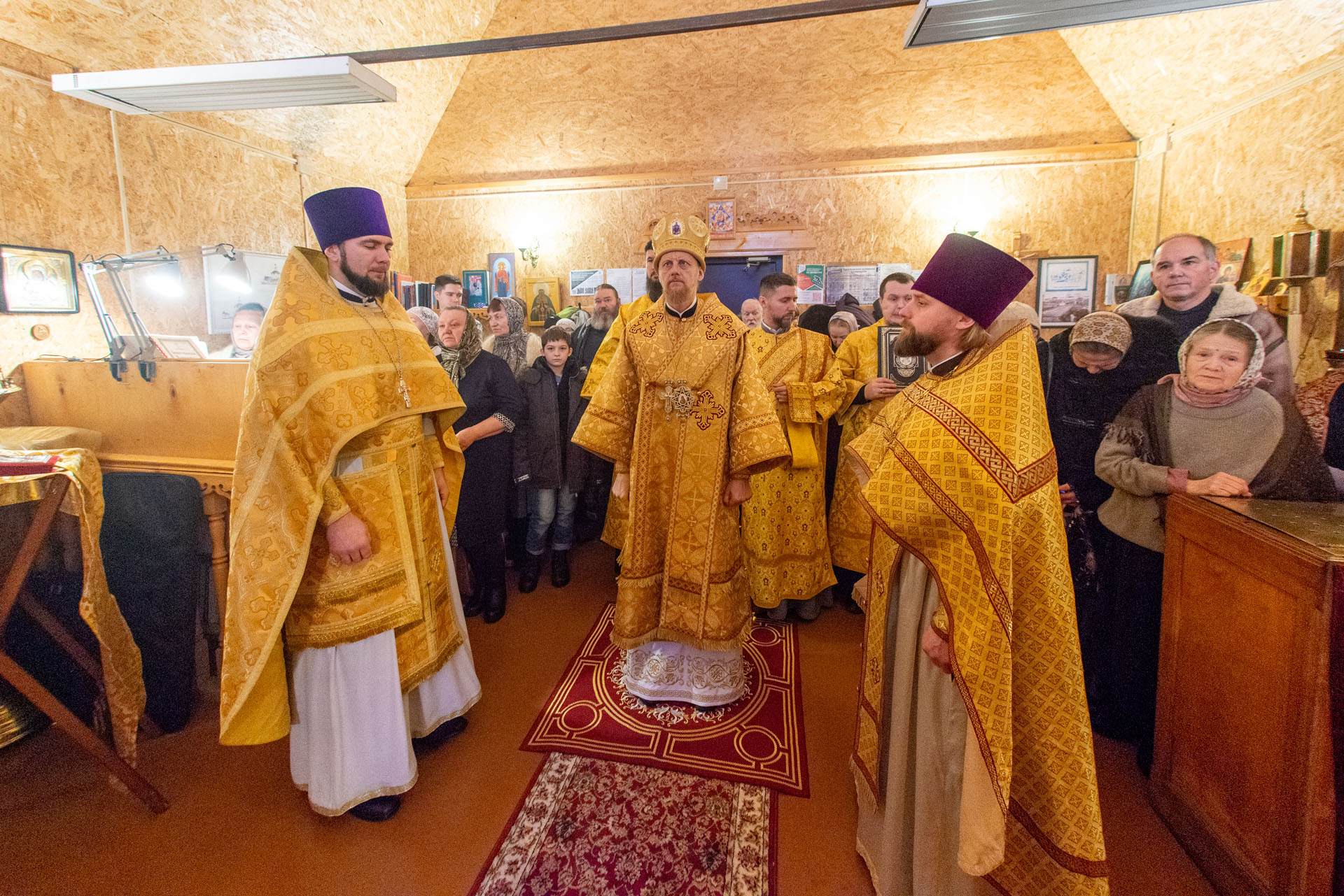 Его преосвященству сослужили: настоятель храма протоиерей Сергий Васильев, священник Димитрий Савин, священник Алексей Ковалёв, иеродиакон Герман (Евсеев), диакон Алексей Герасимов, диакон Олег Юрков.