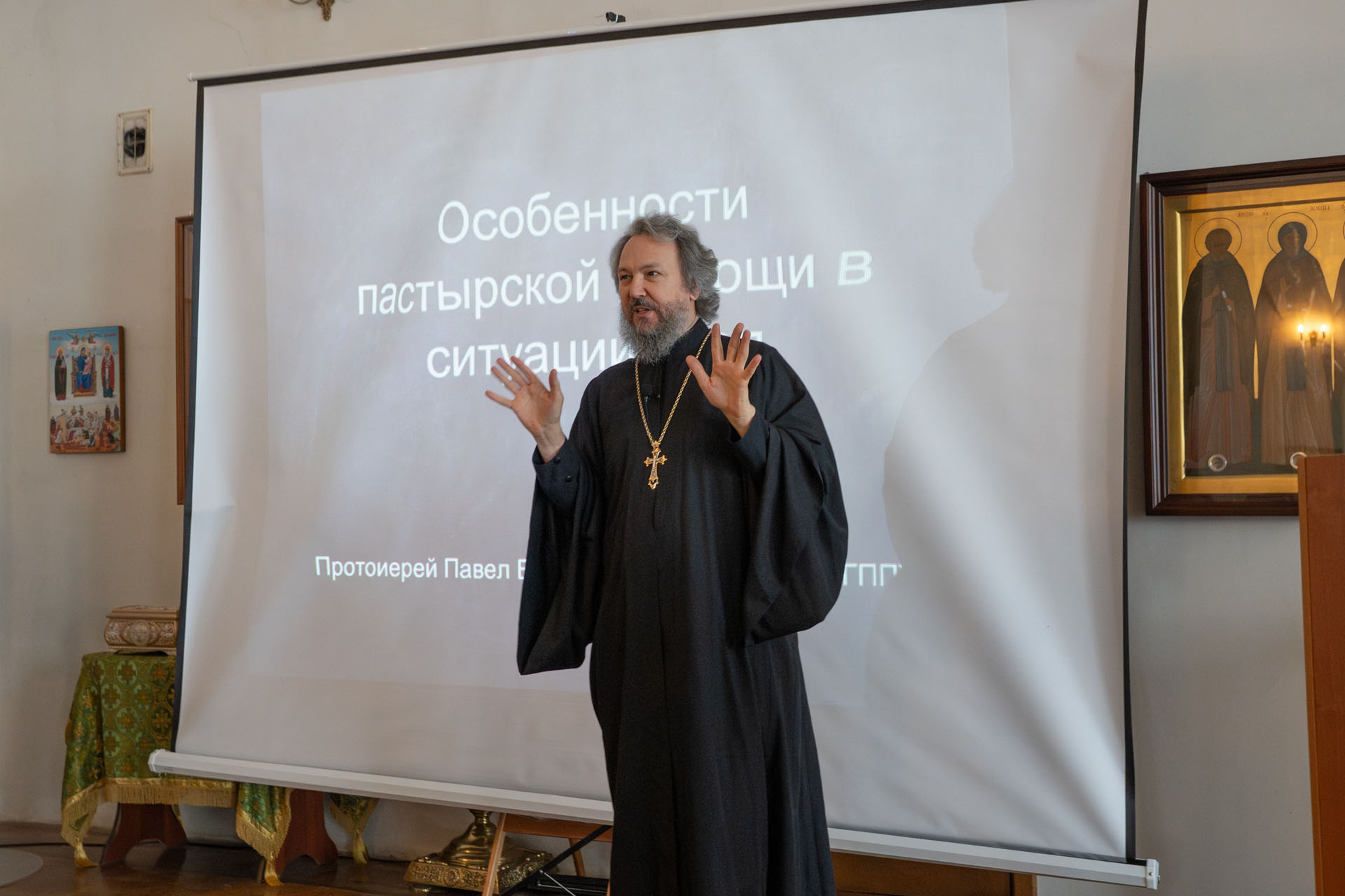 Доцент кафедры богословия Московской духовной академии, кандидат богословия протоиерей Павел Великанов представил доклад «Пастырская помощь в ситуации острого горя».