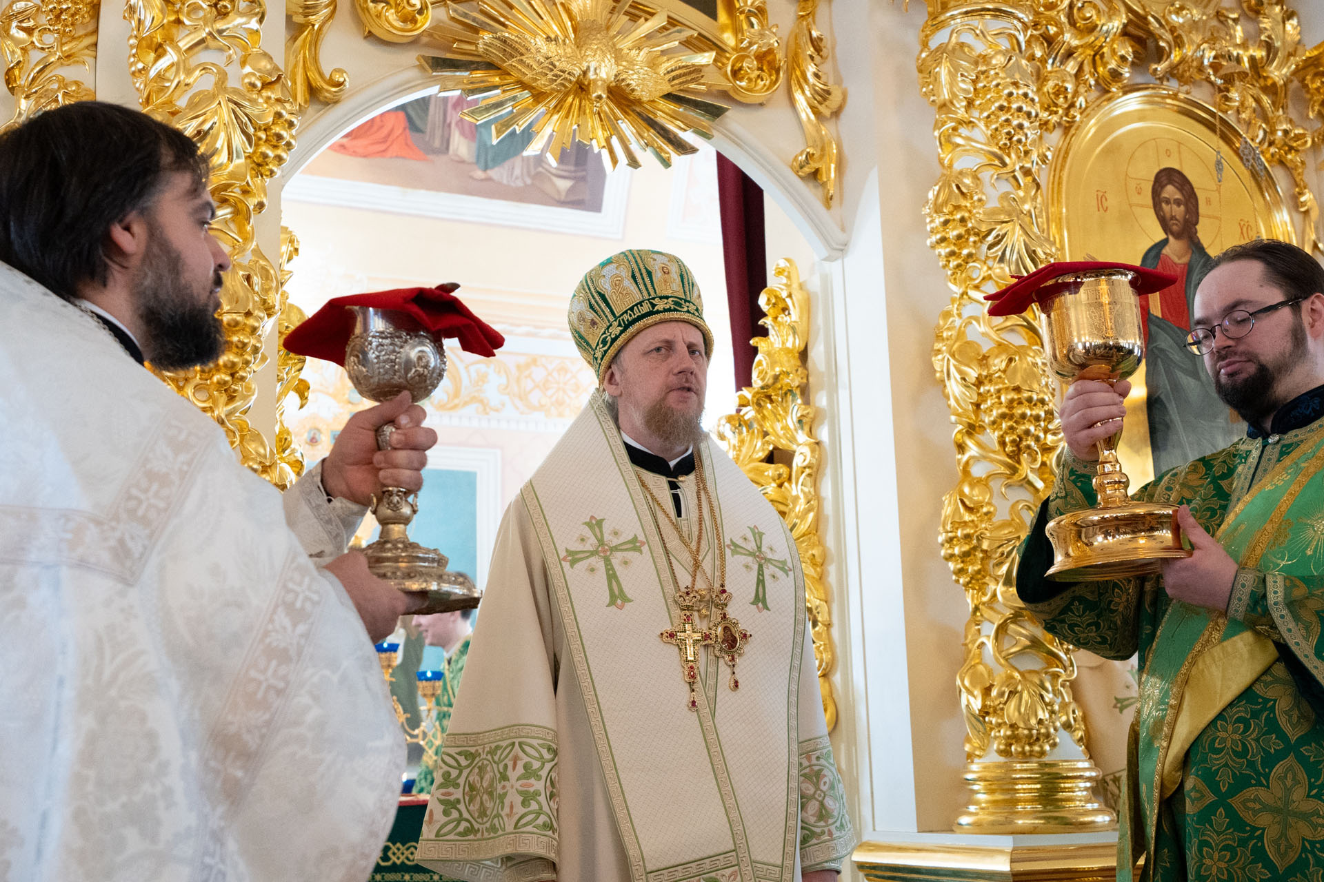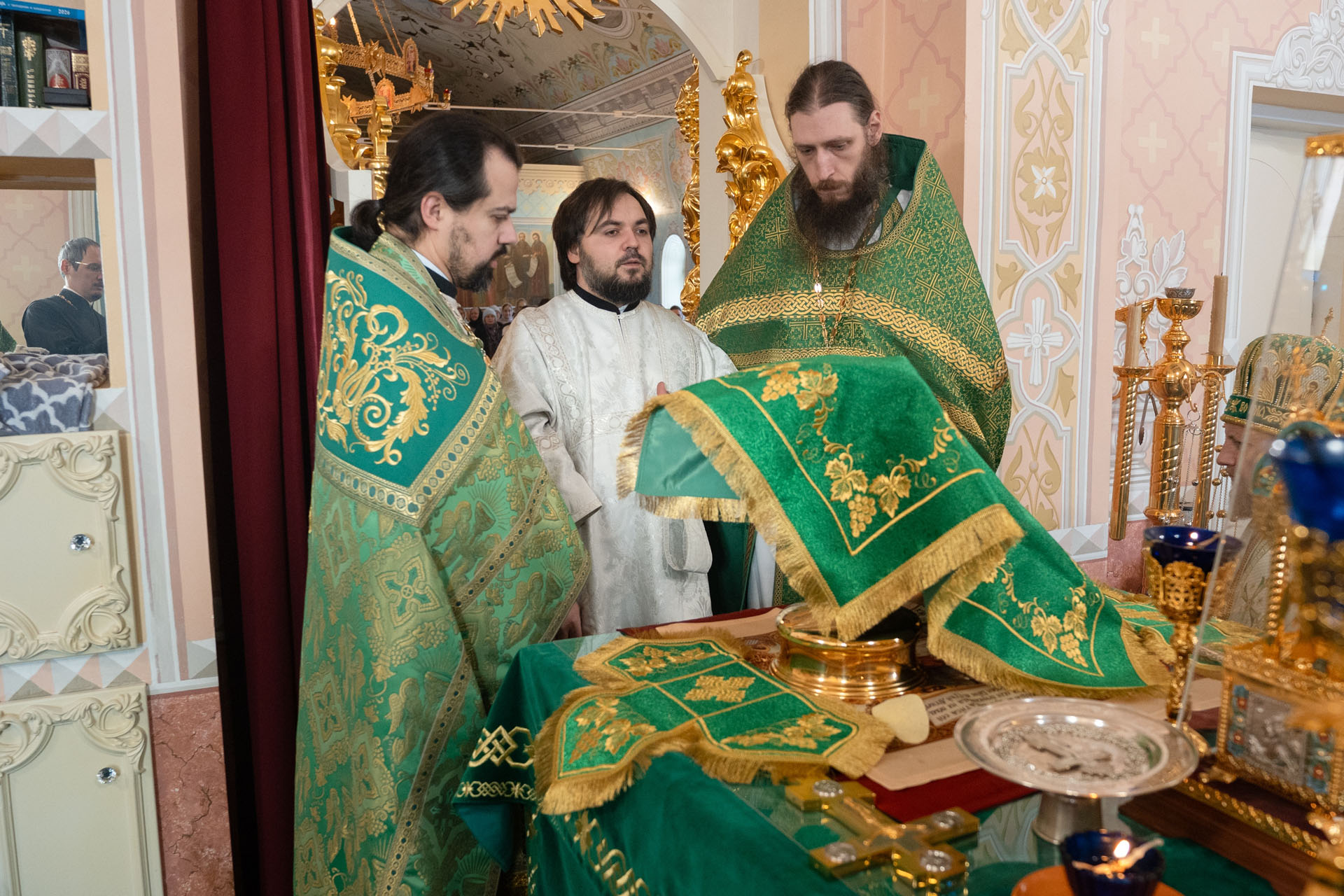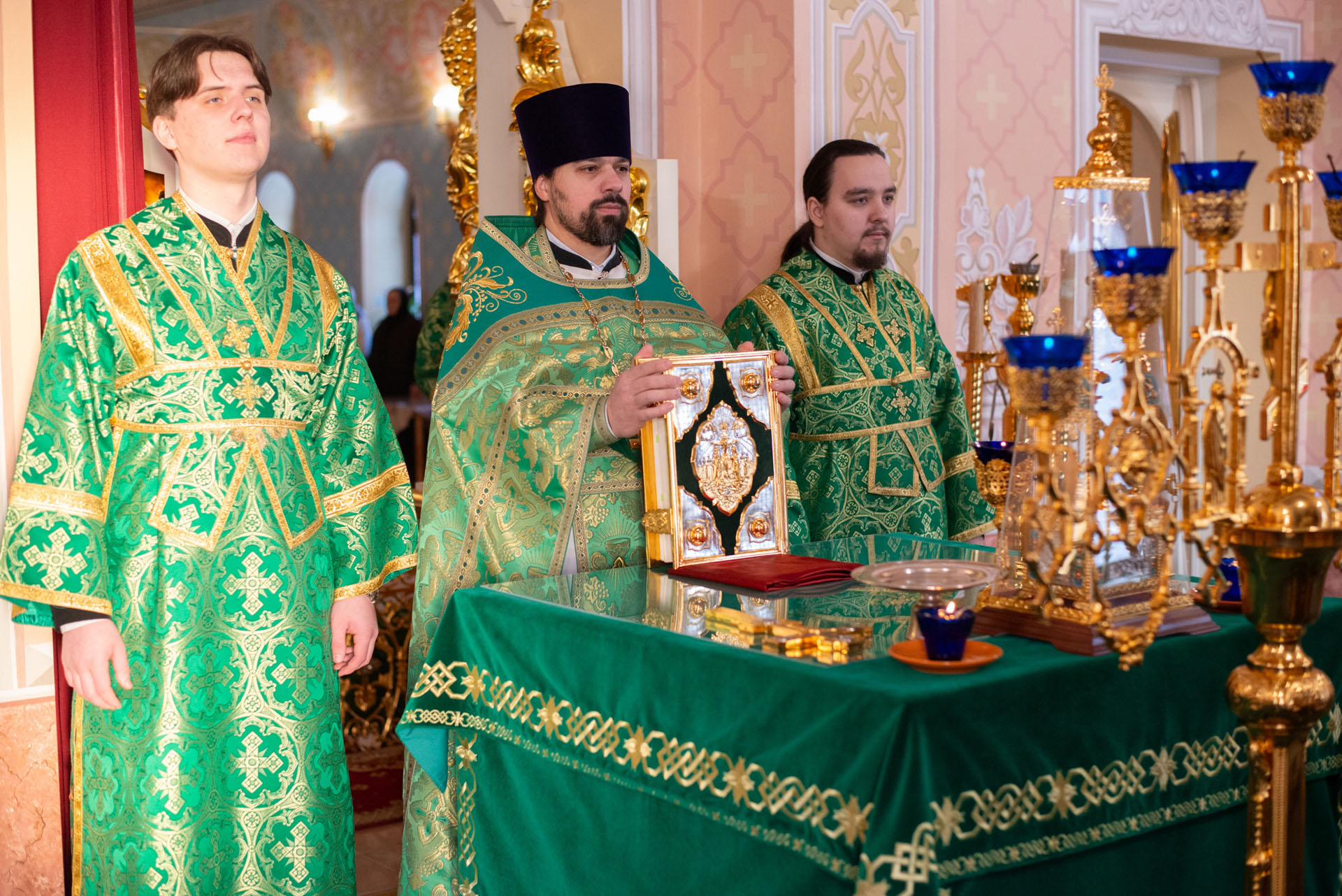 Его Преосвященству сослужили: настоятель храма Преображения Господня с. Нагорье Переславского района священник Илия Лунгу, иеромонах Илия (Видович), священник Андрей Скобиола, священник Павел Гайдаров, священник Алексей Козлов, диакон Владимир Принёв, диакон Алексей Герасимов, протодиакон Небойши Анджич, диакон Олег Юрков, диакон Василий Попа.