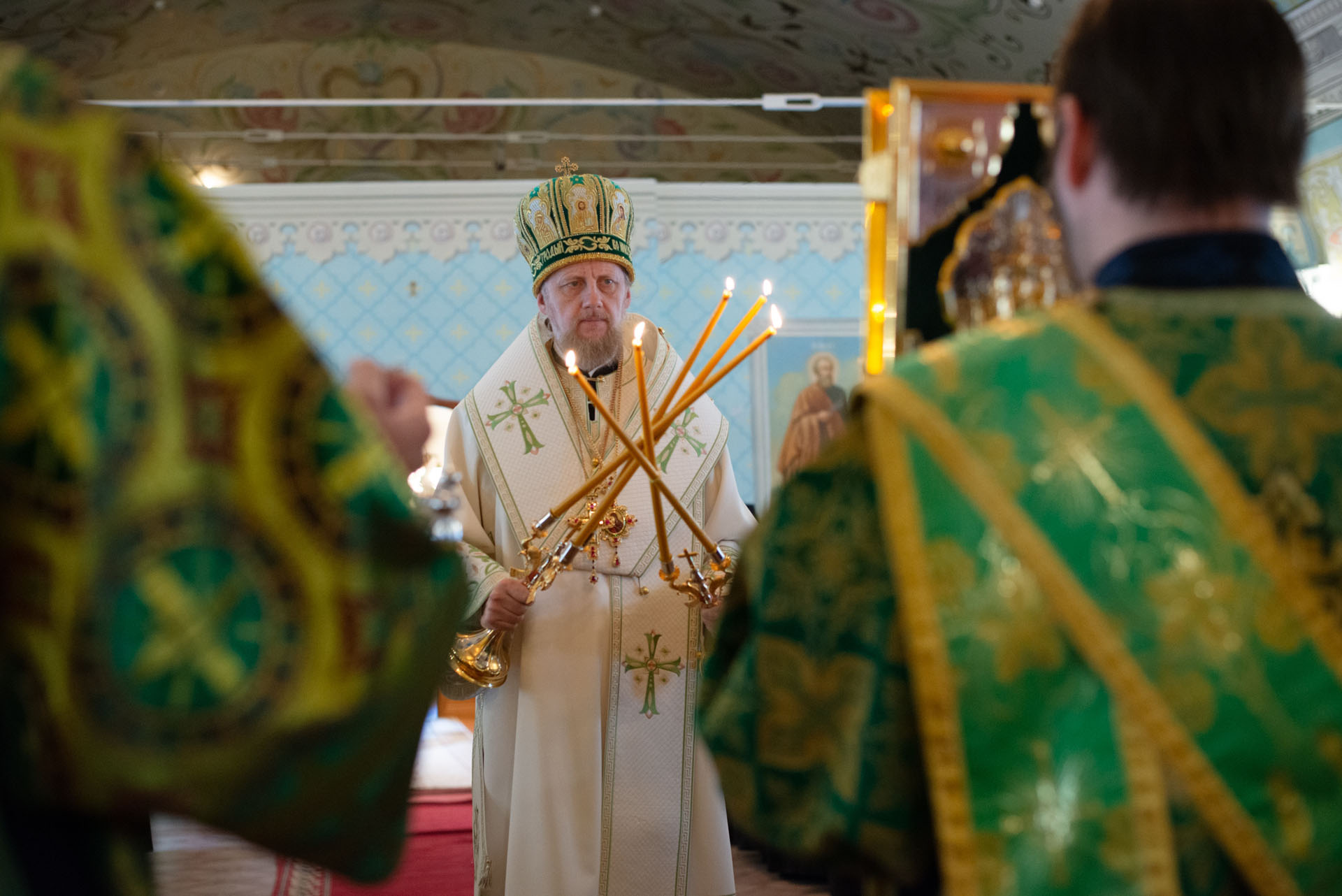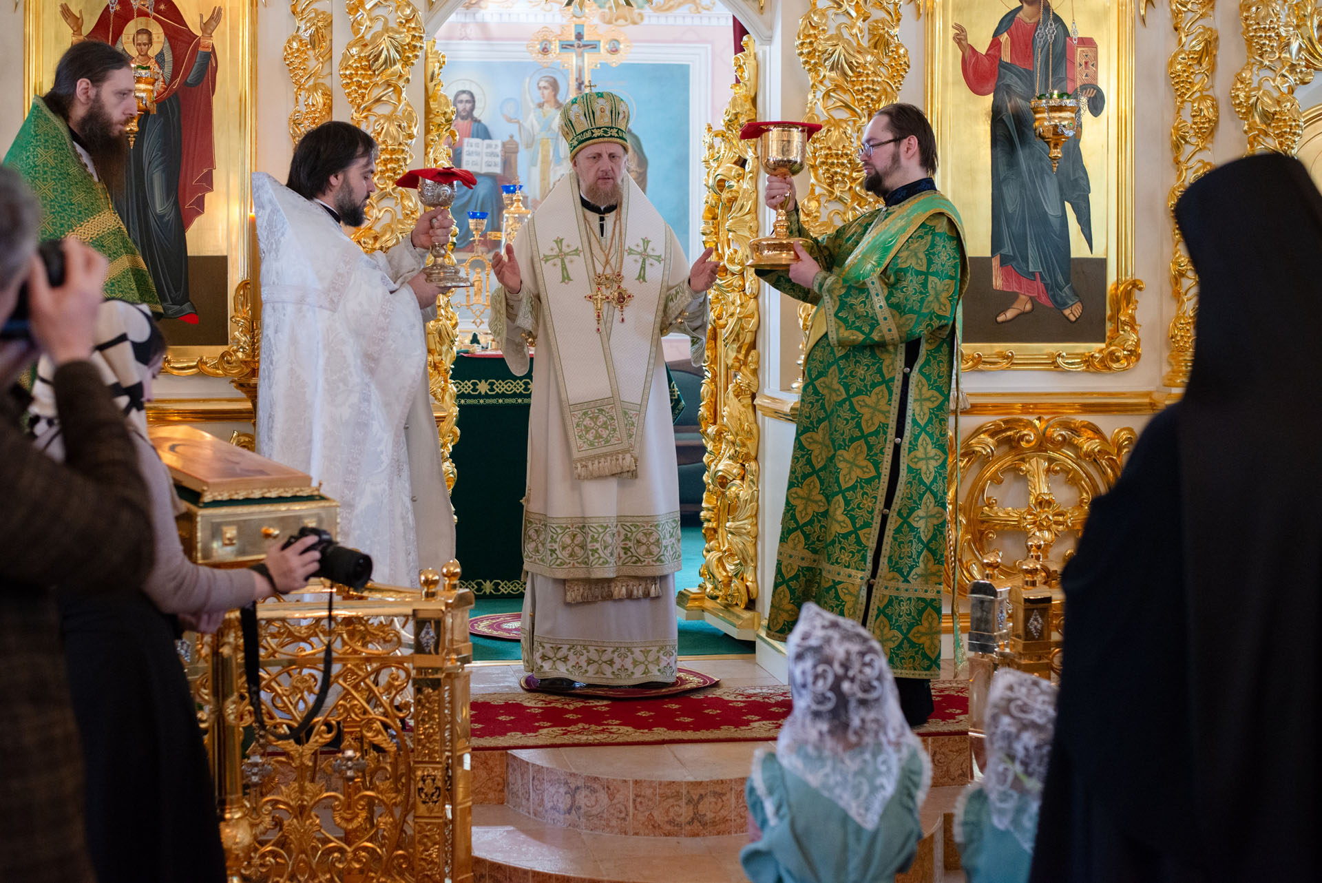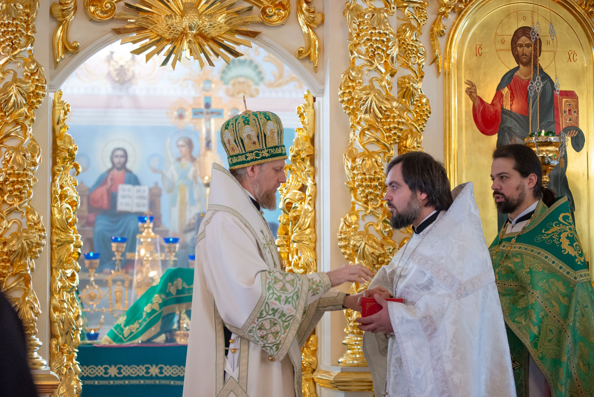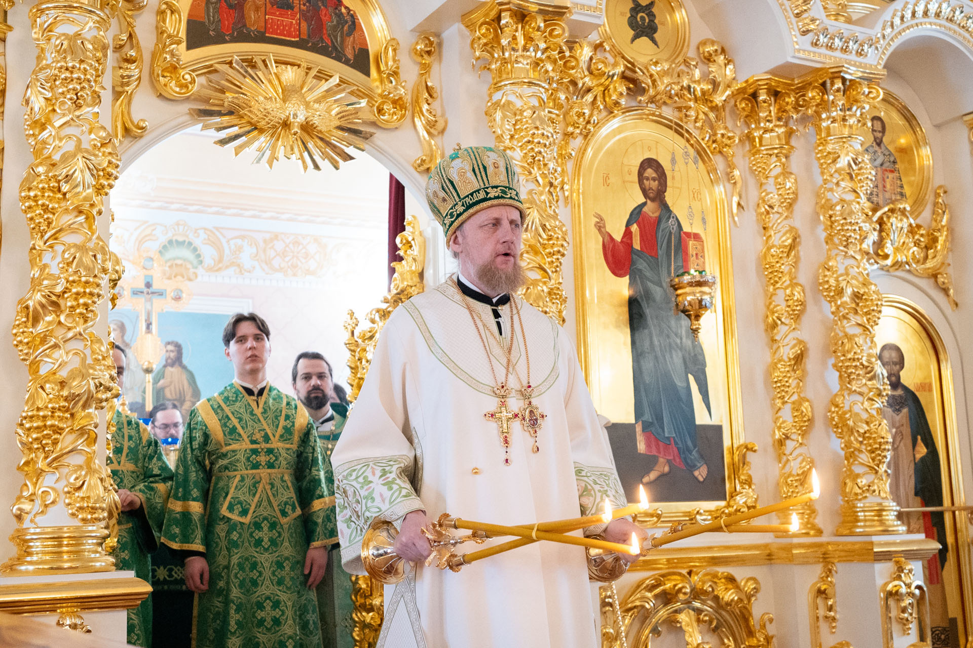 Его Преосвященству сослужили: настоятель храма Преображения Господня с. Нагорье Переславского района священник Илия Лунгу, иеромонах Илия (Видович), священник Андрей Скобиола, священник Павел Гайдаров, священник Алексей Козлов, диакон Владимир Принёв, диакон Алексей Герасимов, протодиакон Небойши Анджич, диакон Олег Юрков, диакон Василий Попа.