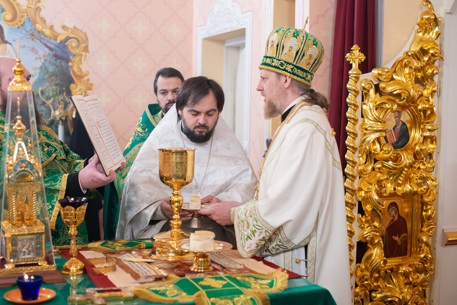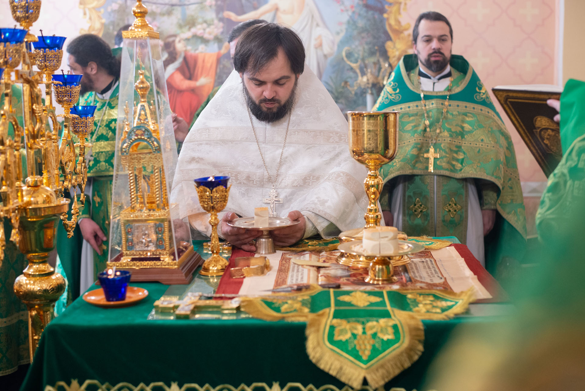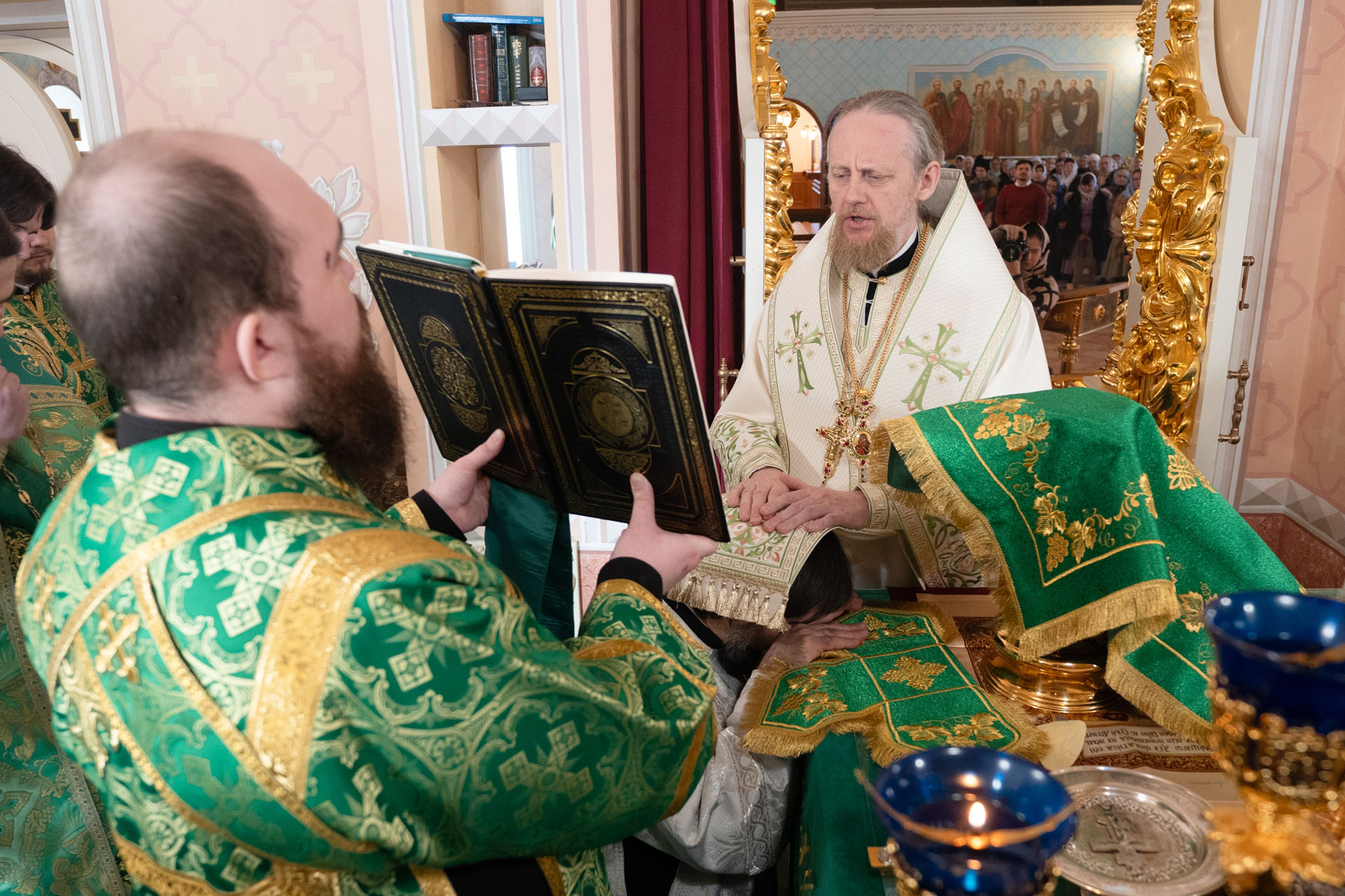 После перенесения Святых Даров была совершена священническая хиротония диакона Василия Попы.