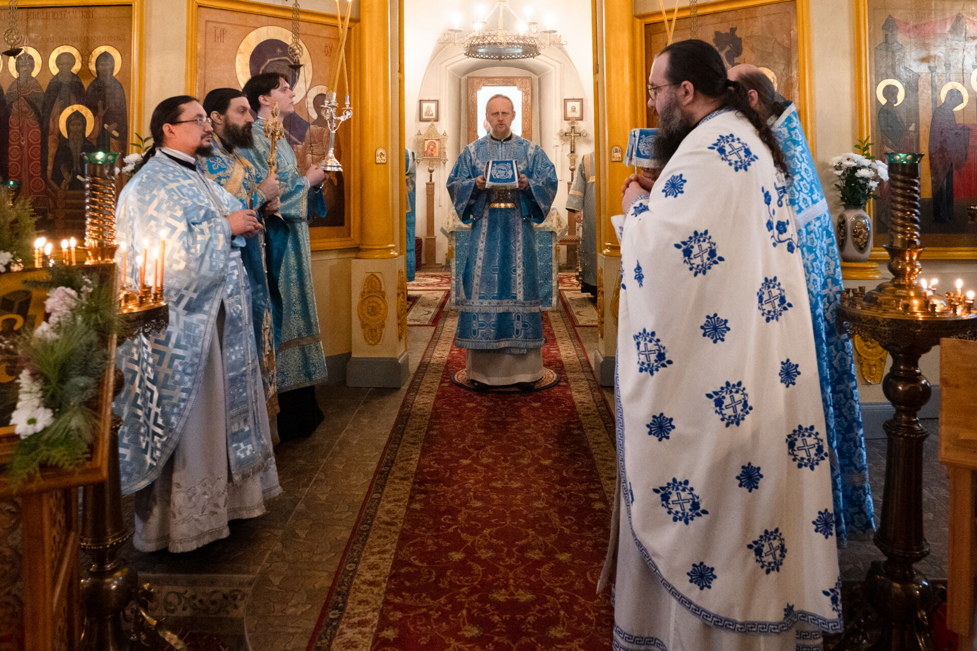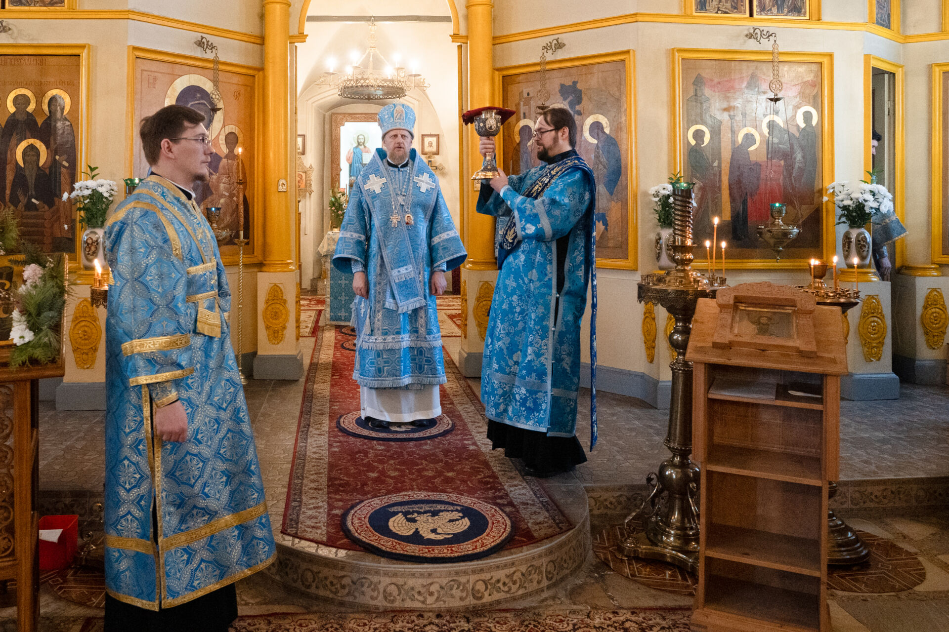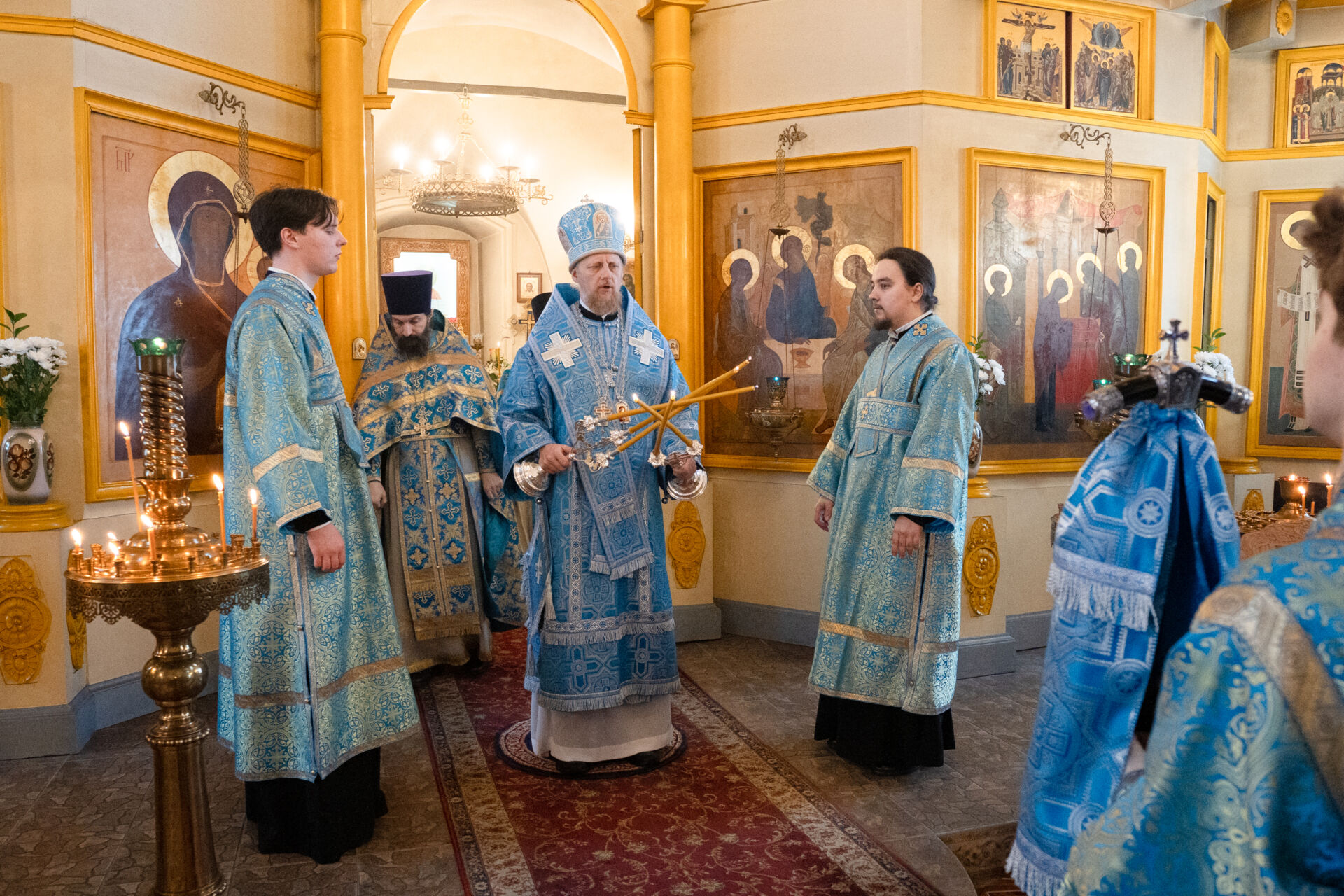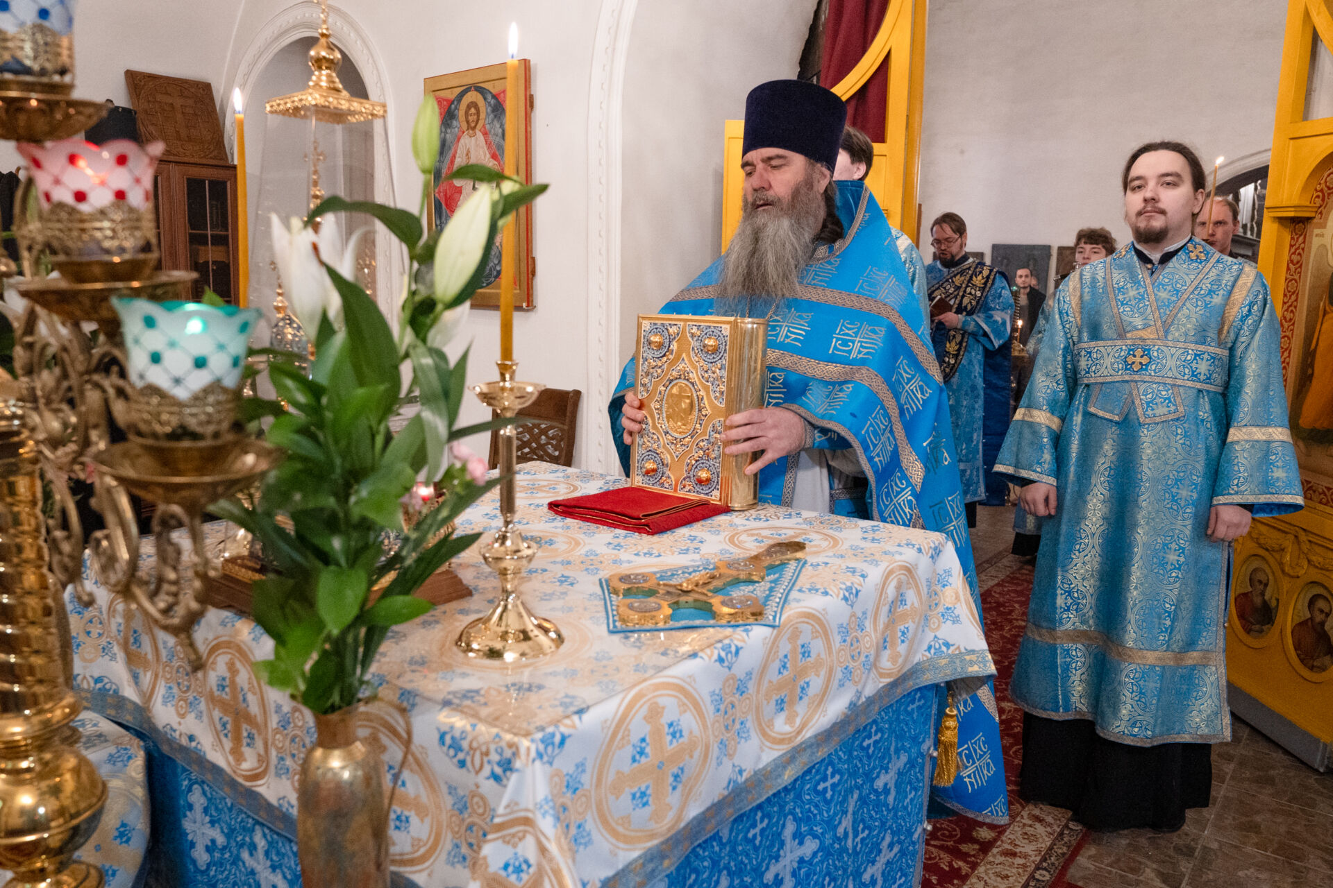 Его Преосвященству сослужили: настоятель храма протоиерей Андрей Уфимцев, иеромонах Илия (Кропанов), протоиерей Алексей Морозов, священник Виталий Сышев, иеромонах Тихон (Батурин), диакон Владимир Принёв, диакон Алексей Герасимов, диакон Даниил Булычев, диакон Димитрий Ухоботов.