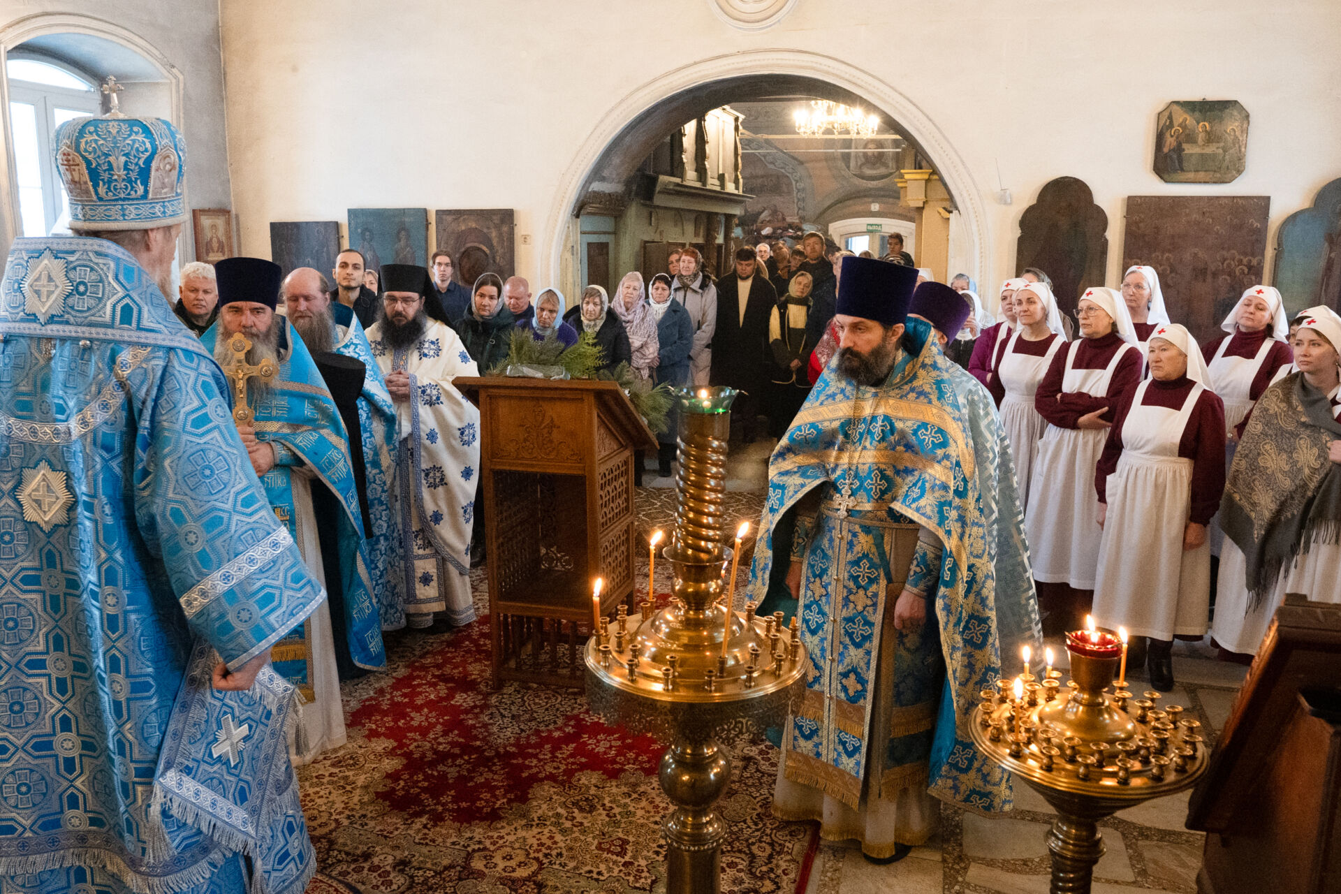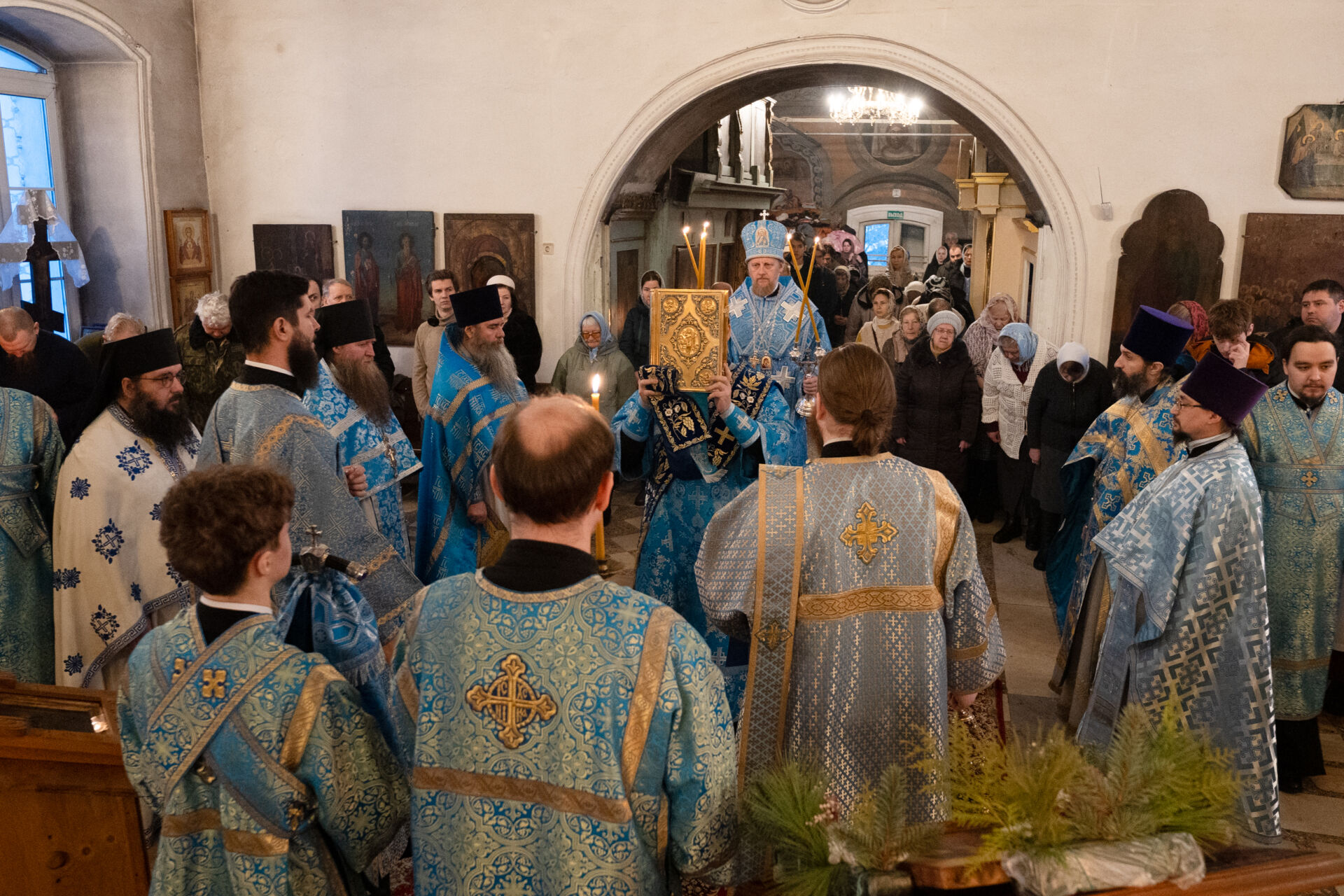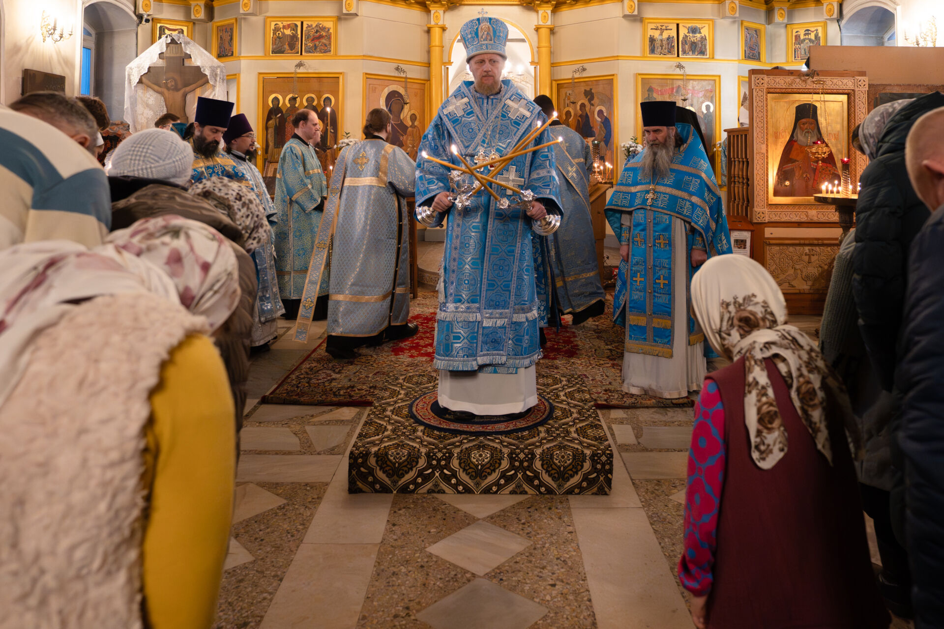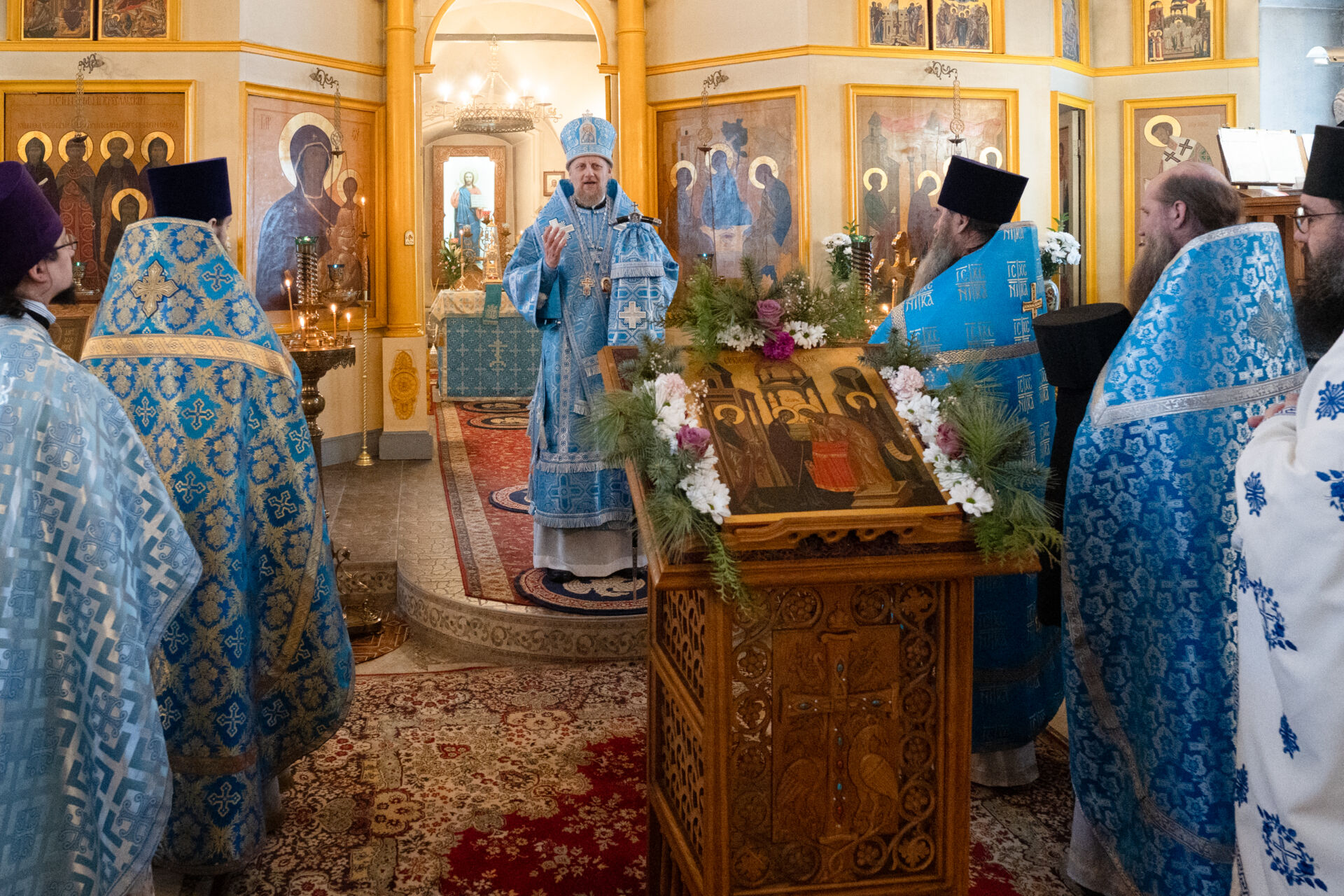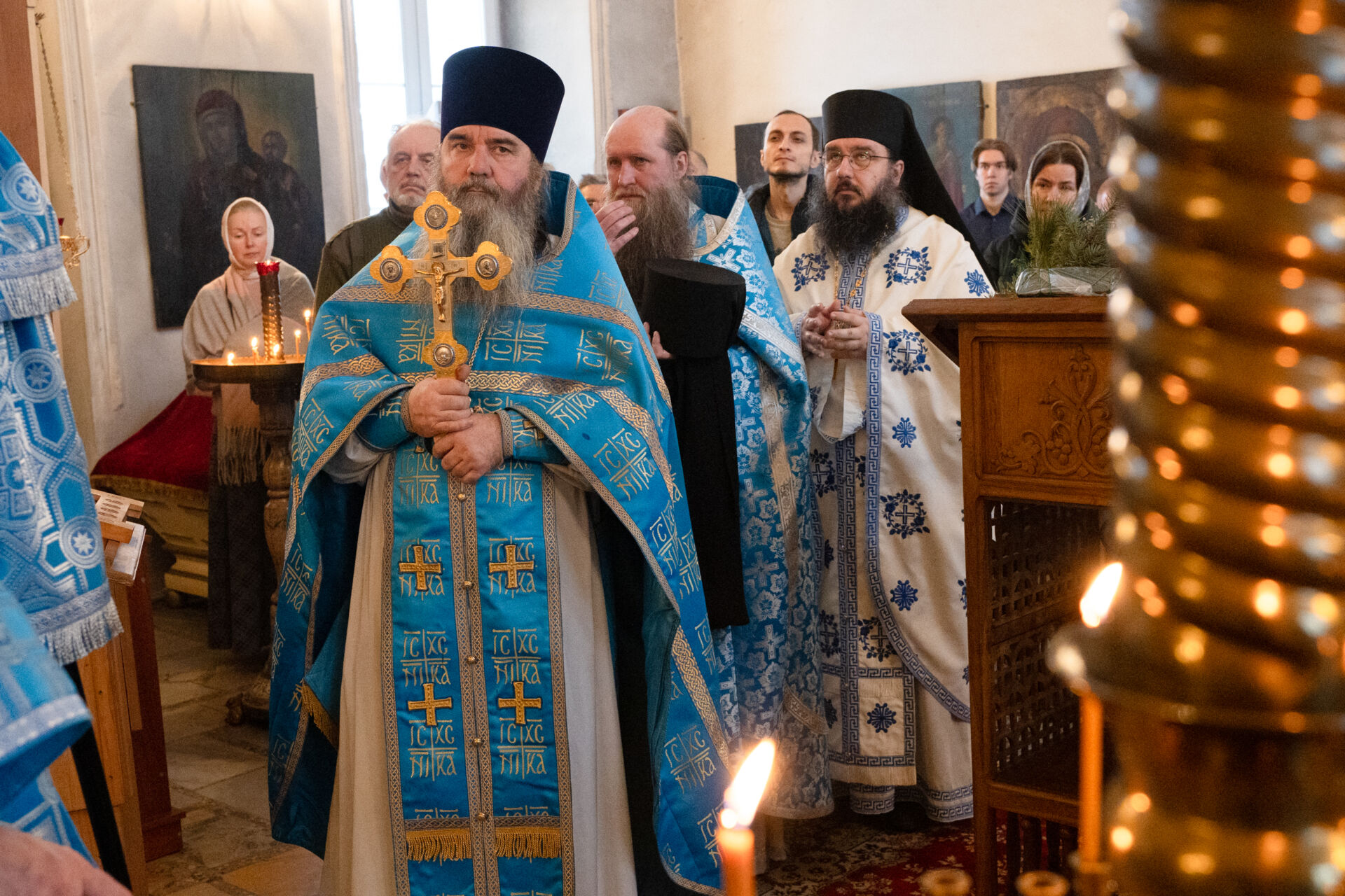 Его Преосвященству сослужили: настоятель храма протоиерей Андрей Уфимцев, иеромонах Илия (Кропанов), протоиерей Алексей Морозов, священник Виталий Сышев, иеромонах Тихон (Батурин), диакон Владимир Принёв, диакон Алексей Герасимов, диакон Даниил Булычев, диакон Димитрий Ухоботов.
