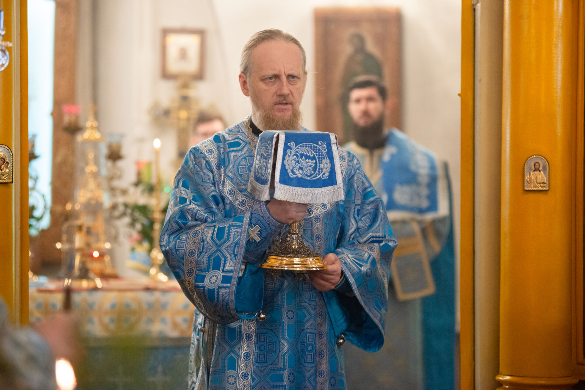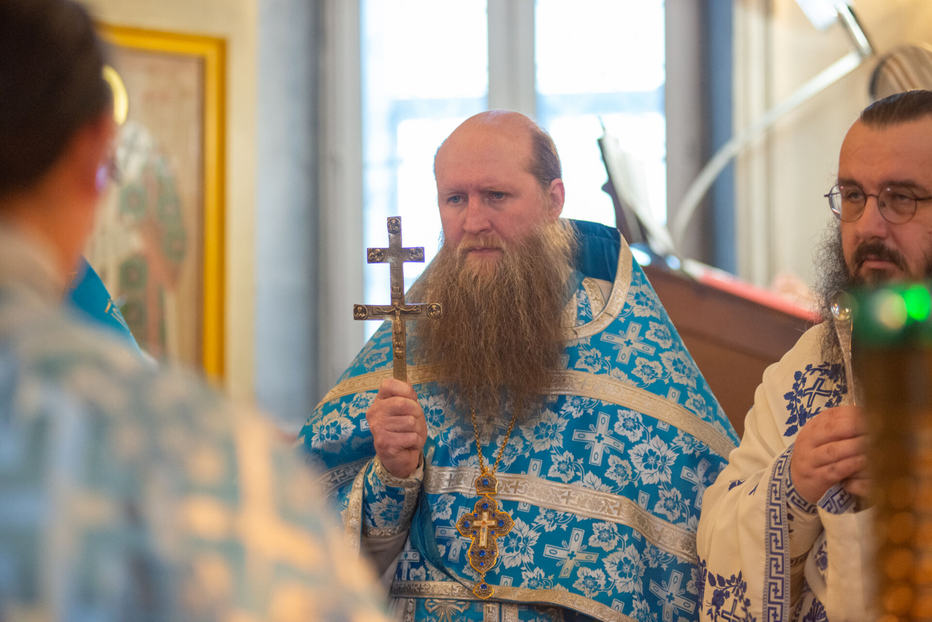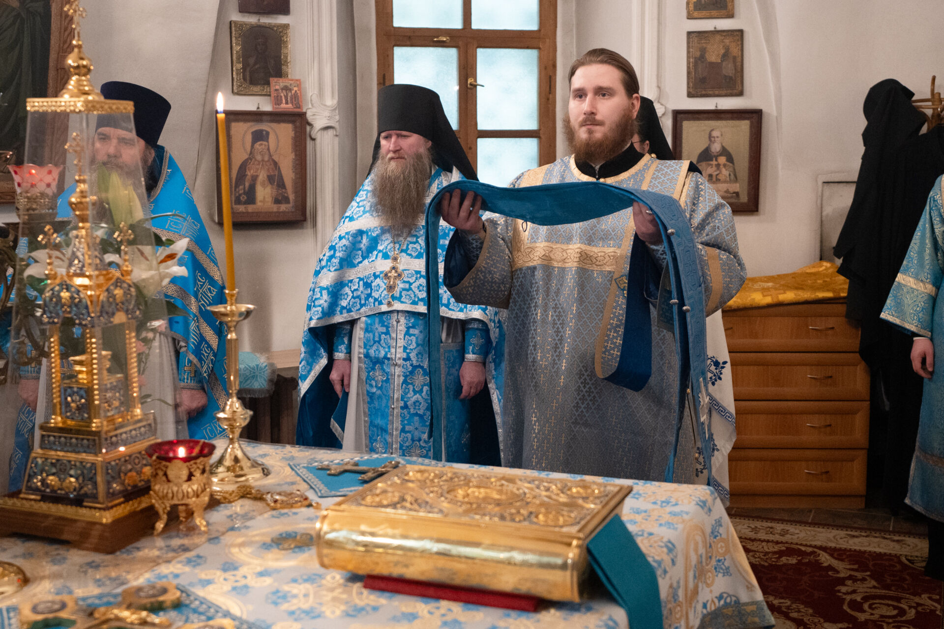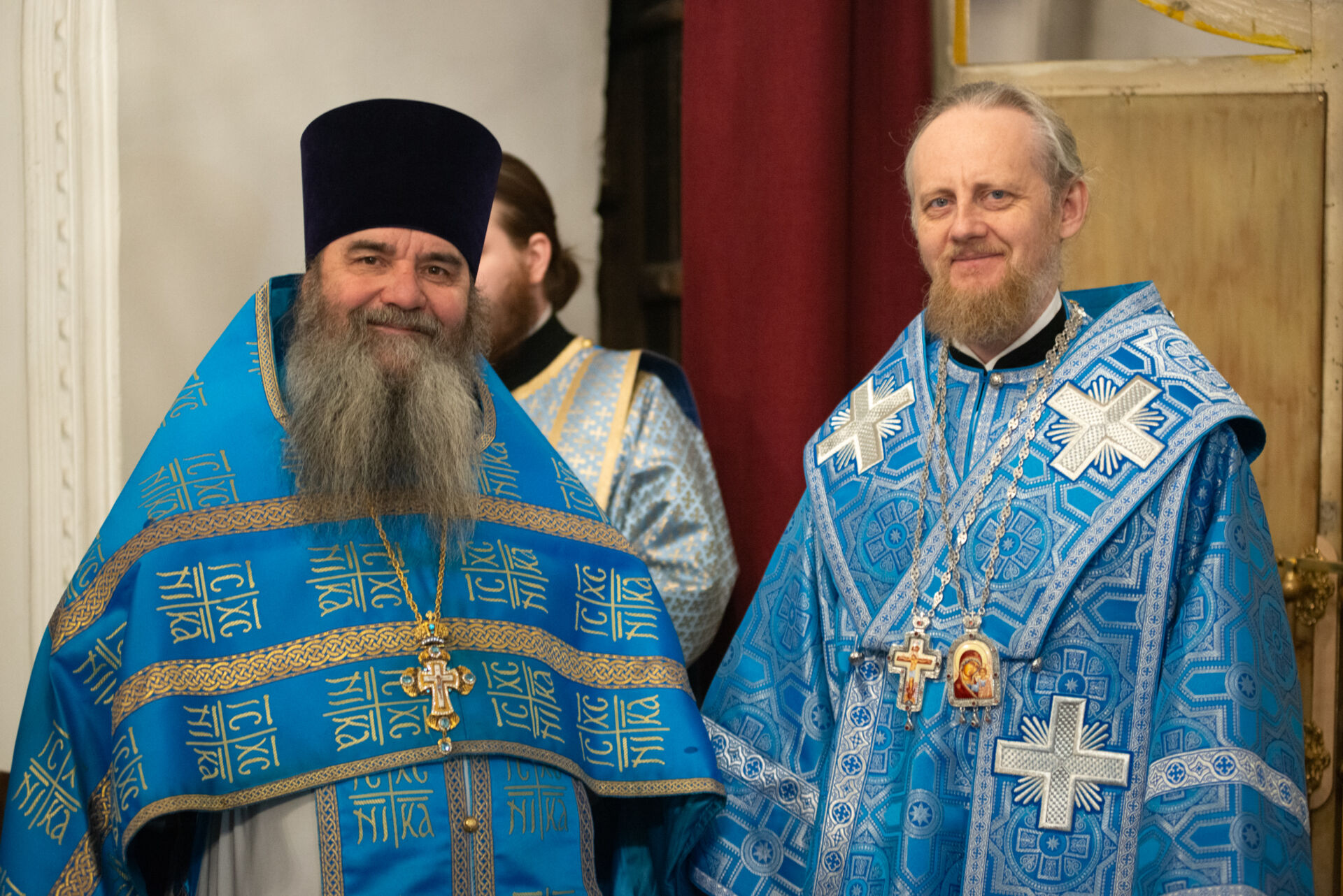 Его Преосвященству сослужили: настоятель храма протоиерей Андрей Уфимцев, иеромонах Илия (Кропанов), протоиерей Алексей Морозов, священник Виталий Сышев, иеромонах Тихон (Батурин), диакон Владимир Принёв, диакон Алексей Герасимов, диакон Даниил Булычев, диакон Димитрий Ухоботов.