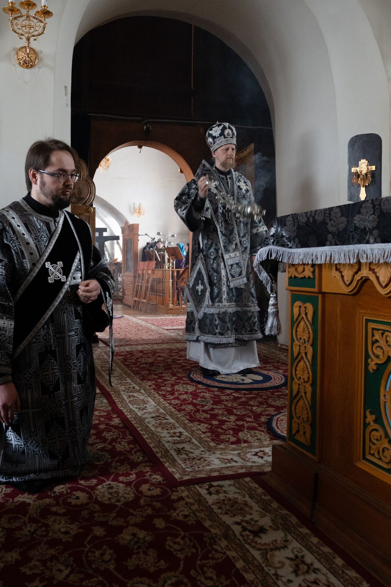25 февраля 2026 года, в среду 1-й седмицы Великого поста, епископ Переславский и Угличский Феоктист совершил Литургию Преждеосвященных Даров во Владимирском кафедральном соборе.
