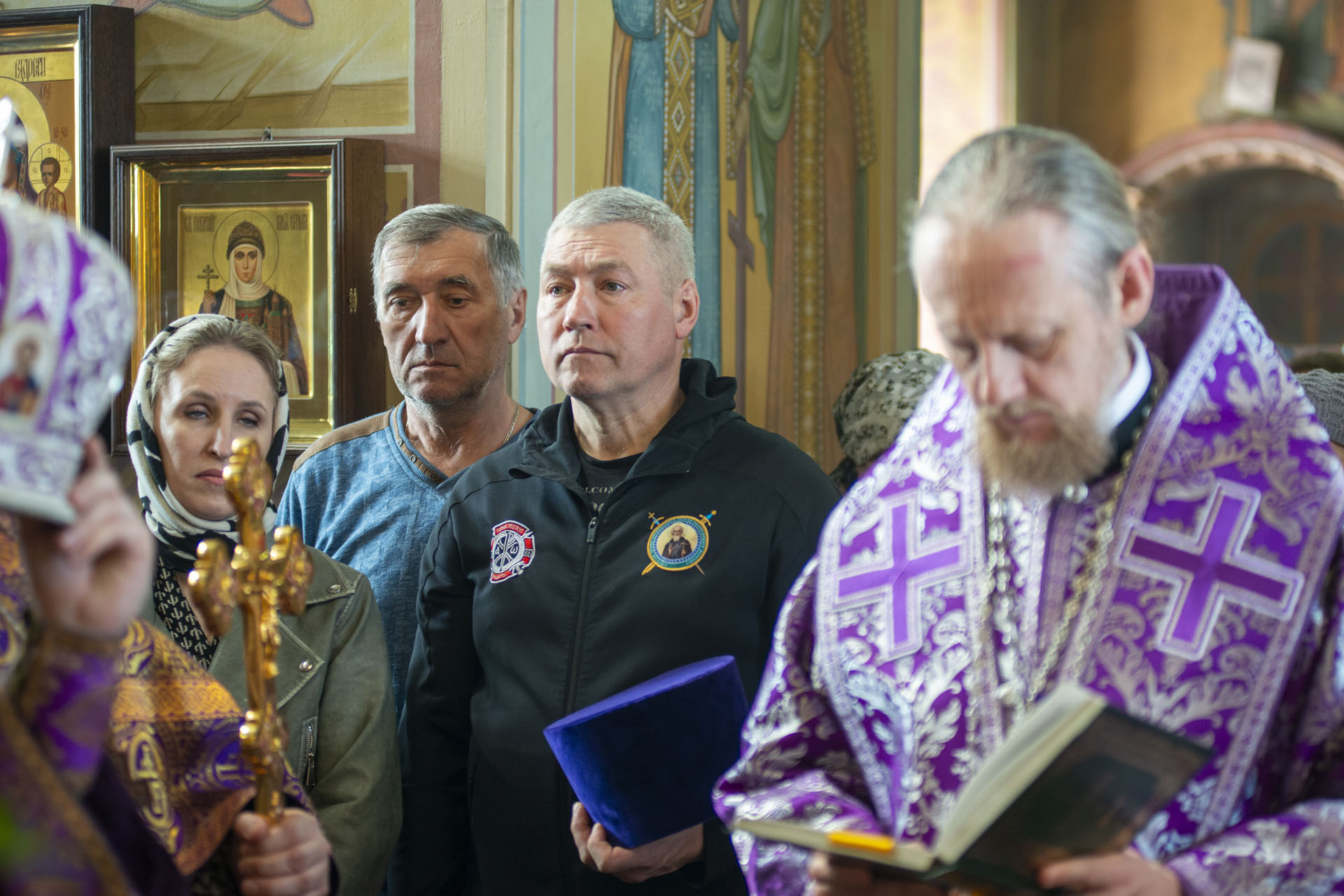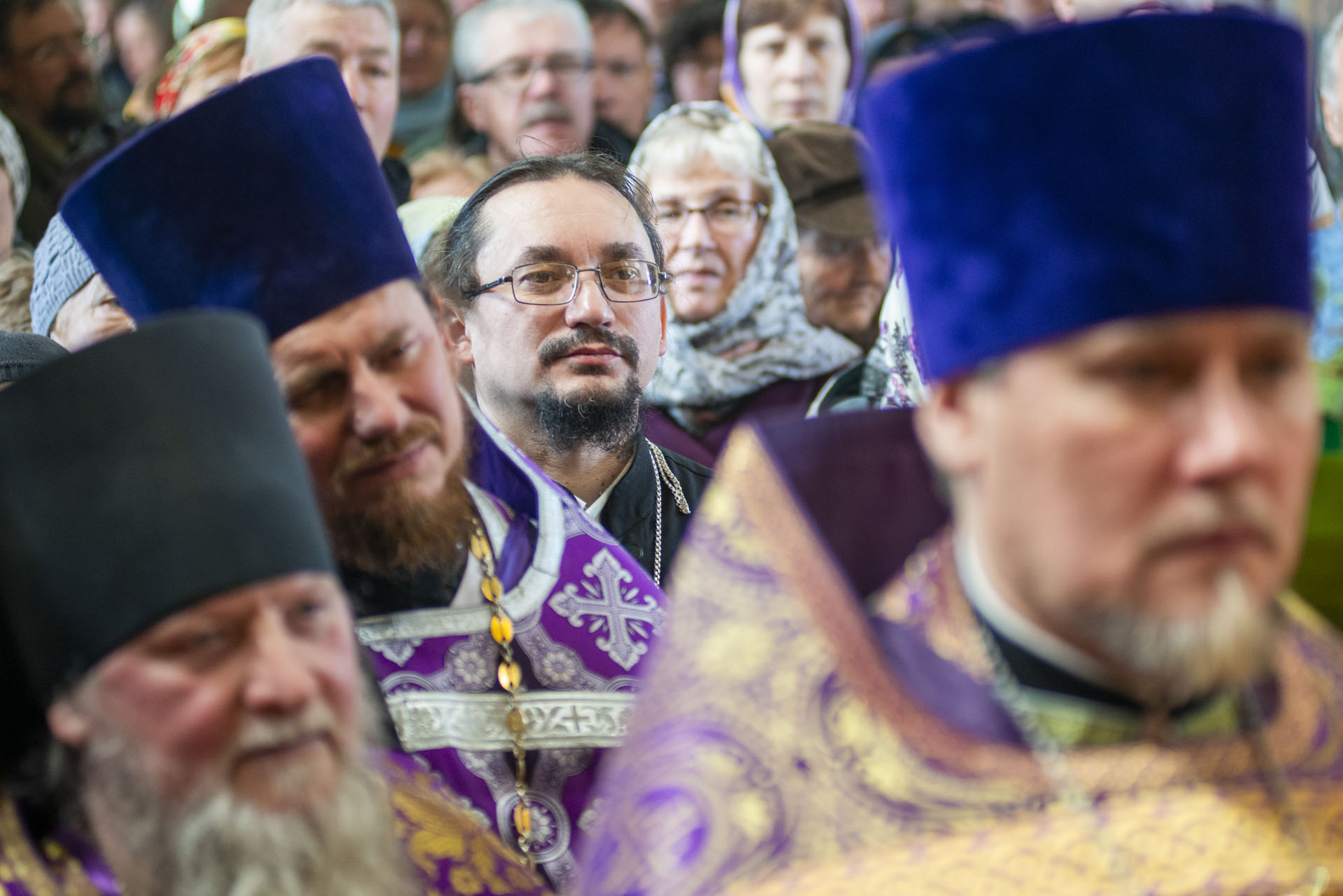 Его Преосвященству сослужили: настоятель храма протоиерей Иоанн Герасимов, протоиерей Владимир Пивоваров, руководитель Отдела по работе с молодёжью Череповецкой епархии священник Роман Зайцев, иеромонах Герасим (Ренев), протоиерей Сергий Ляхович, священник Василий Молоток, священник Димитрий Беседин, иеродиакон Герман (Евсеев), диакон Владимир Принёв, диакон Алексей Герасимов, диакон Димитрий Груздев, диакон Димитрий Ухоботов.