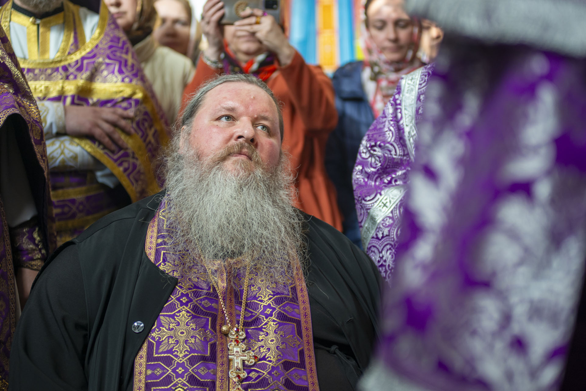 На малом входе указом Святейшего Патриарха Кирилла к празднику Святой Пасхи 2026 года протоиерей Иоанн Герасимов, настоятель храма Сорока Севастийских мучеников, был удостоен права служения Литургии с отверстыми Царскими вратами по «Иже Херувимы».