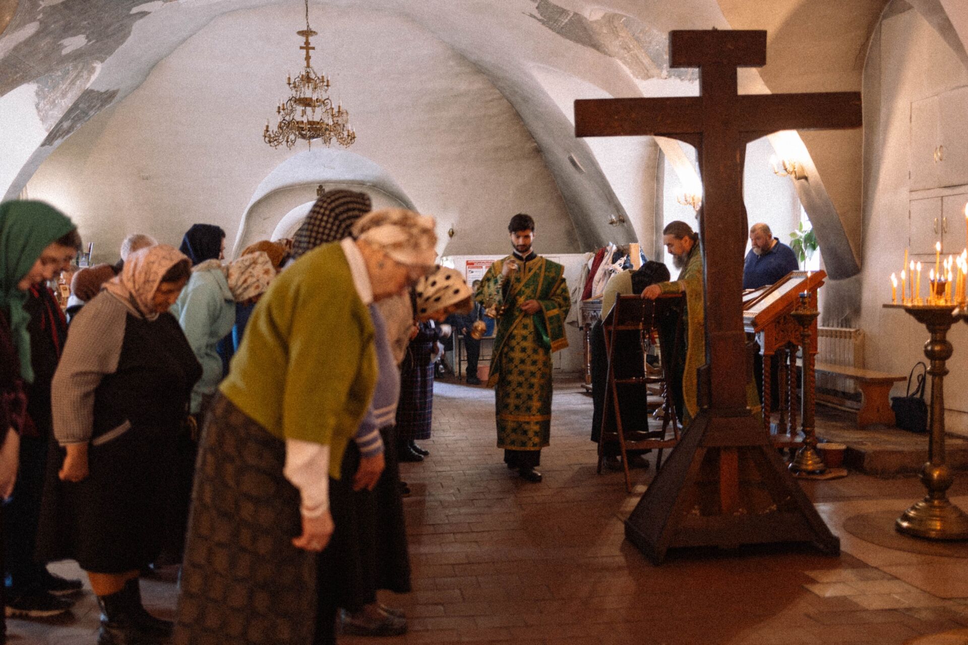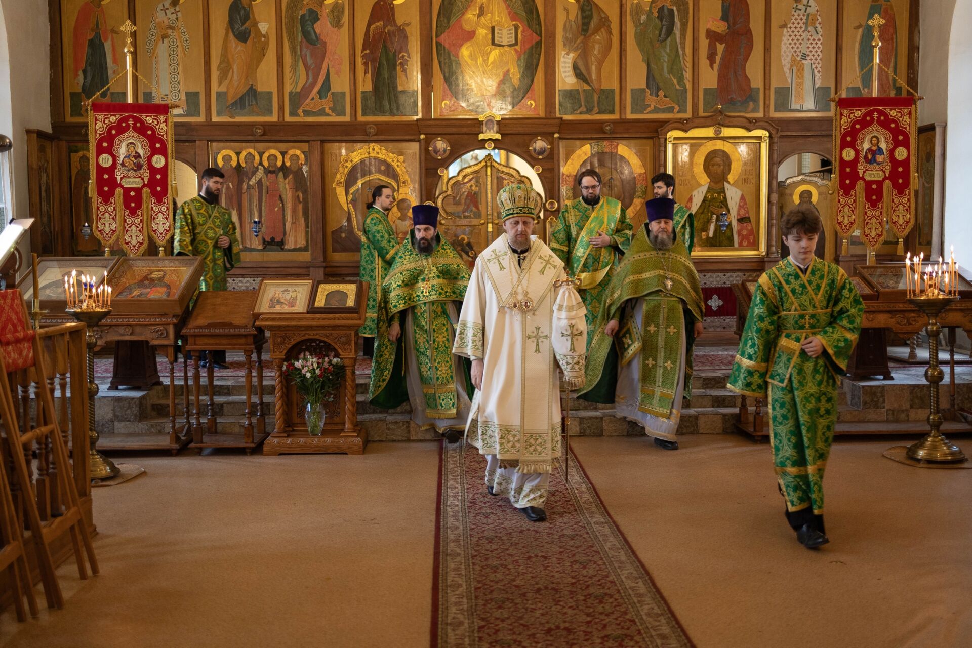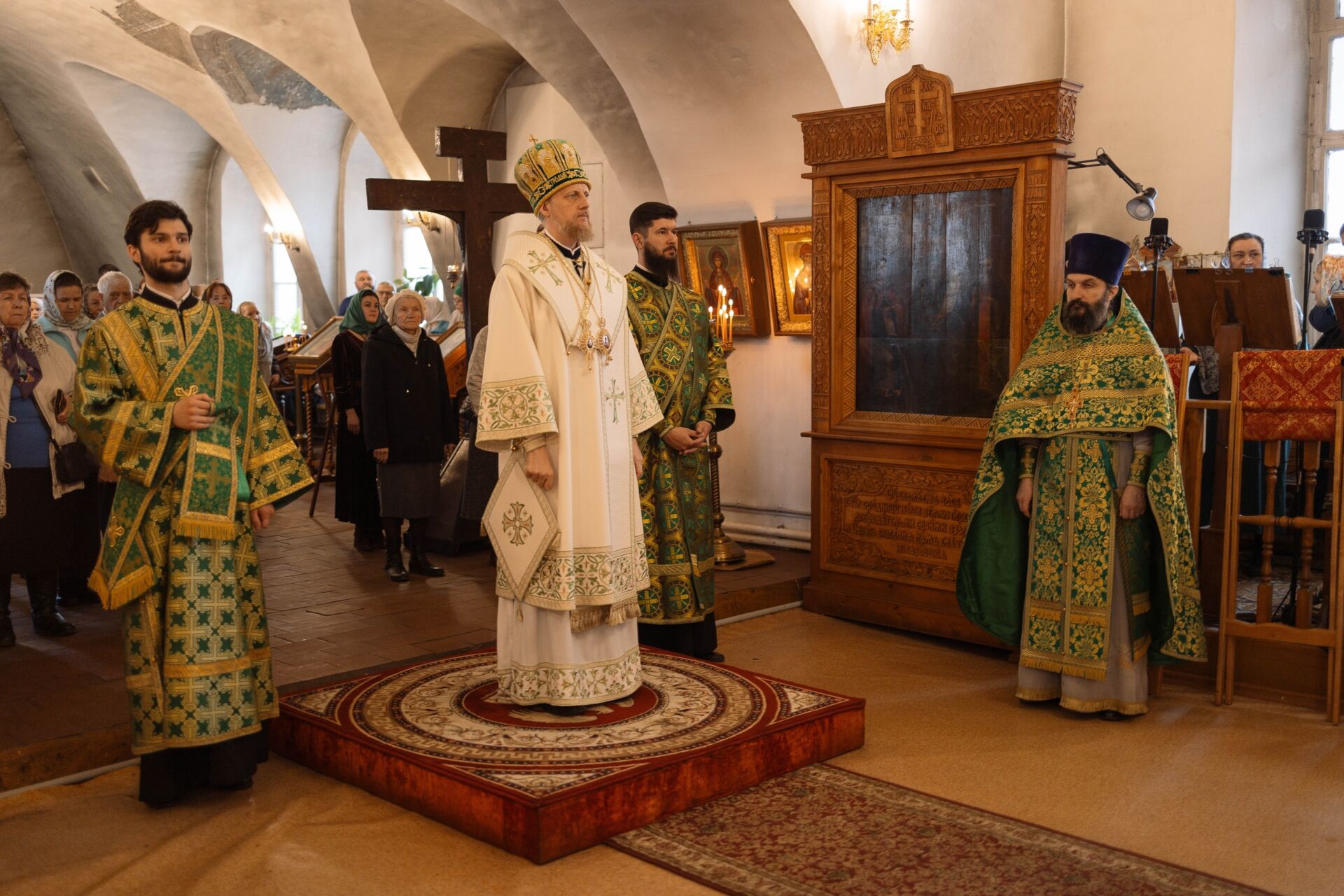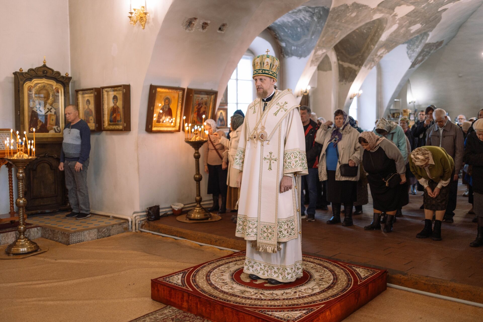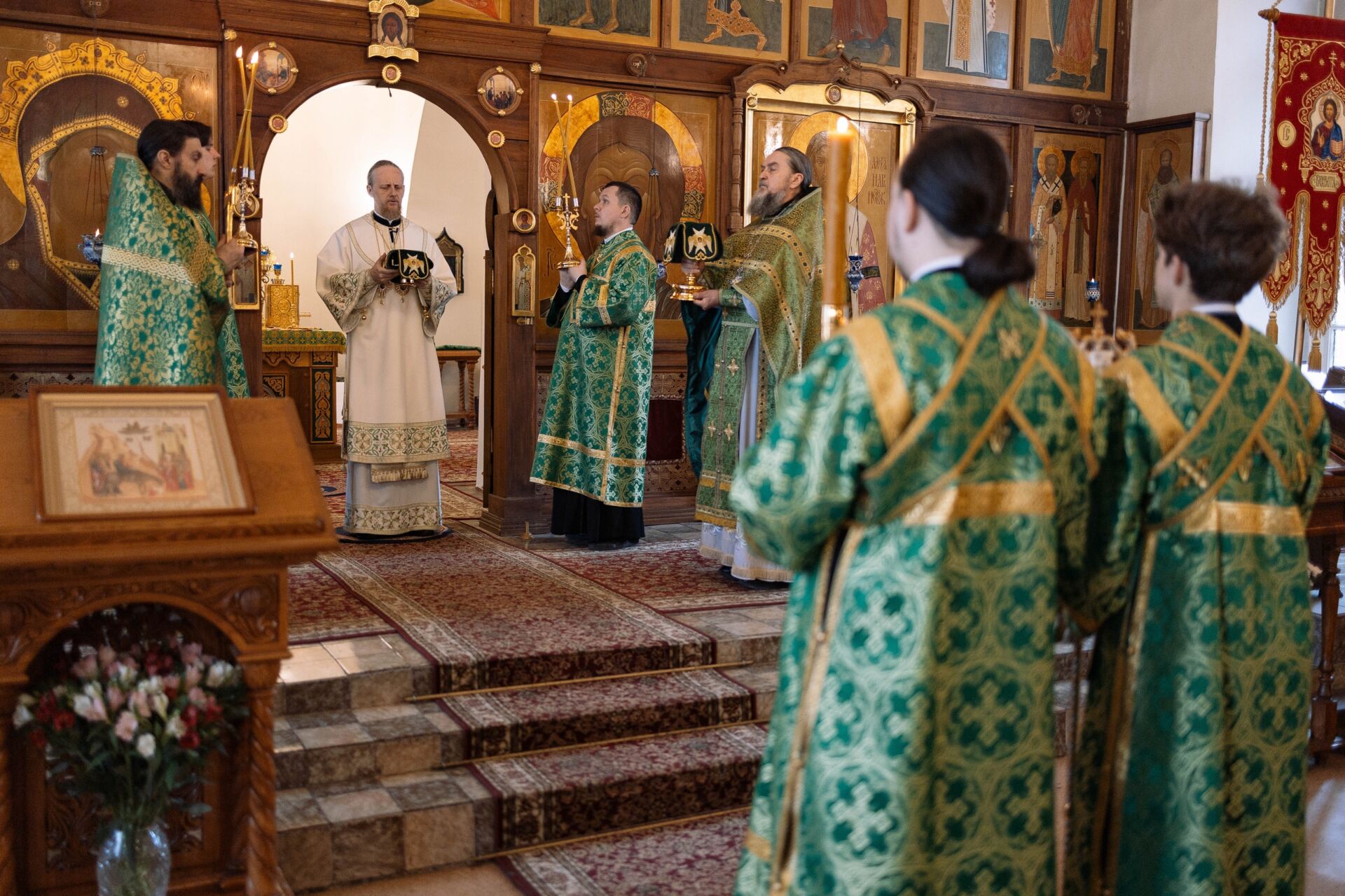 Его Преосвященству сослужили: почётный настоятель собора протоиерей Андрей Кульков, настоятель собора протоиерей Алексей Морозов, диакон Владимир Принёв, диакон Алексей Герасимов, диакон Сергий Танчинец.