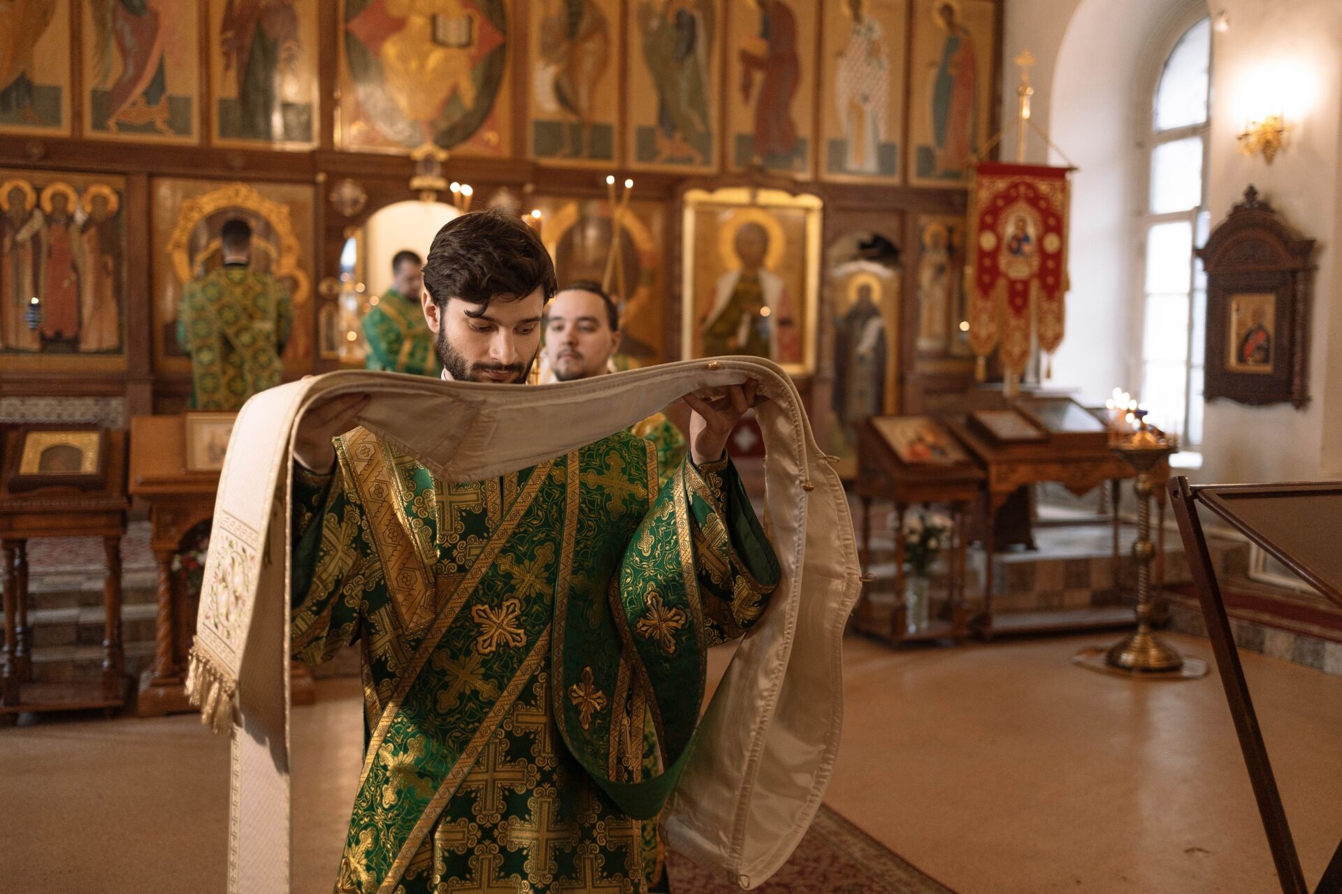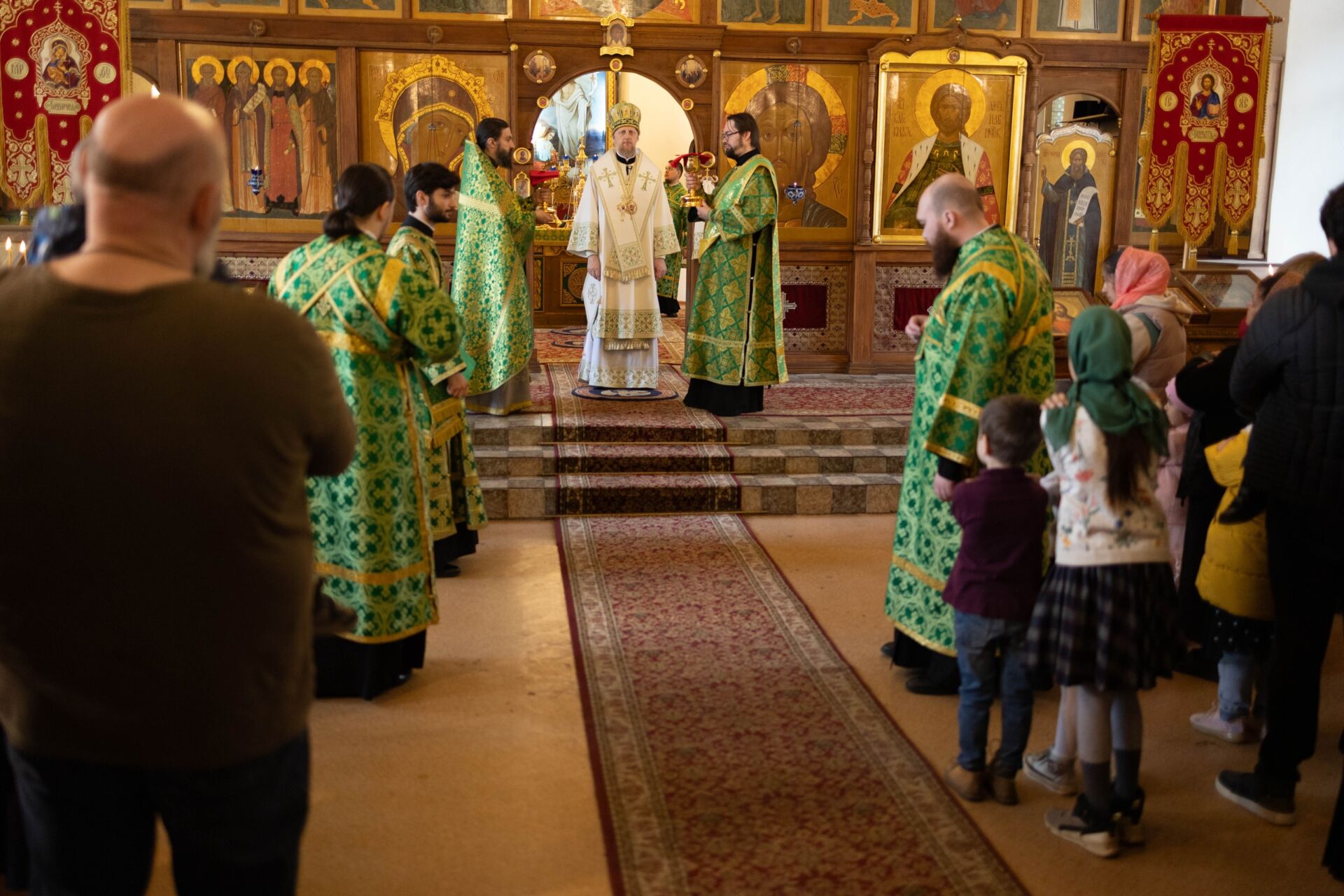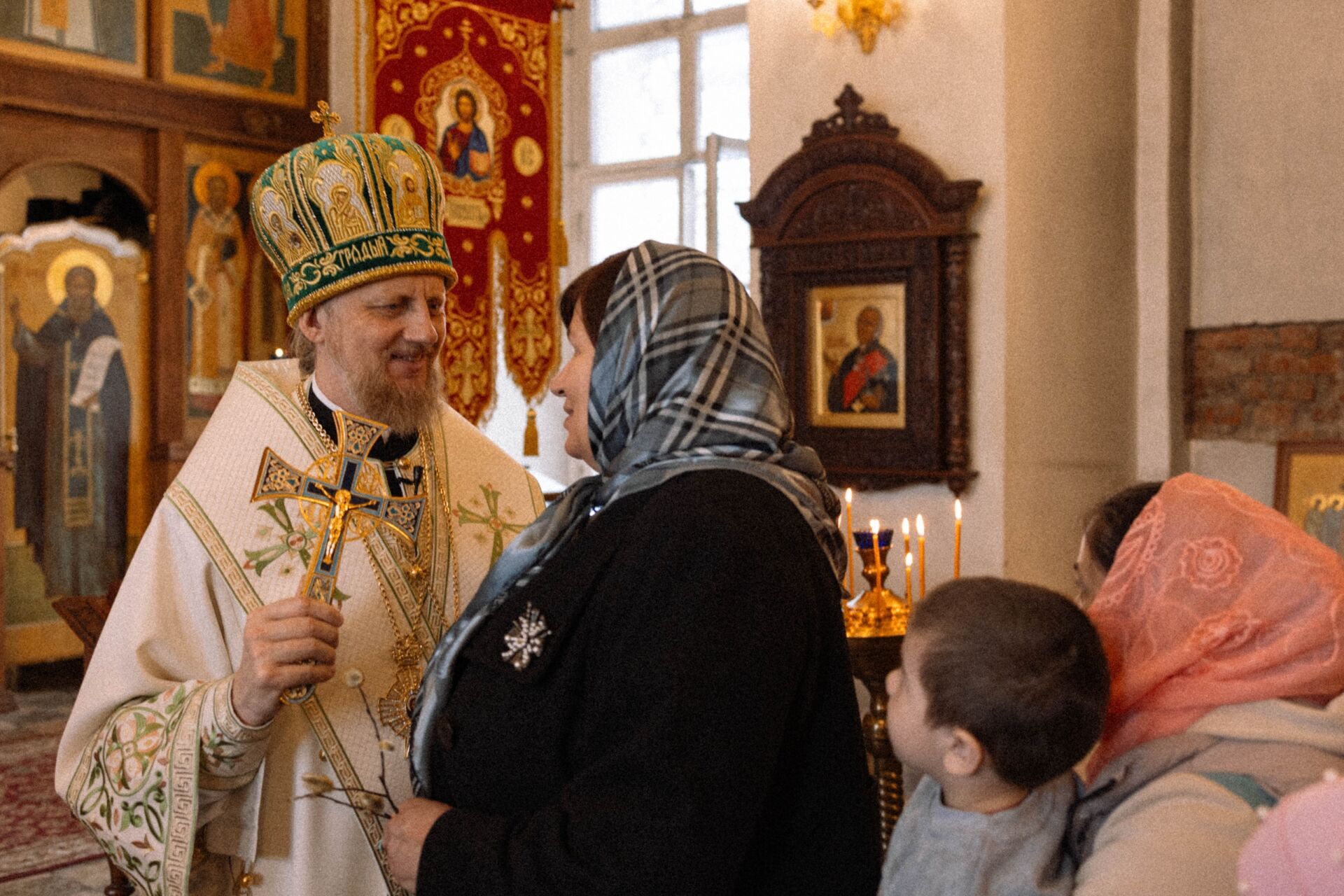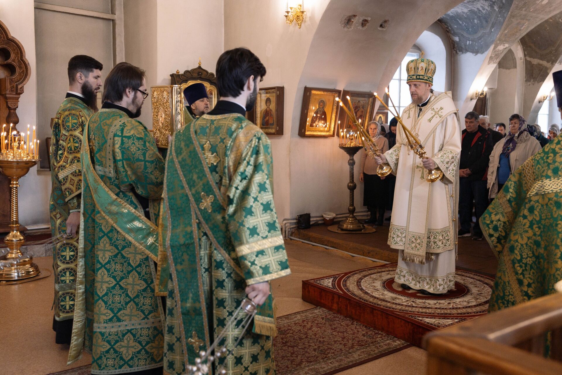 5 апреля 2026 года, в праздник Входа Господня в Иерусалим, епископ Переславский и Угличский Феоктист совершил Литургию во Владимирском кафедральном соборе.