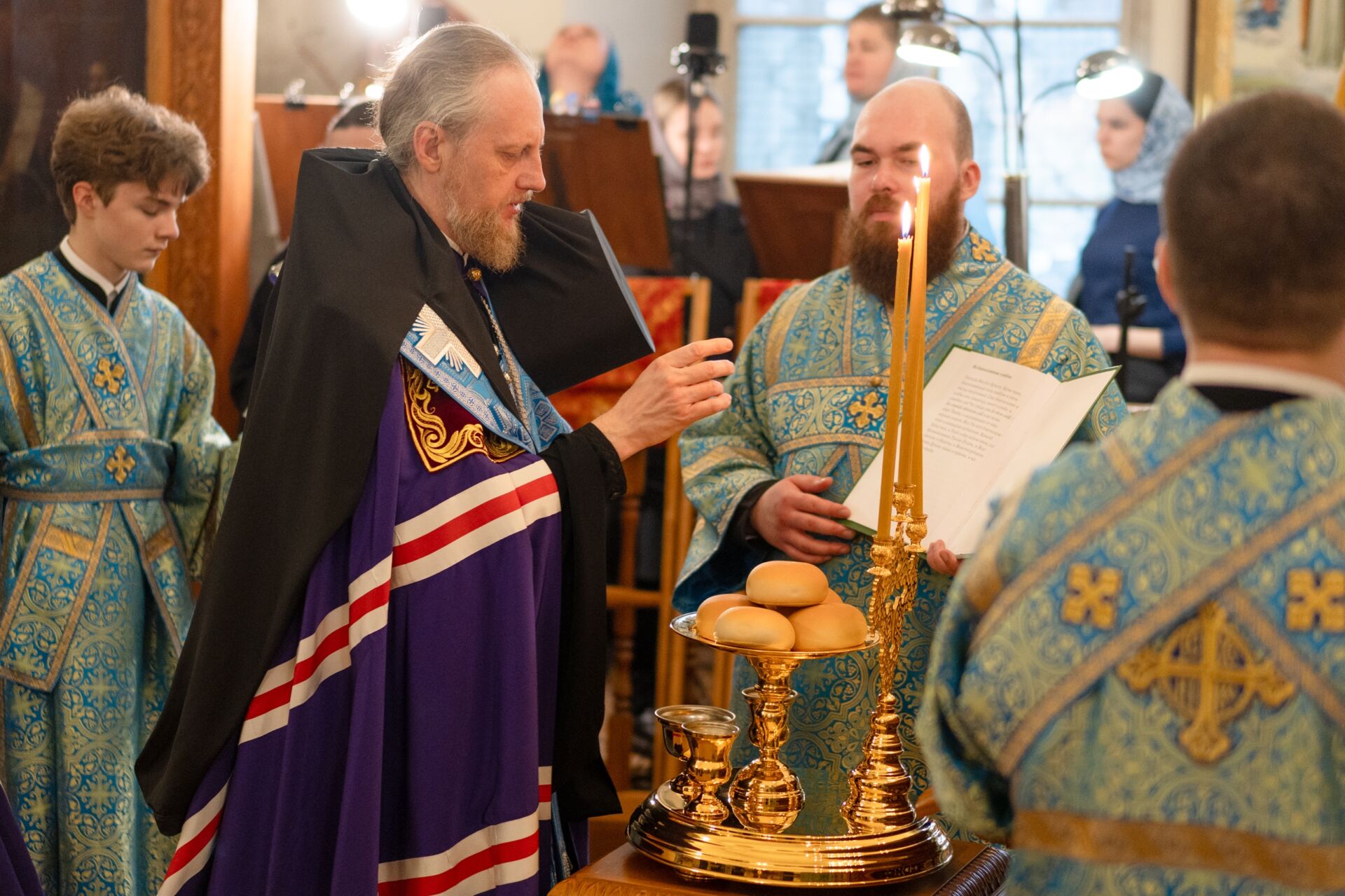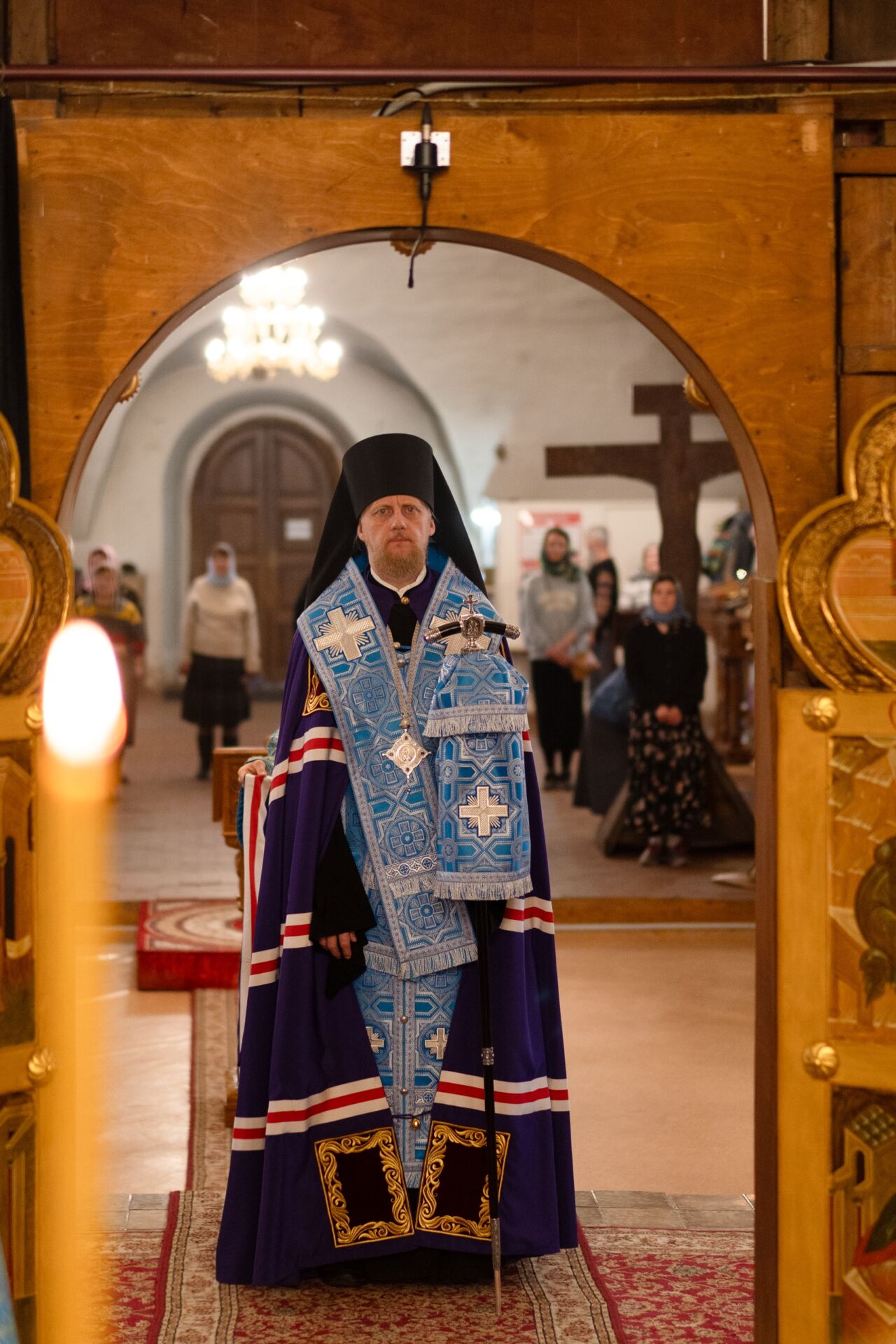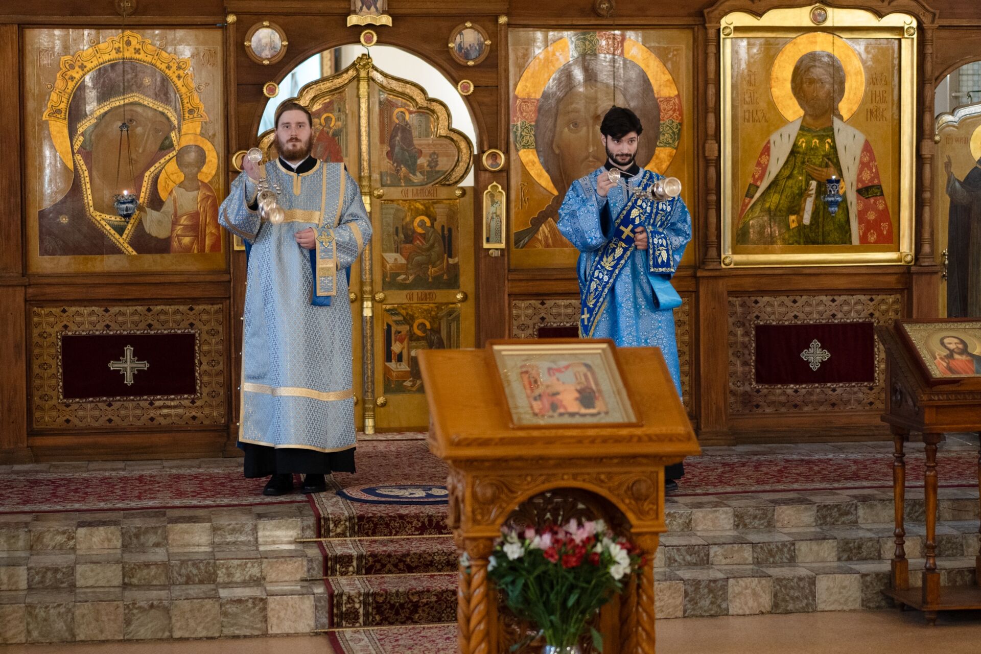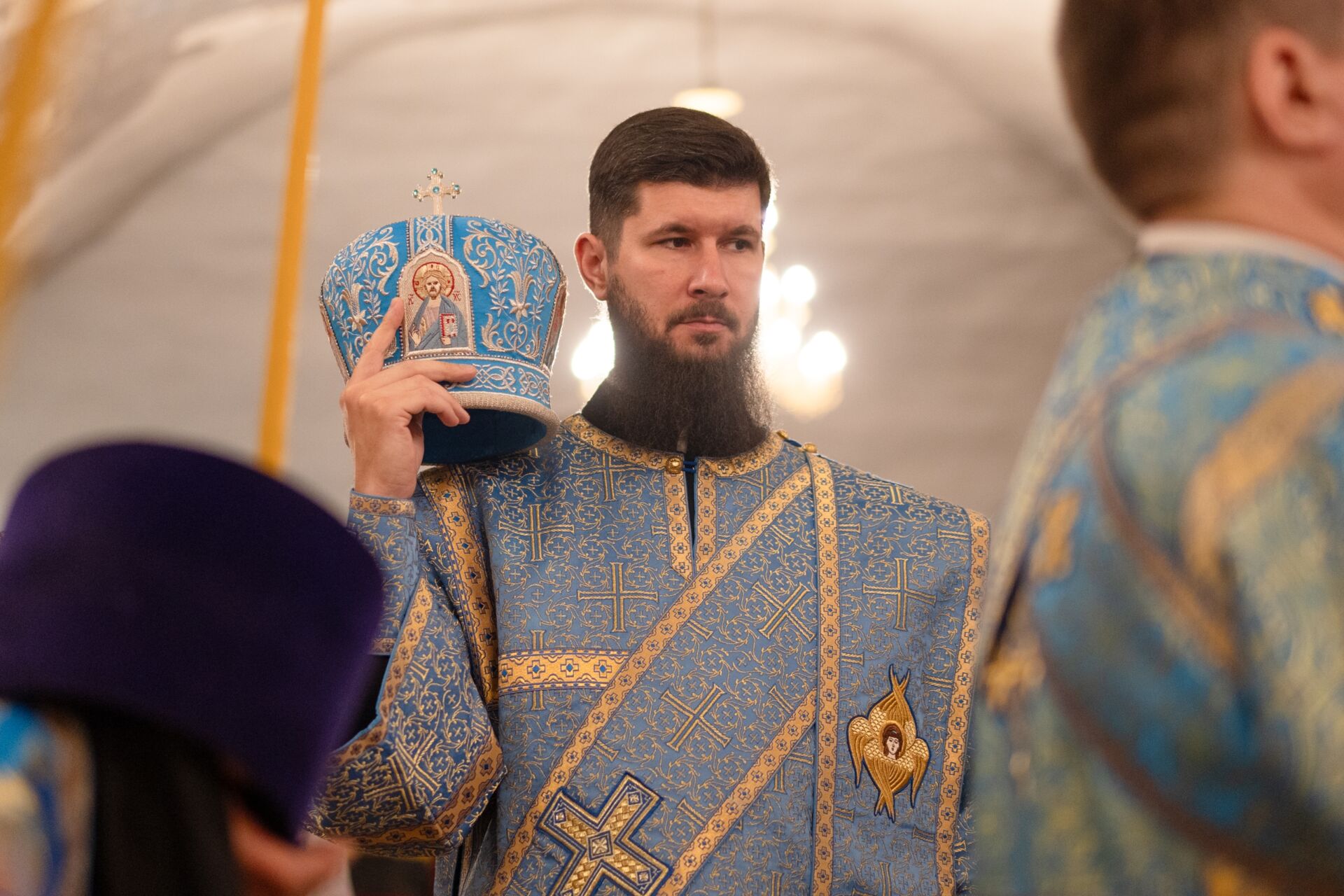 Его Преосвященству сослужили: почётный настоятель собора протоиерей Андрей Кульков, настоятель собора протоиерей Алексей Морозов, священник Алексей Талалаев, диакон Алексей Герасимов, диакон Сергий Танчинец, диакон Даниил Булычев.
