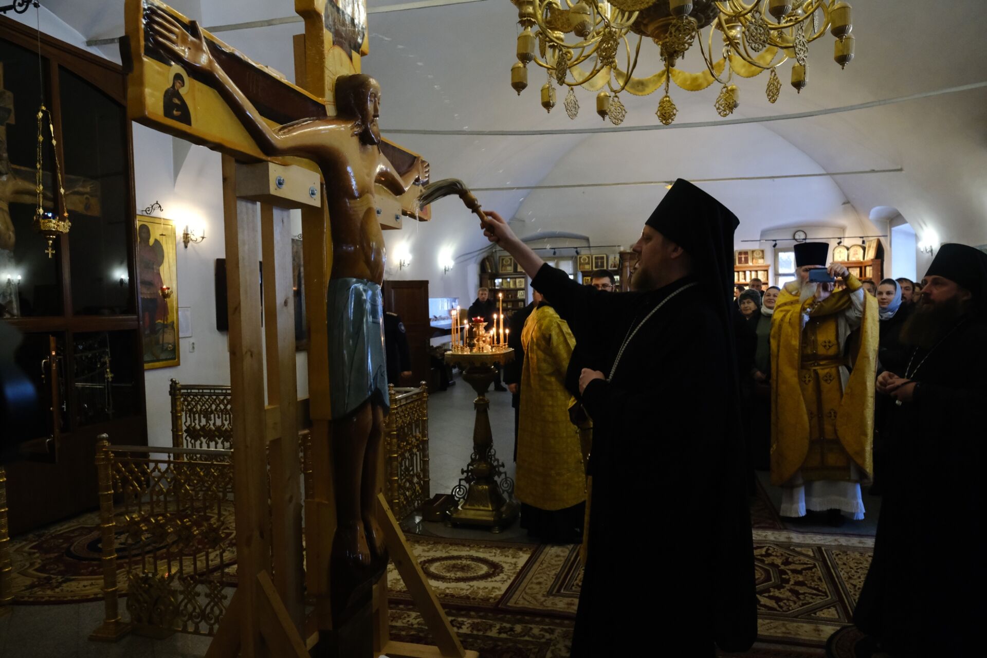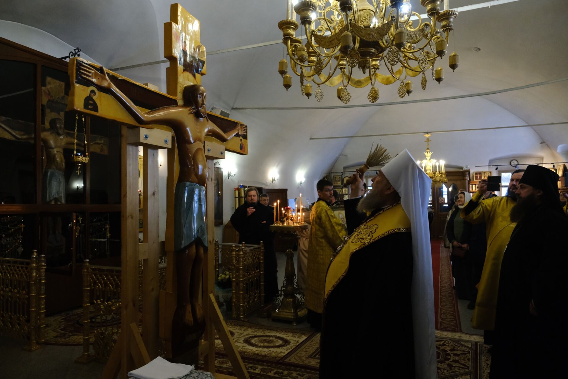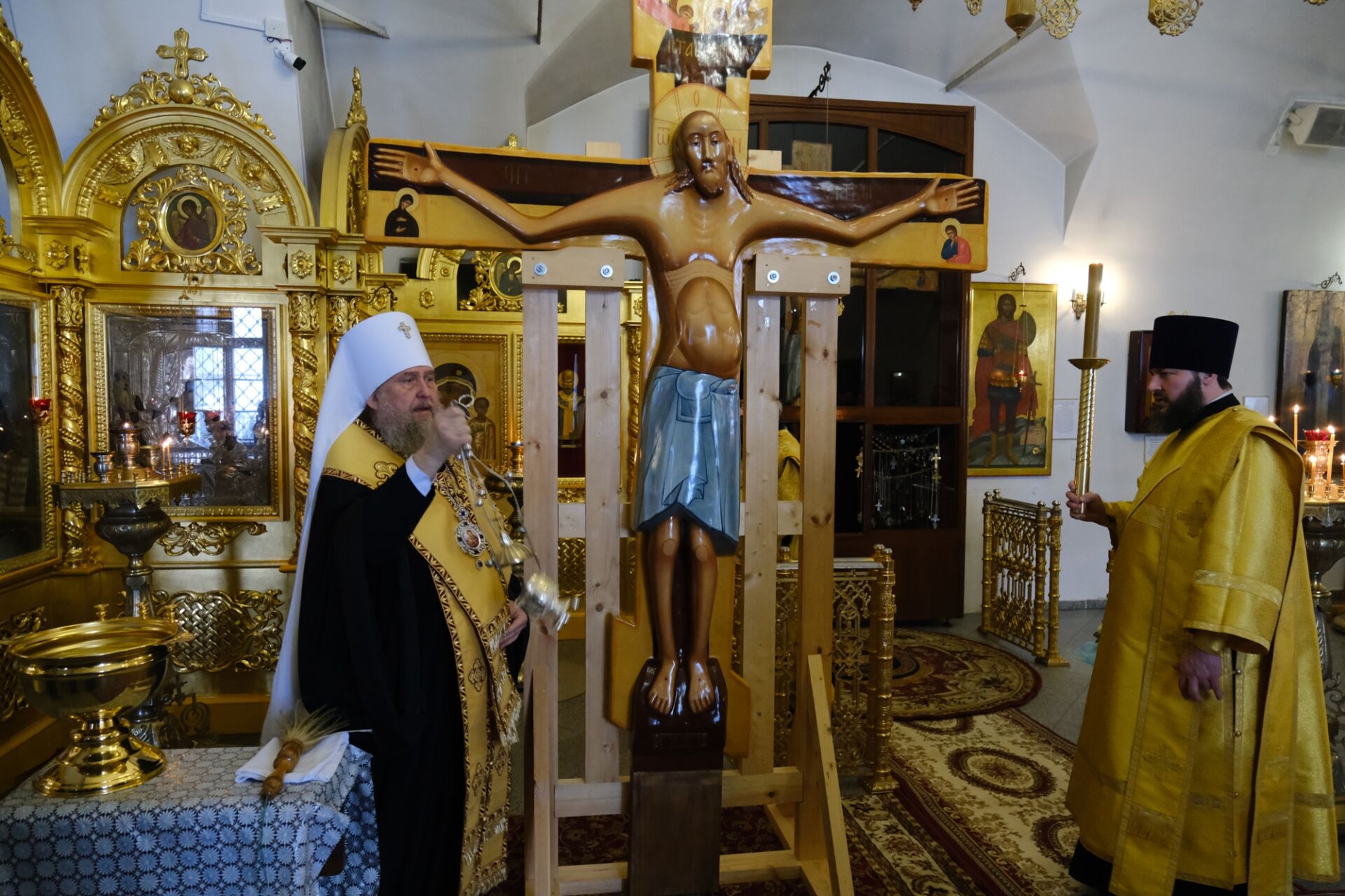 После литургии митрополит Александр освятил копию Годеновского креста, которая будет постоянно пребывать в Алма-Ате в Иверско-Серафимовском женском монастыре.