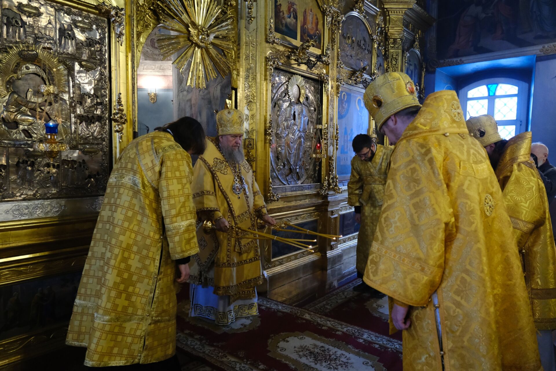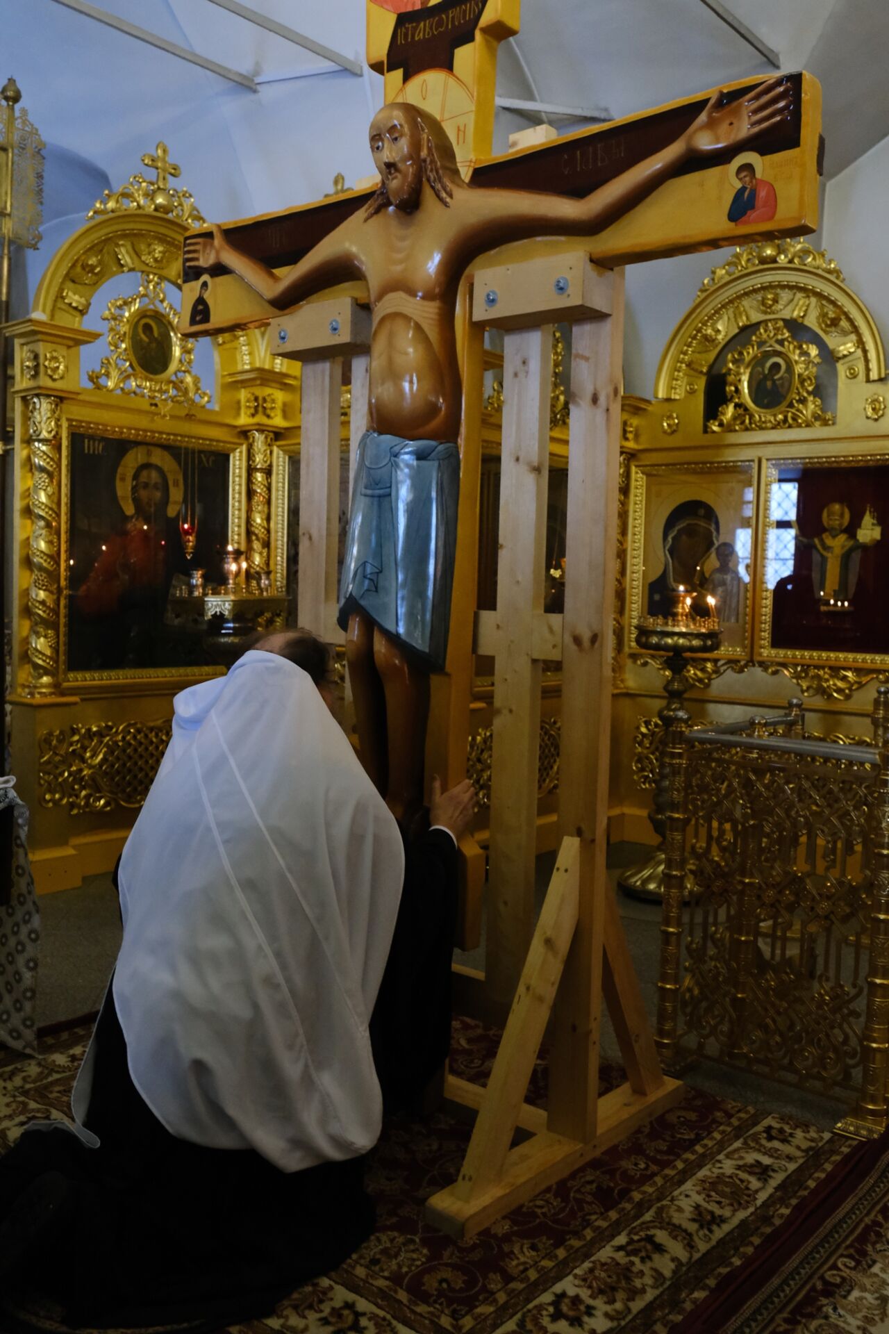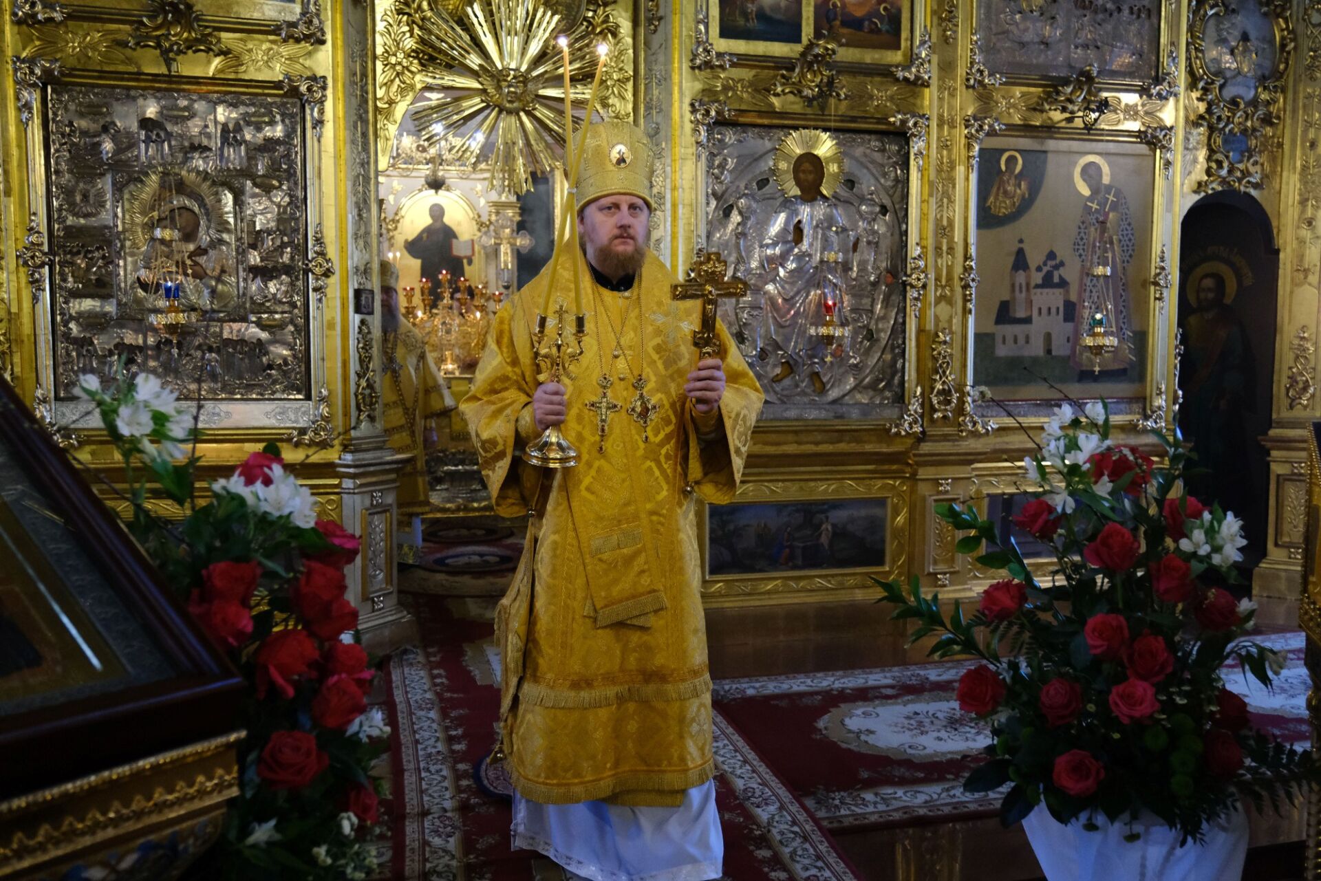 После литургии митрополит Александр освятил копию Годеновского креста, которая будет постоянно пребывать в Алма-Ате в Иверско-Серафимовском женском монастыре.