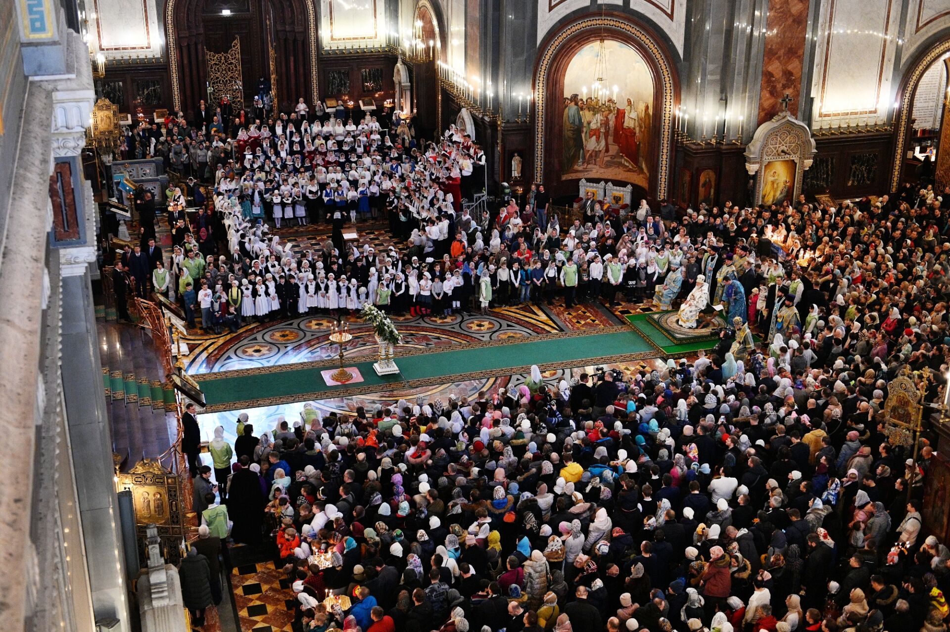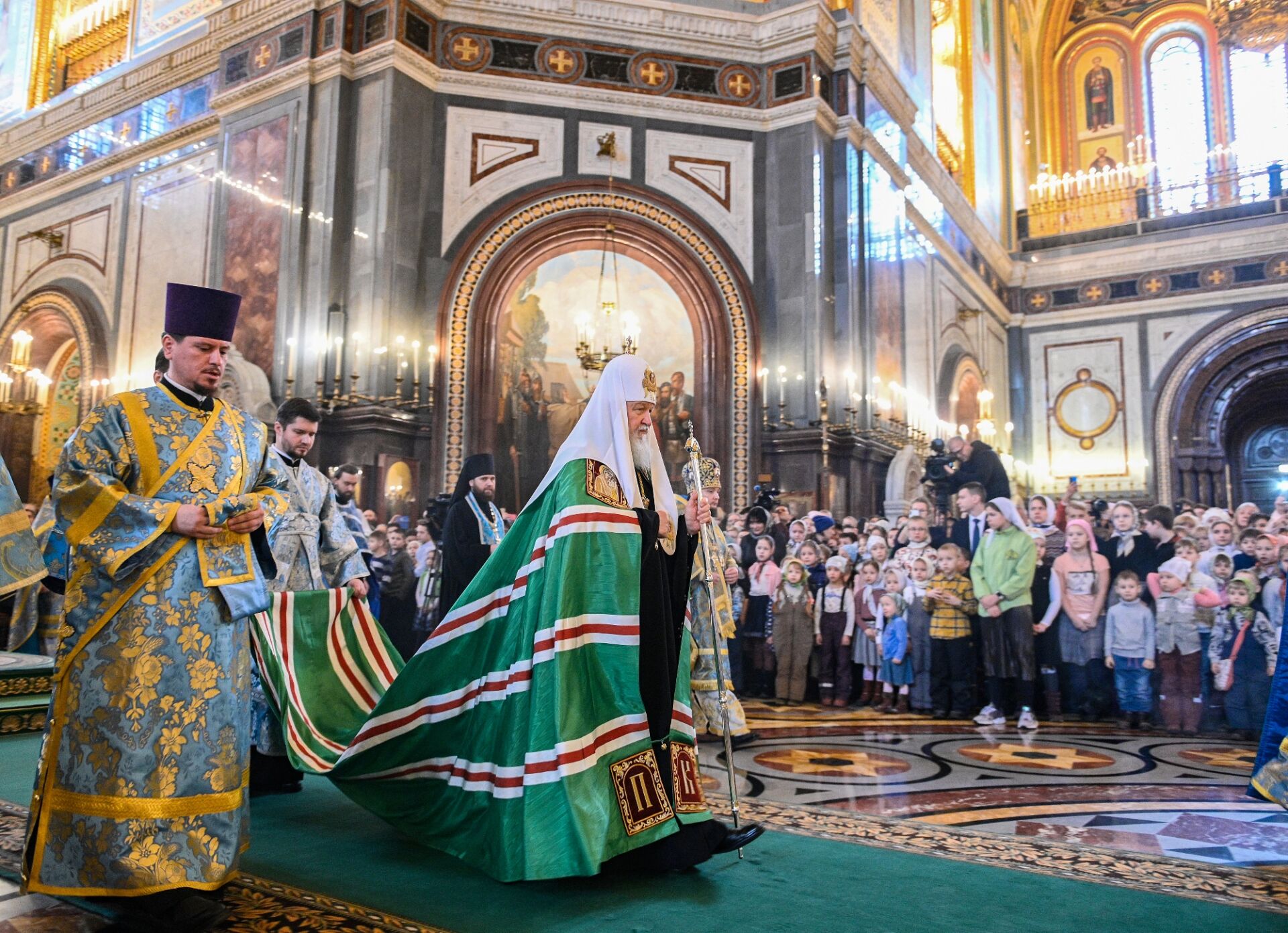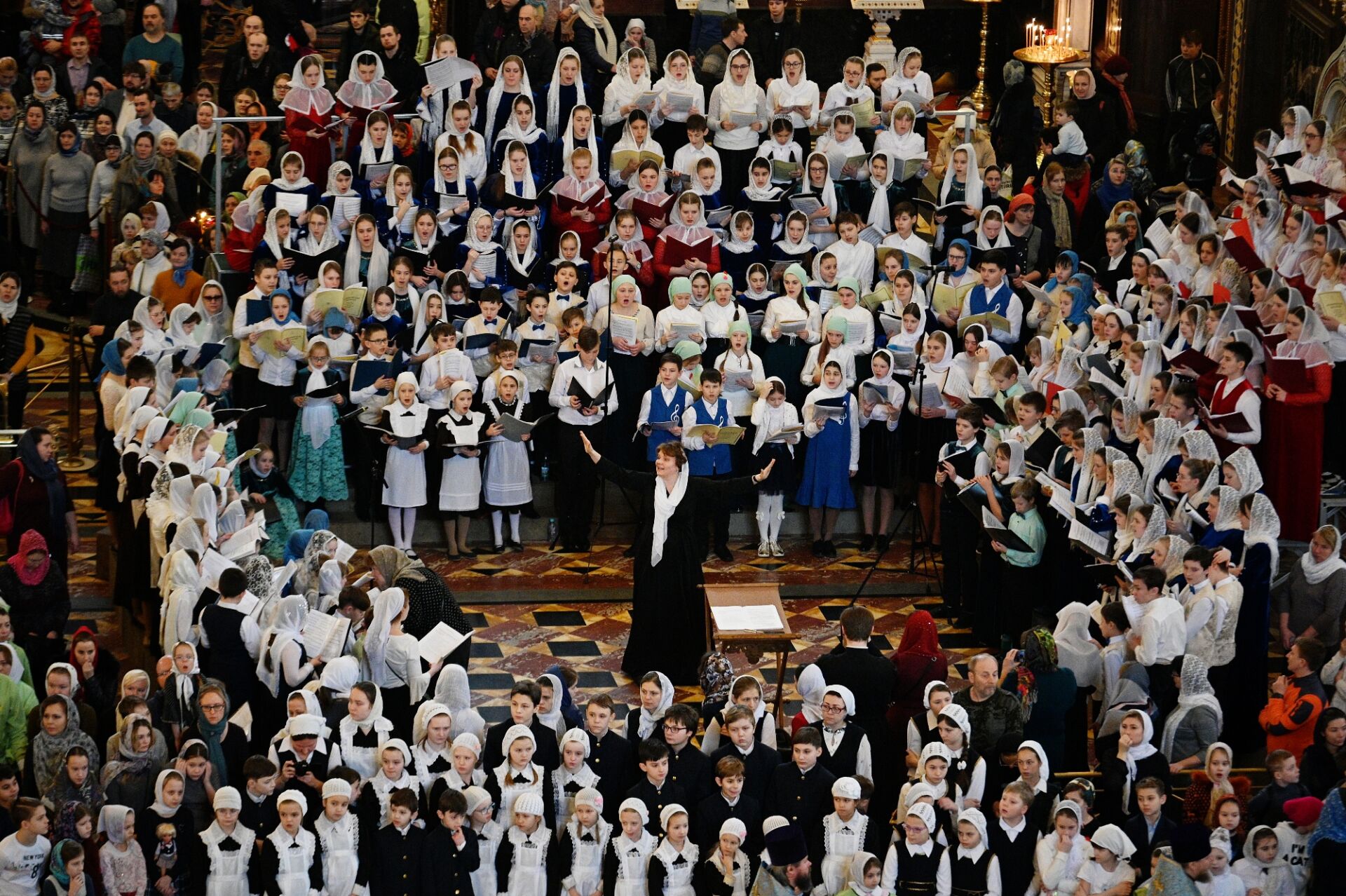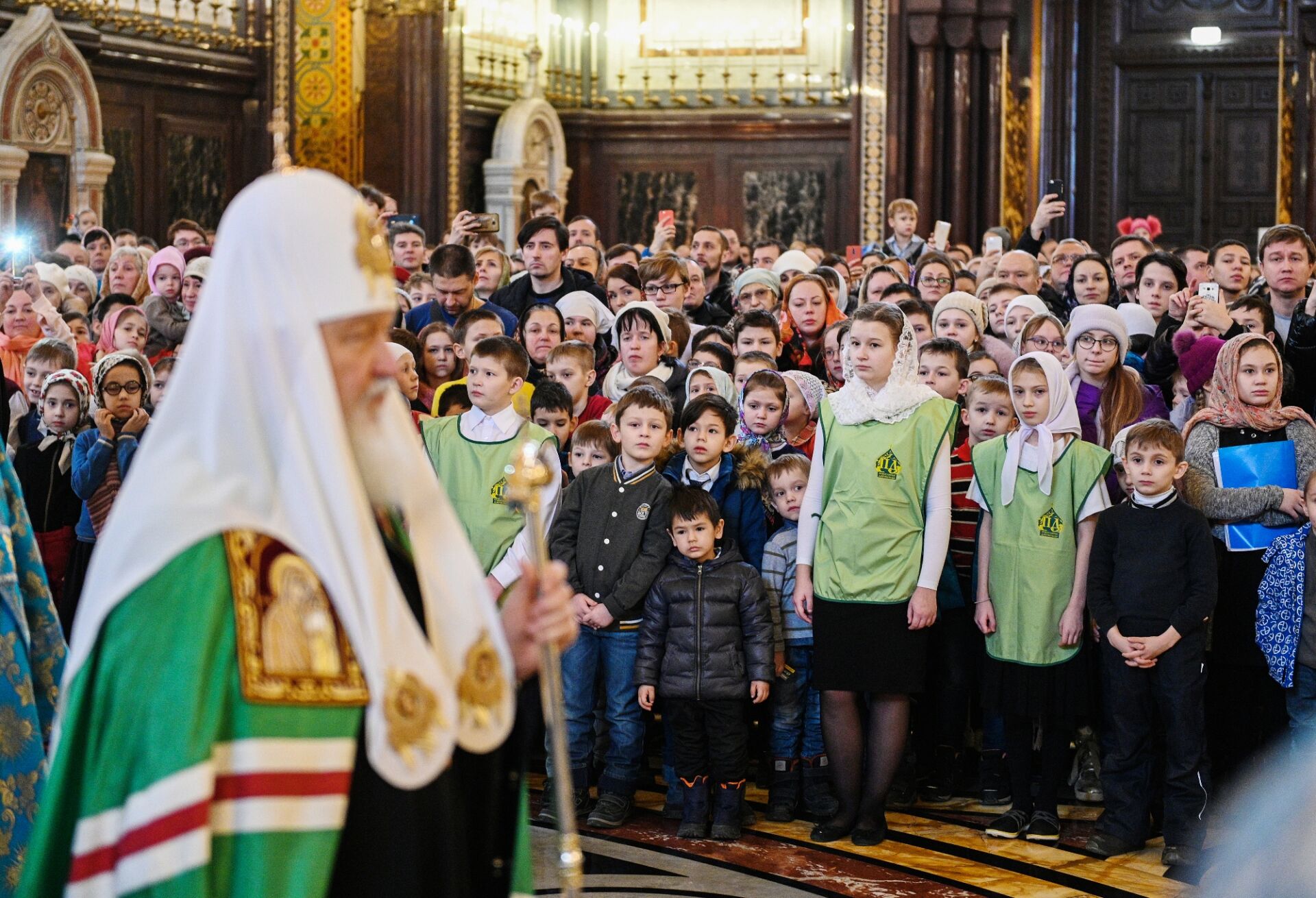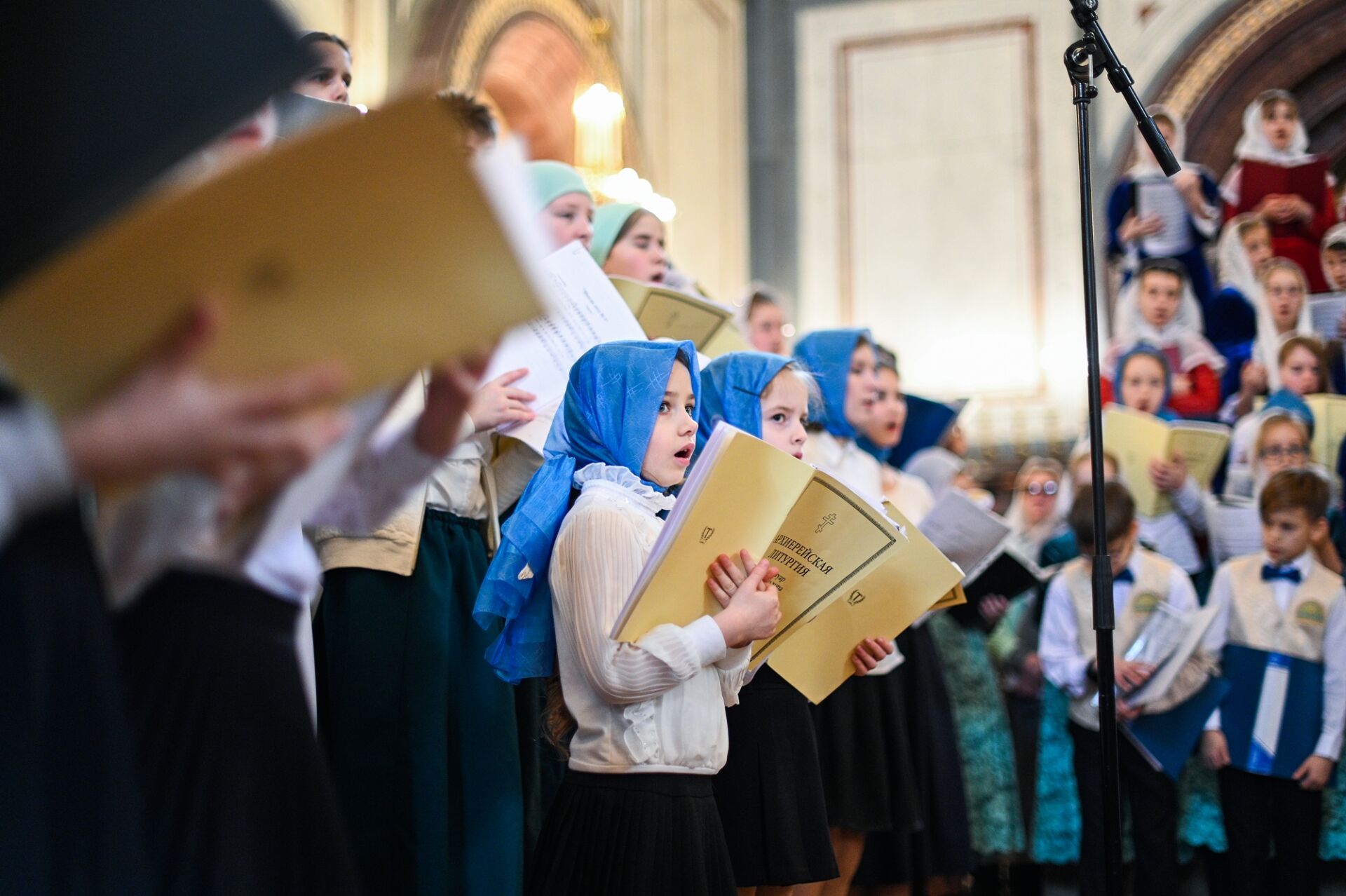 За Литургией молились учащиеся православных гимназий и воскресных школ российской столицы, дети из многодетных семей священнослужителей и мирян и их родители. Все песнопения исполнил сводный детский хор под управлением Варвары Волковой.