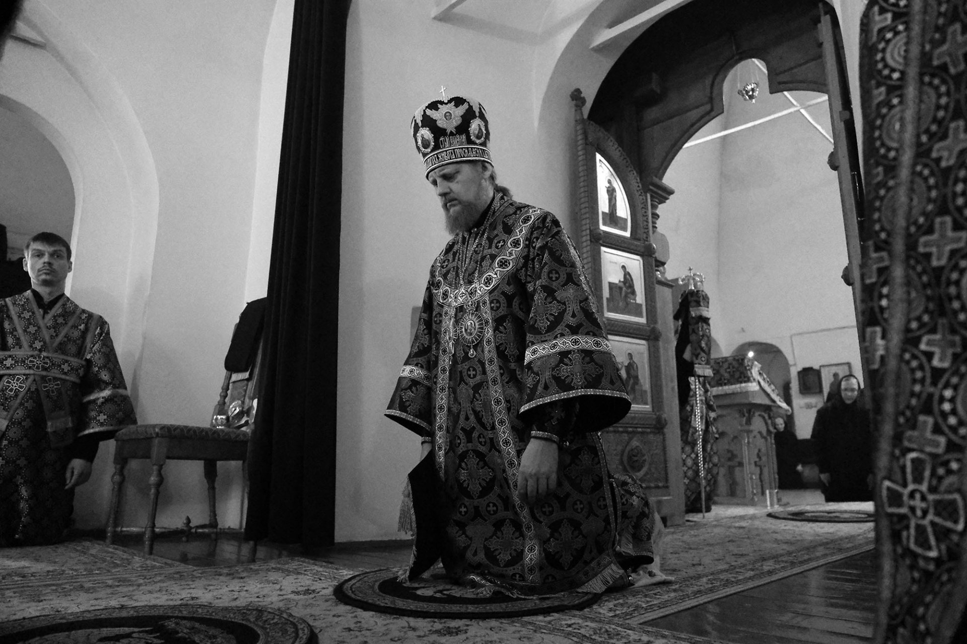 На малом входе к празднику Святой Пасхи штатный клирик монастыря священник Игорь Киселёв был удостоен права ношения наперсного креста золотого цвета.