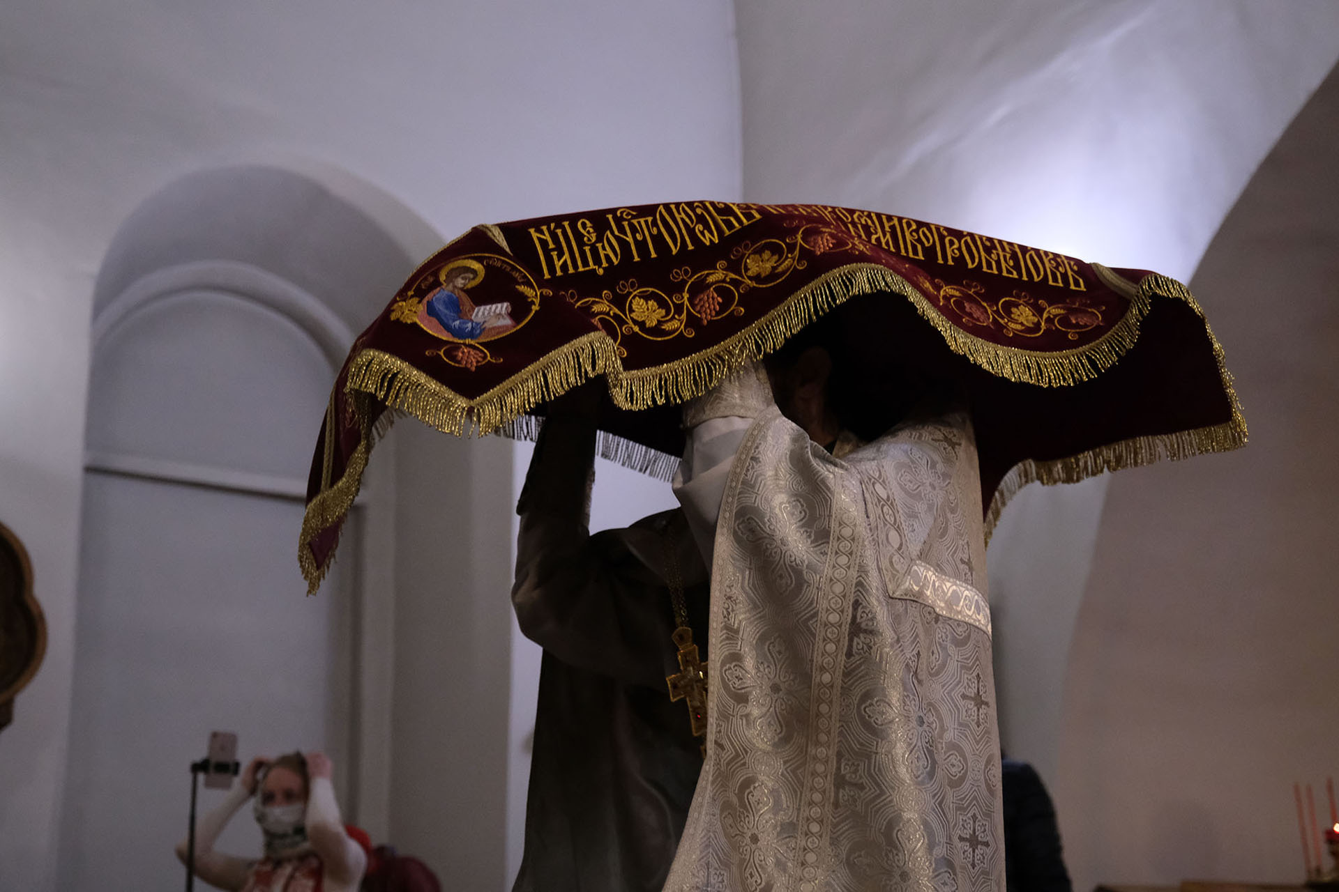 В ночь с 18 на 19 апреля 2020 года, в праздник Светлого Христова Воскресения, епископ Переславский и Угличский Феоктист совершил пасхальную заутреню и Литургию во Владимирском кафедральном соборе.